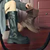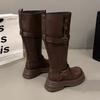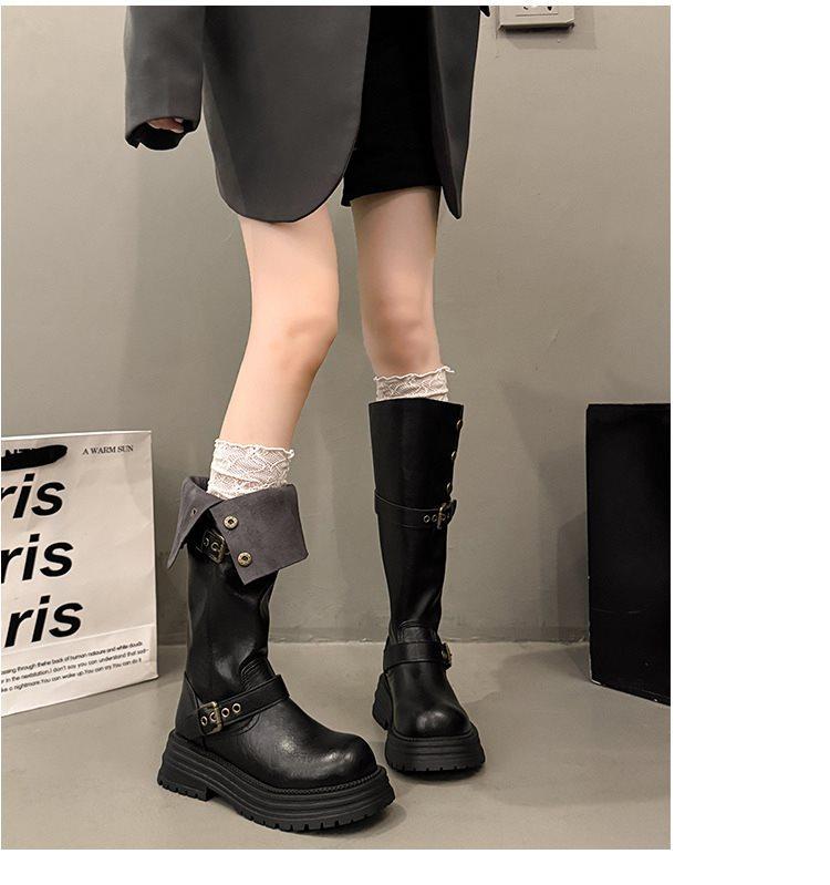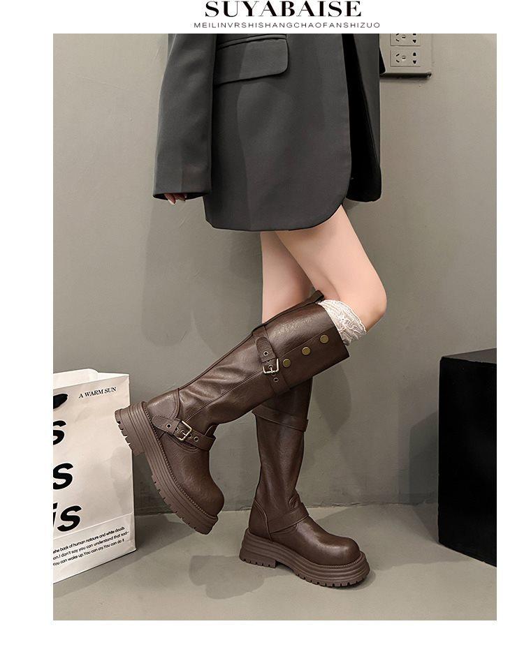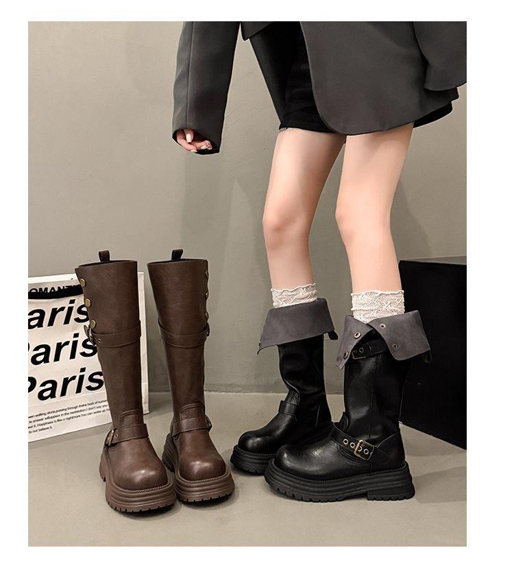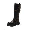 Botas largas de tacón grueso y suela gruesa de estilo británico retro negro para mujer otoño e invierno 2025 nuevo estilo botas largas de caña alta ajustadas tipo caballero