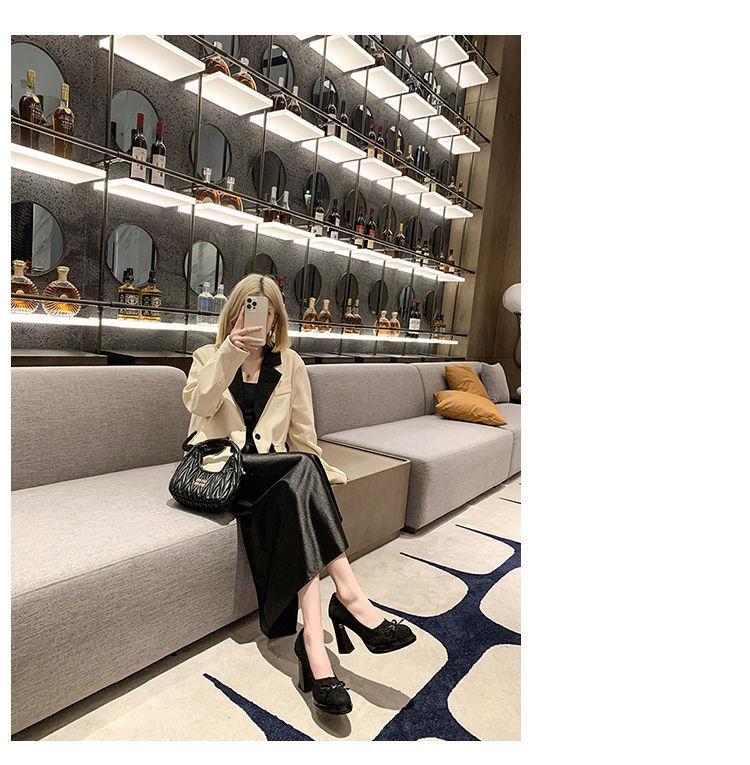 Zapatos Mary Jane de abrigo de una sola correa modernos influencer punta redonda versátiles vestido tacón grueso zapatos individuales 2025 combinar