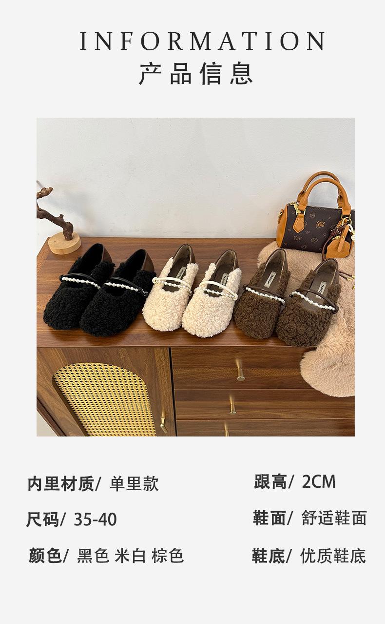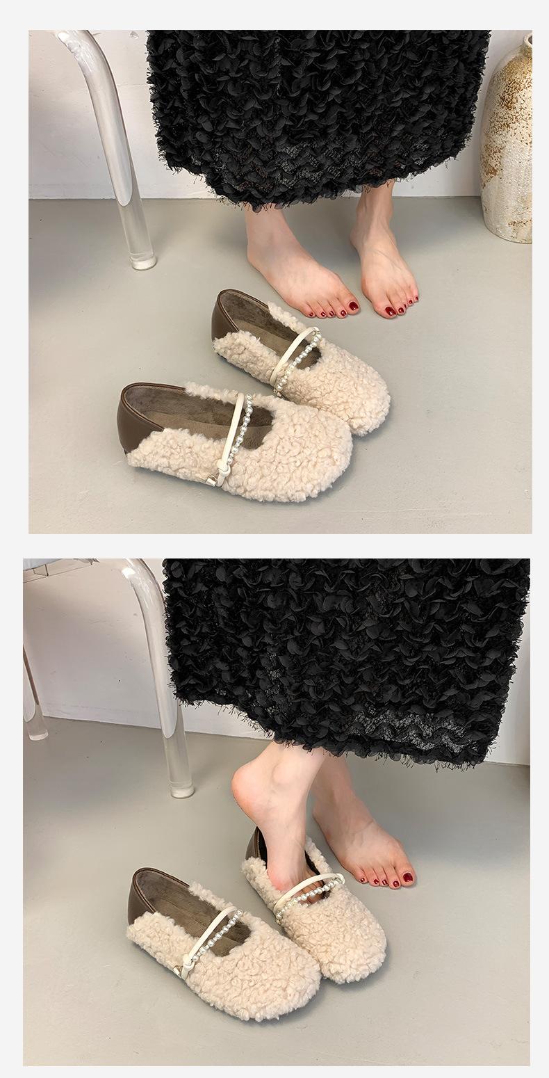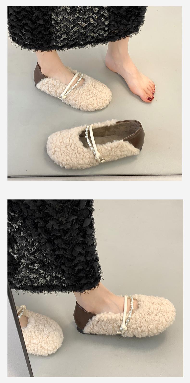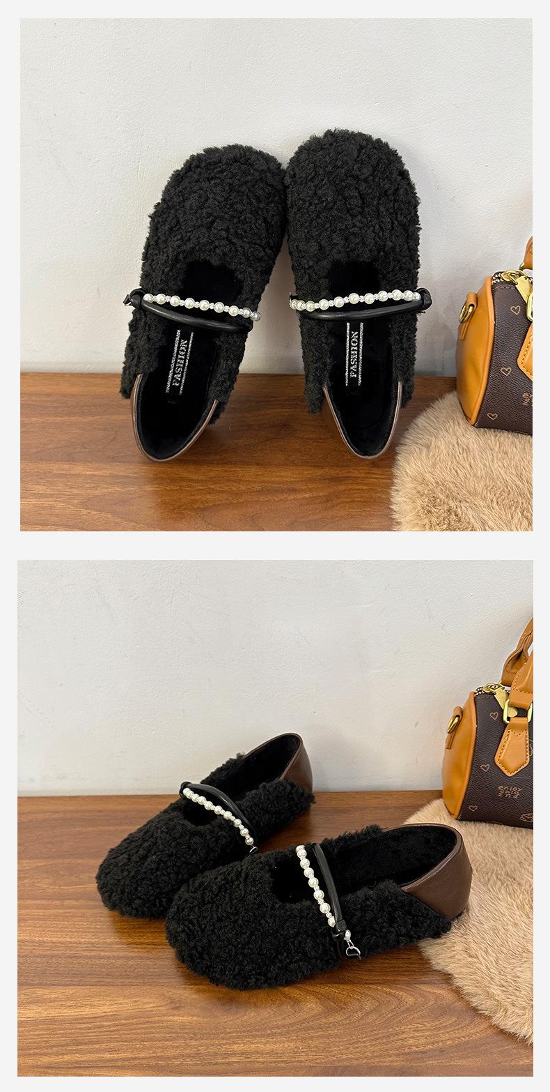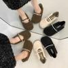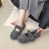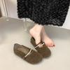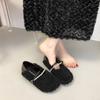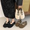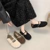 Zapatos planos peludos estilo hada francés para mujer para usar en exteriores 2025 otoño e invierno nuevos retro más terciopelo cálidos Mary Jane zapatos de algodón