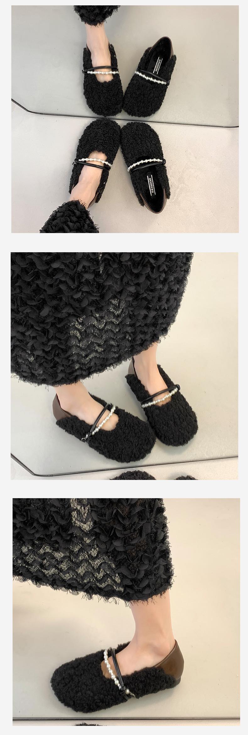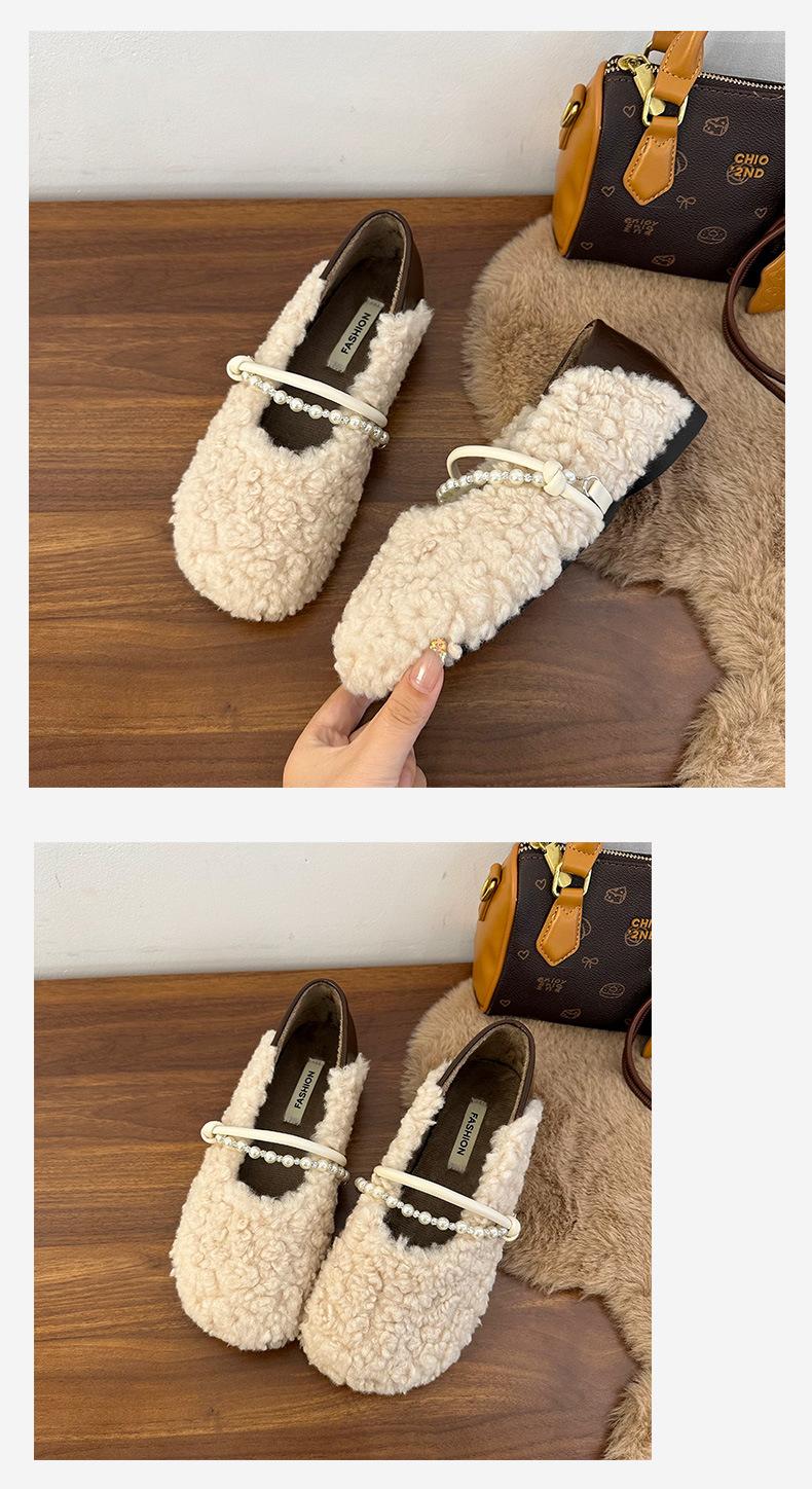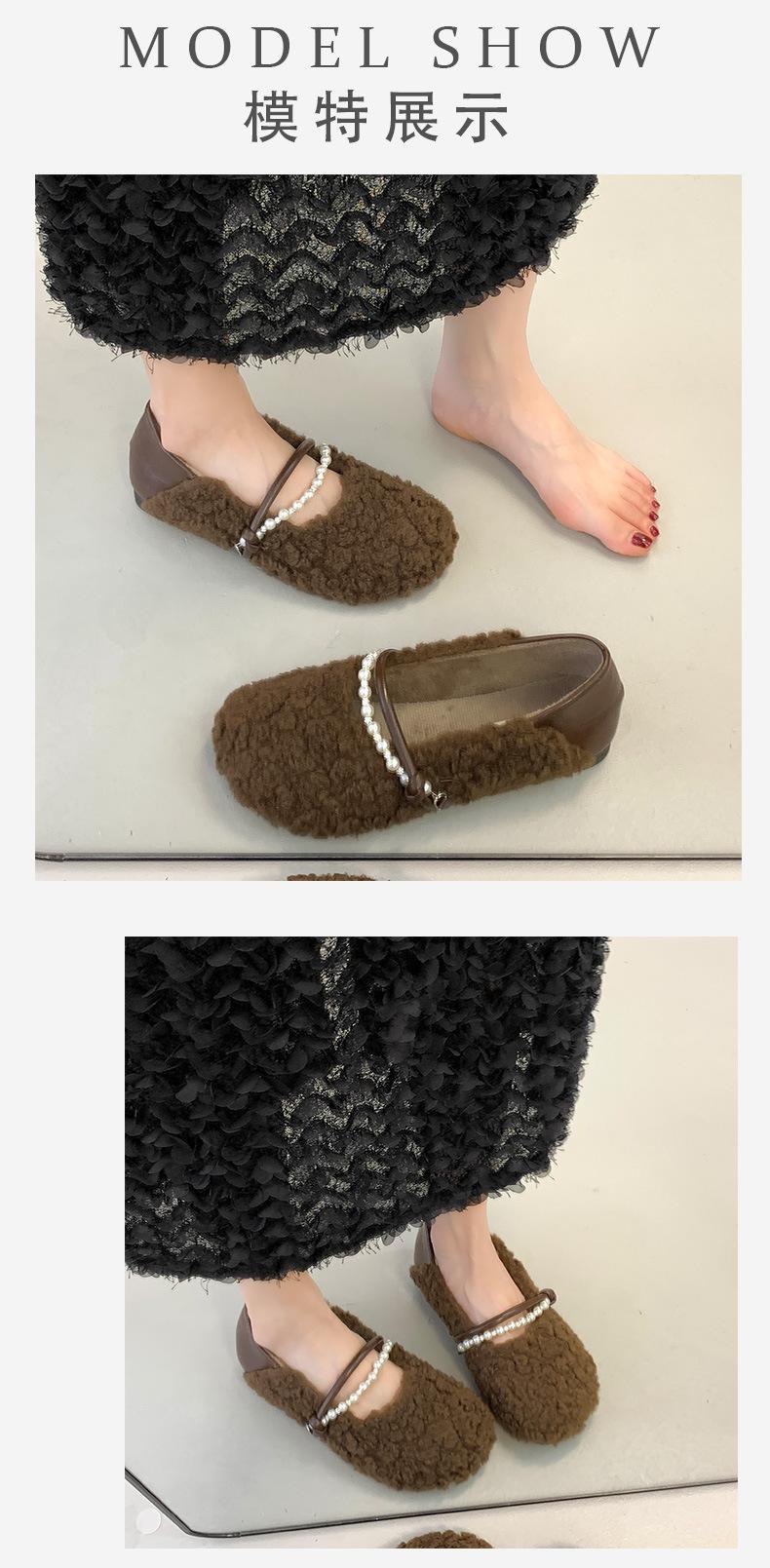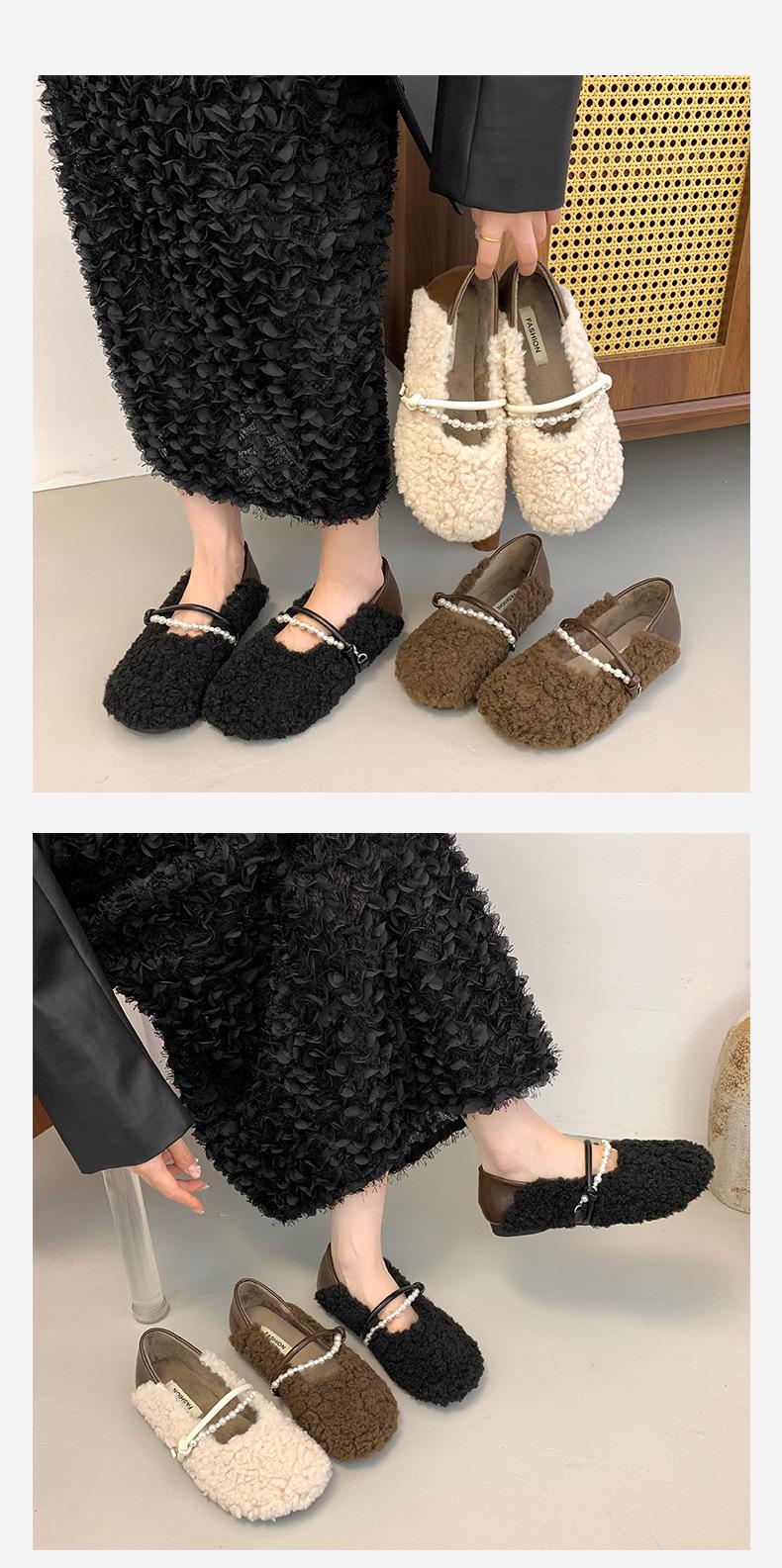 Zapatos planos peludos estilo hada francés para mujer para usar en exteriores 2025 otoño e invierno nuevos retro más terciopelo cálidos Mary Jane zapatos de algodón