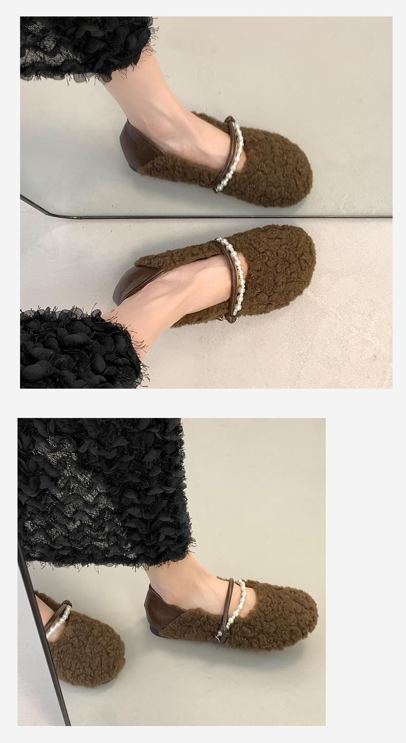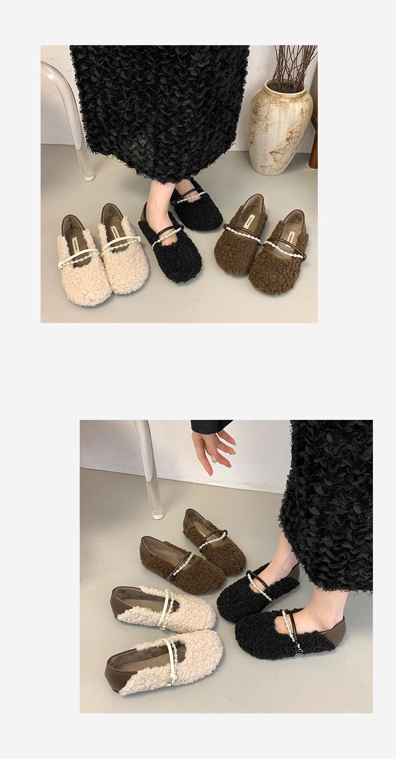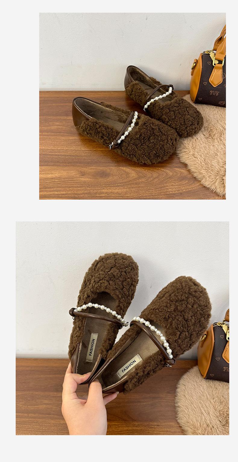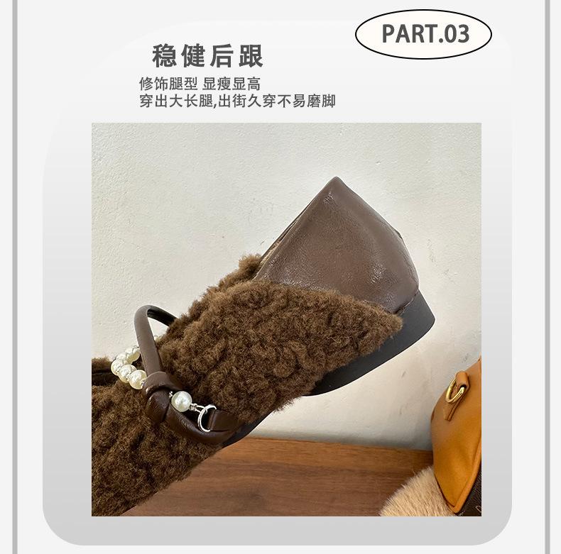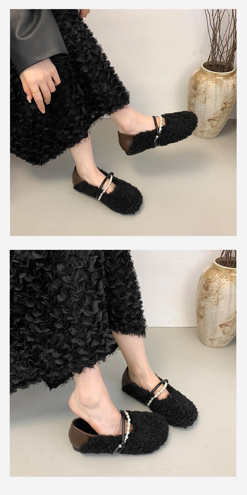 Zapatos planos peludos estilo hada francés para mujer para usar en exteriores 2025 otoño e invierno nuevos retro más terciopelo cálidos Mary Jane zapatos de algodón
