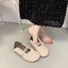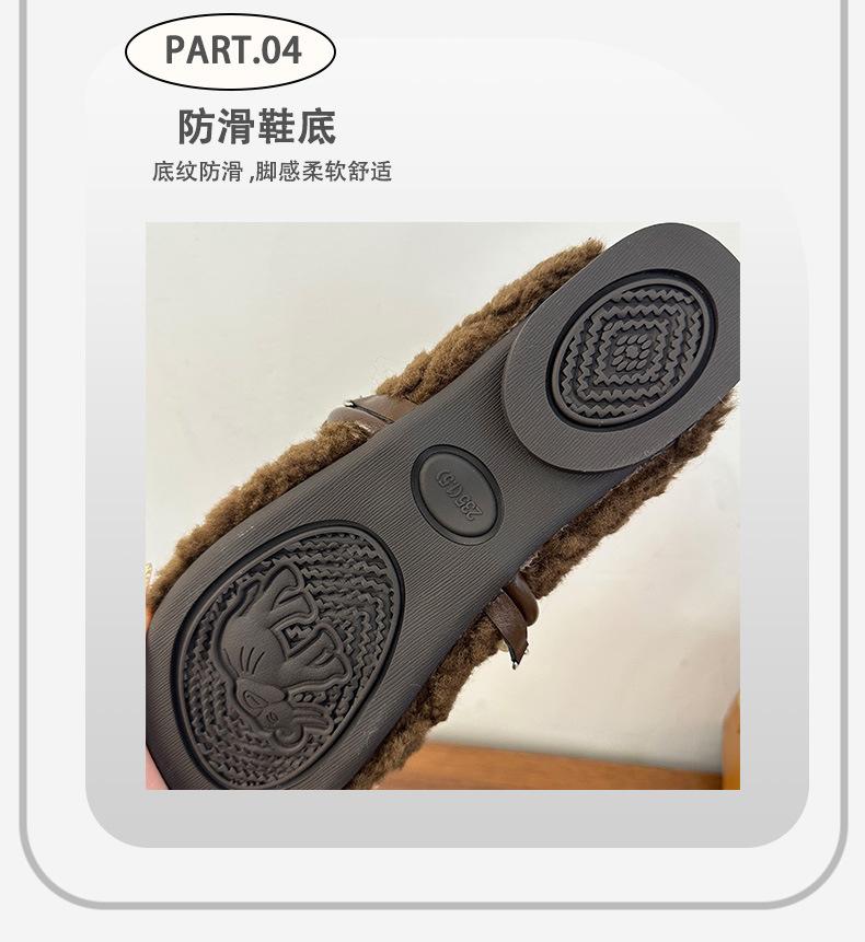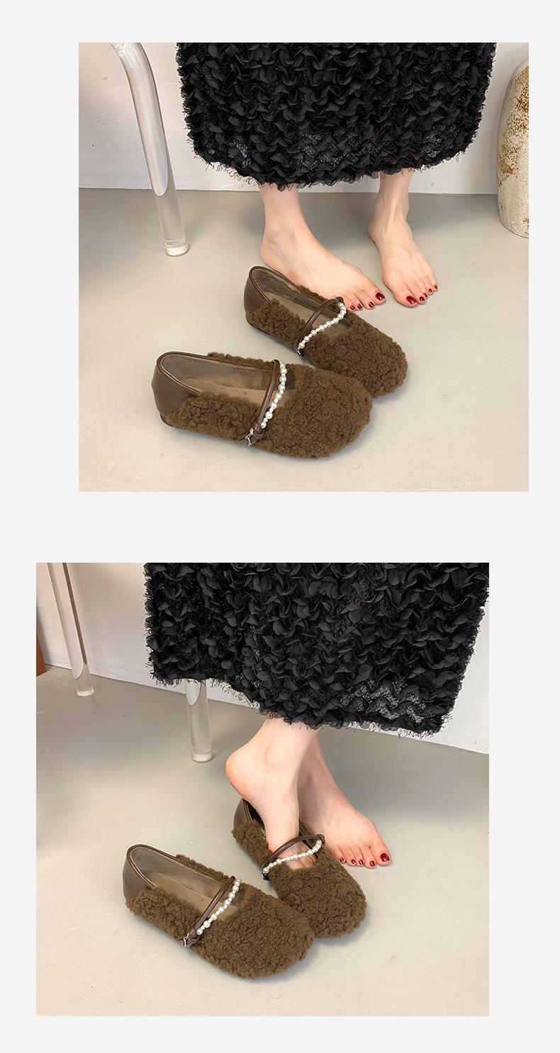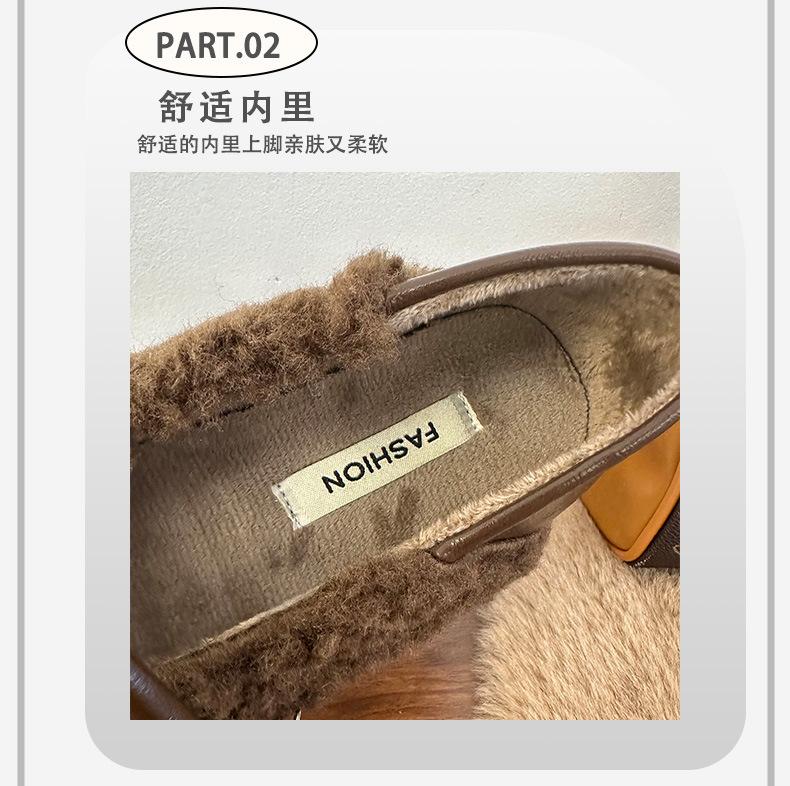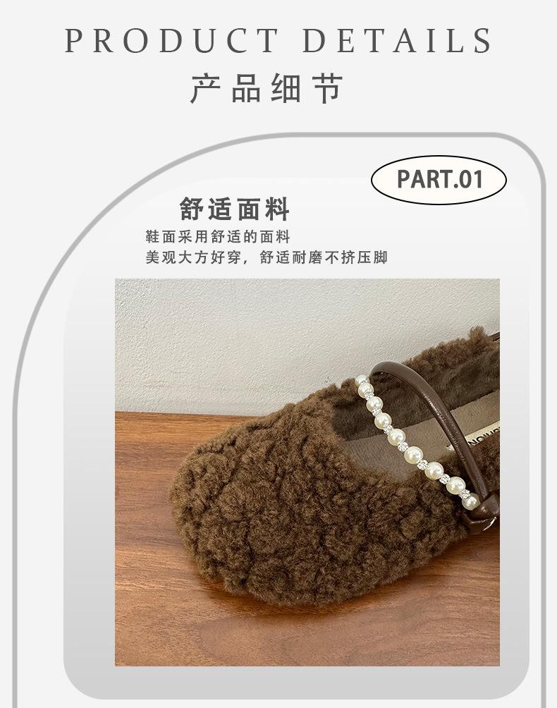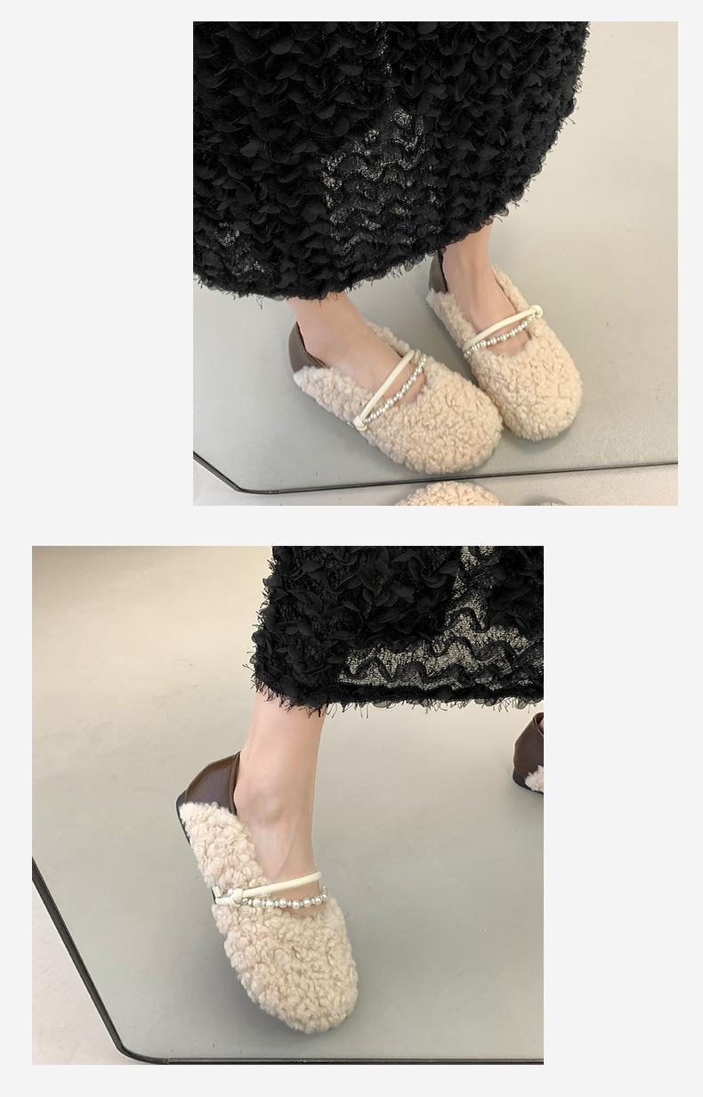 Zapatos planos peludos estilo hada francés para mujer para usar en exteriores 2025 otoño e invierno nuevos retro más terciopelo cálidos Mary Jane zapatos de algodón