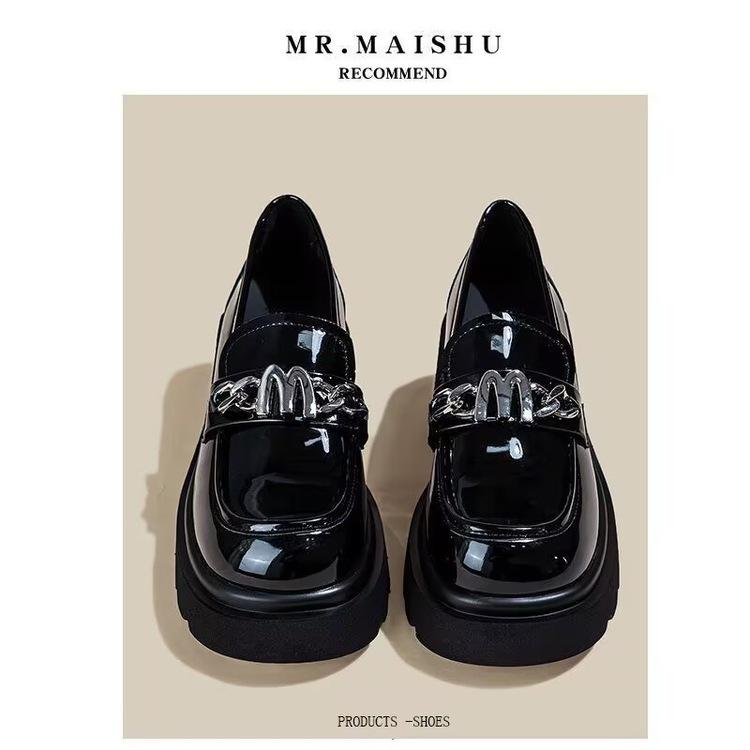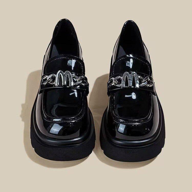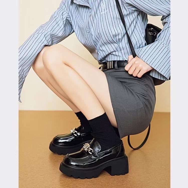Mocasines de suela gruesa para aumentar la altura para mujer 2025 otoño nuevo estilo caliente zapatos de mujer estilo británico zapatos de piel pequeños zapatos individuales versátiles