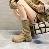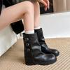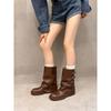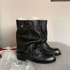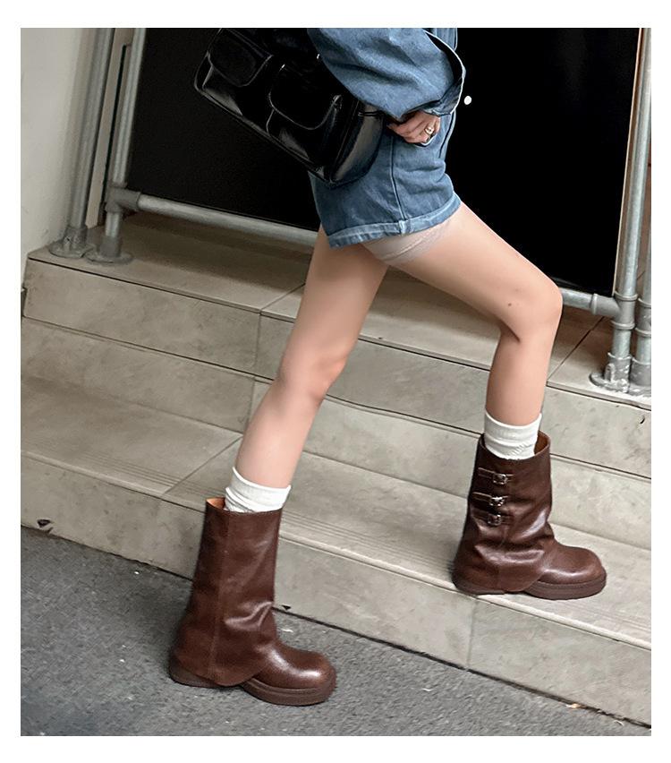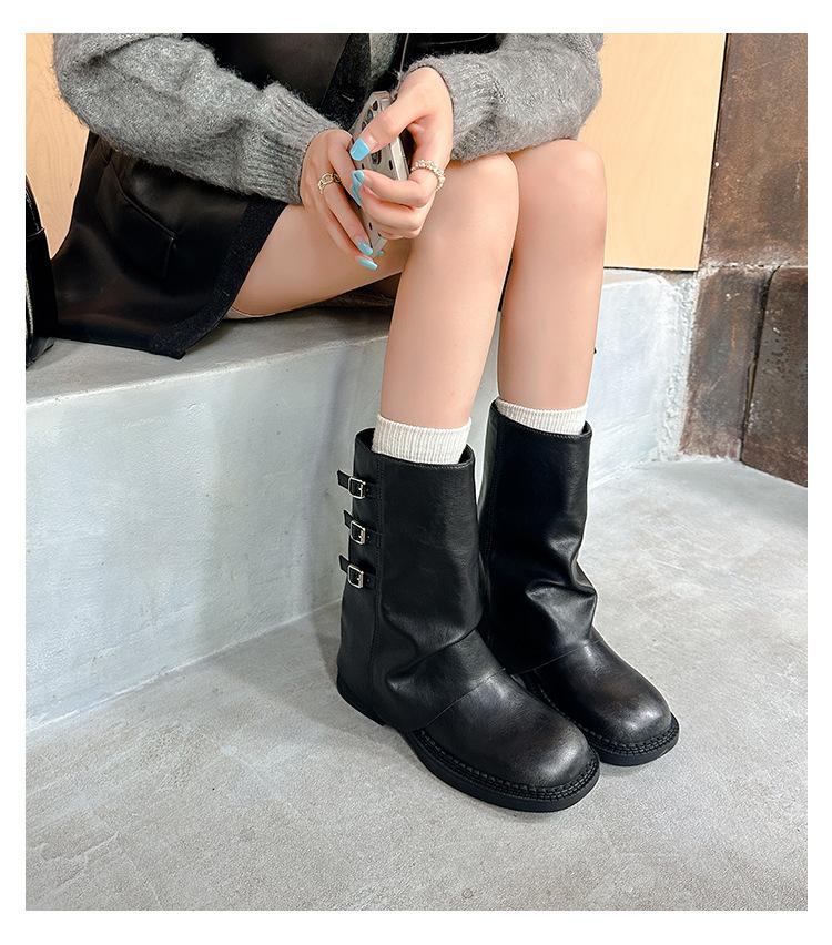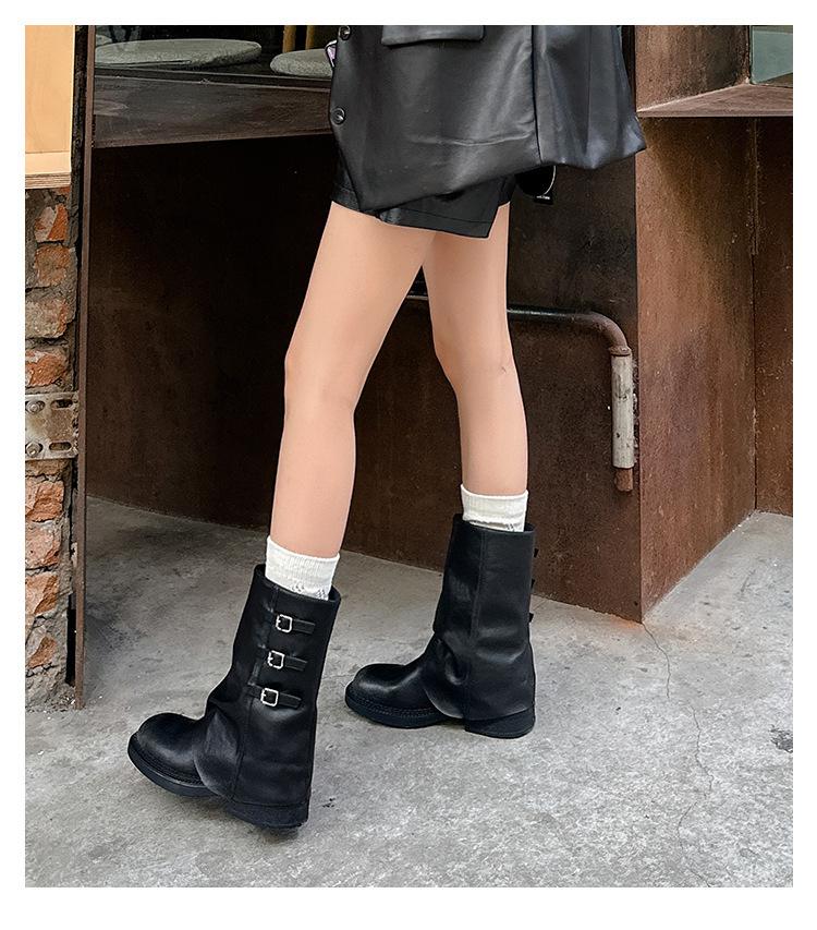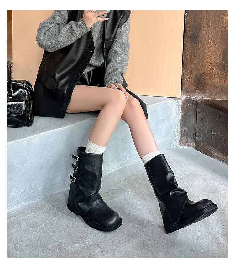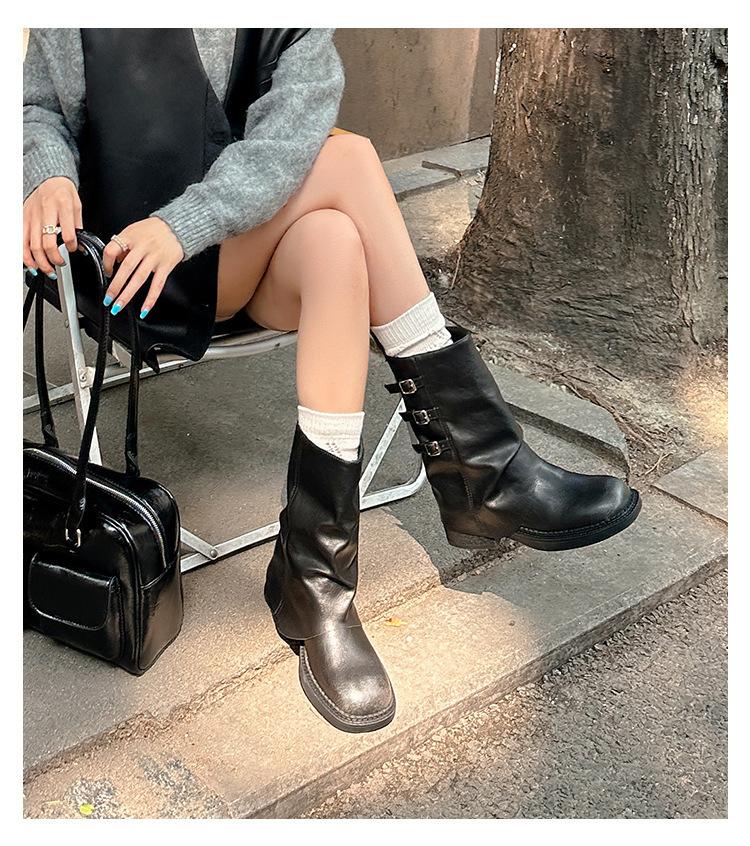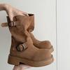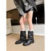 Botas retro de pierna ancha, botines de suela gruesa, versátiles, hebilla de cinturón adelgazante, botas vaqueras occidentales, botas Martin