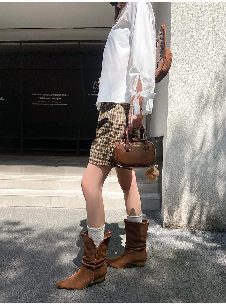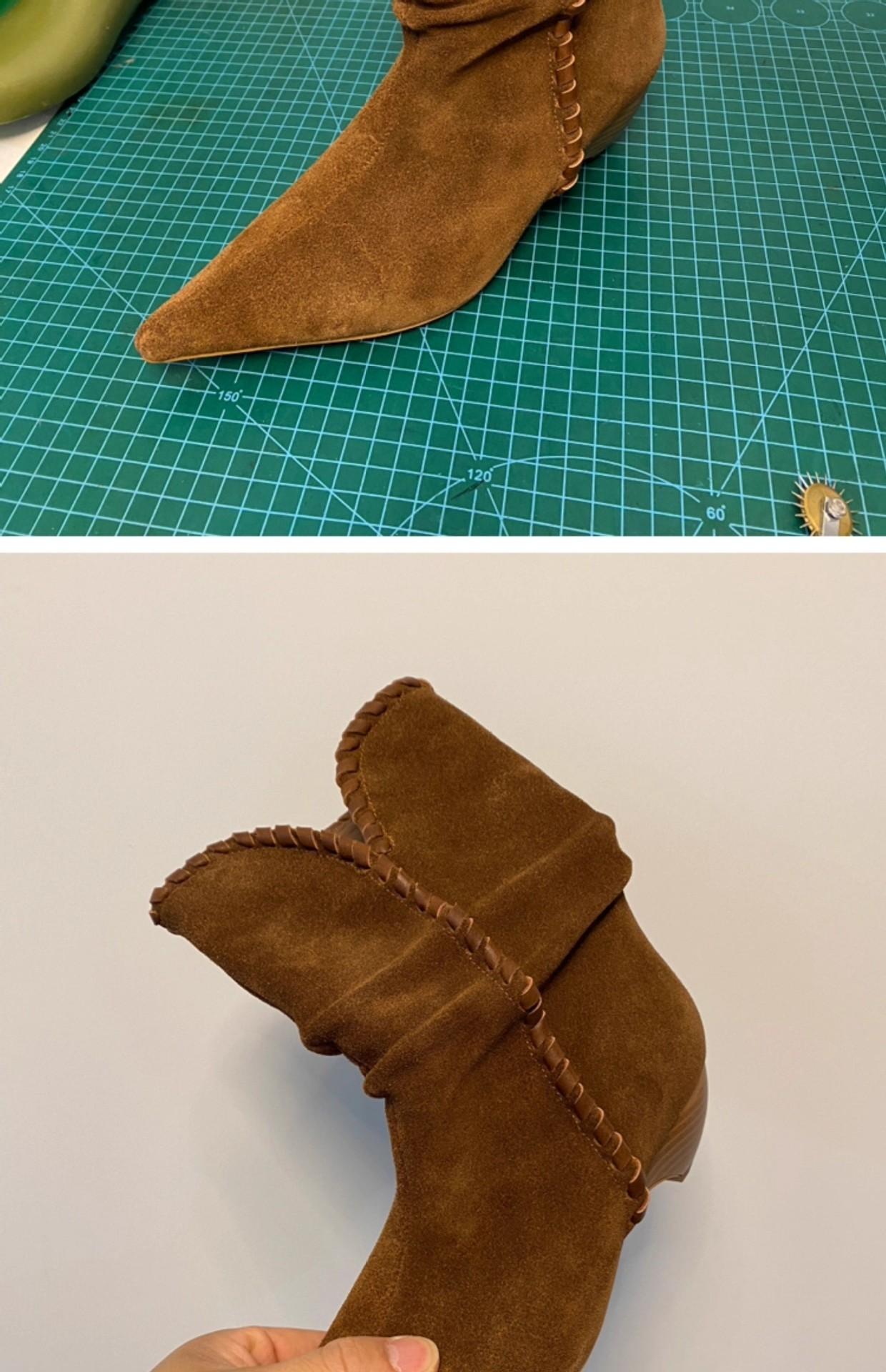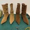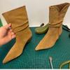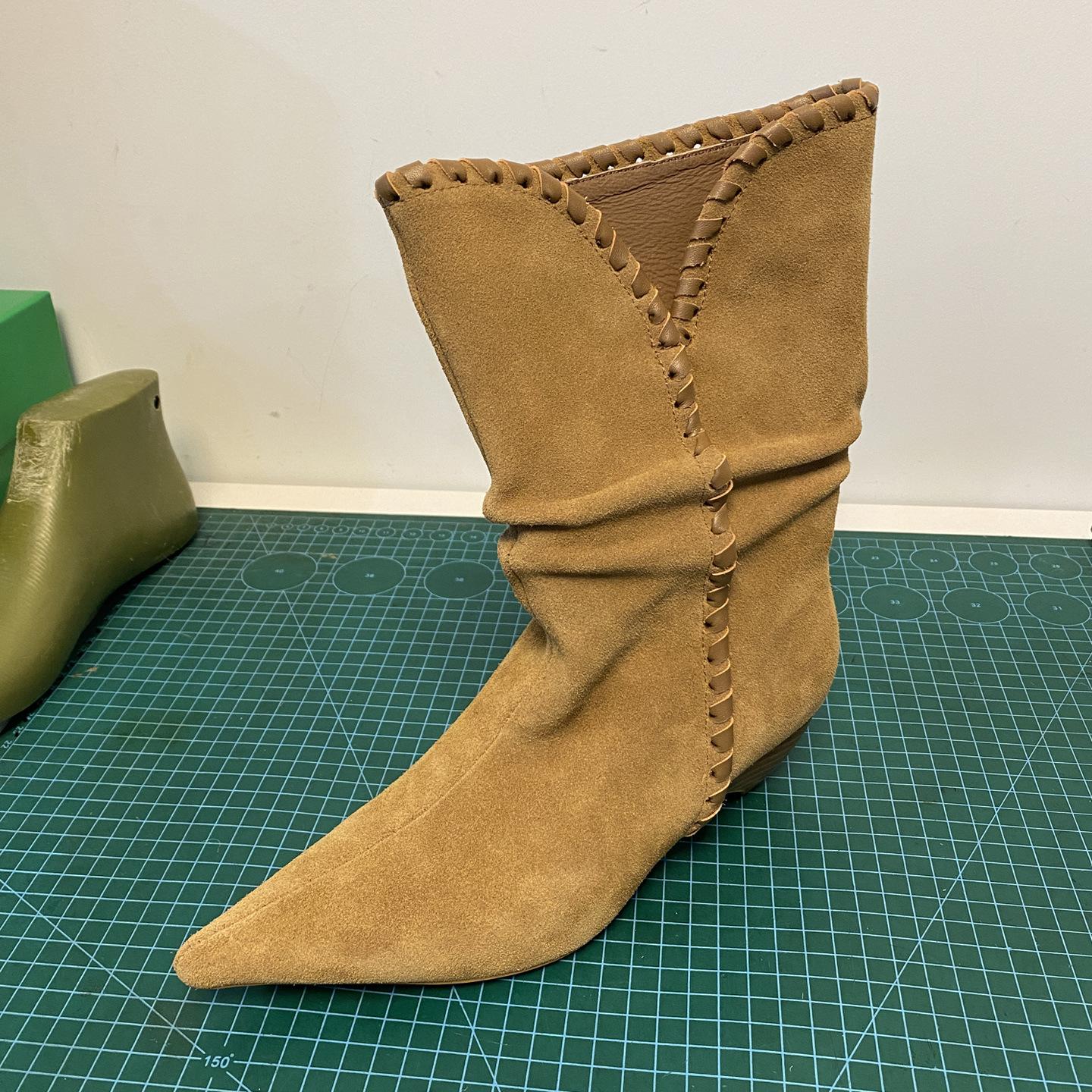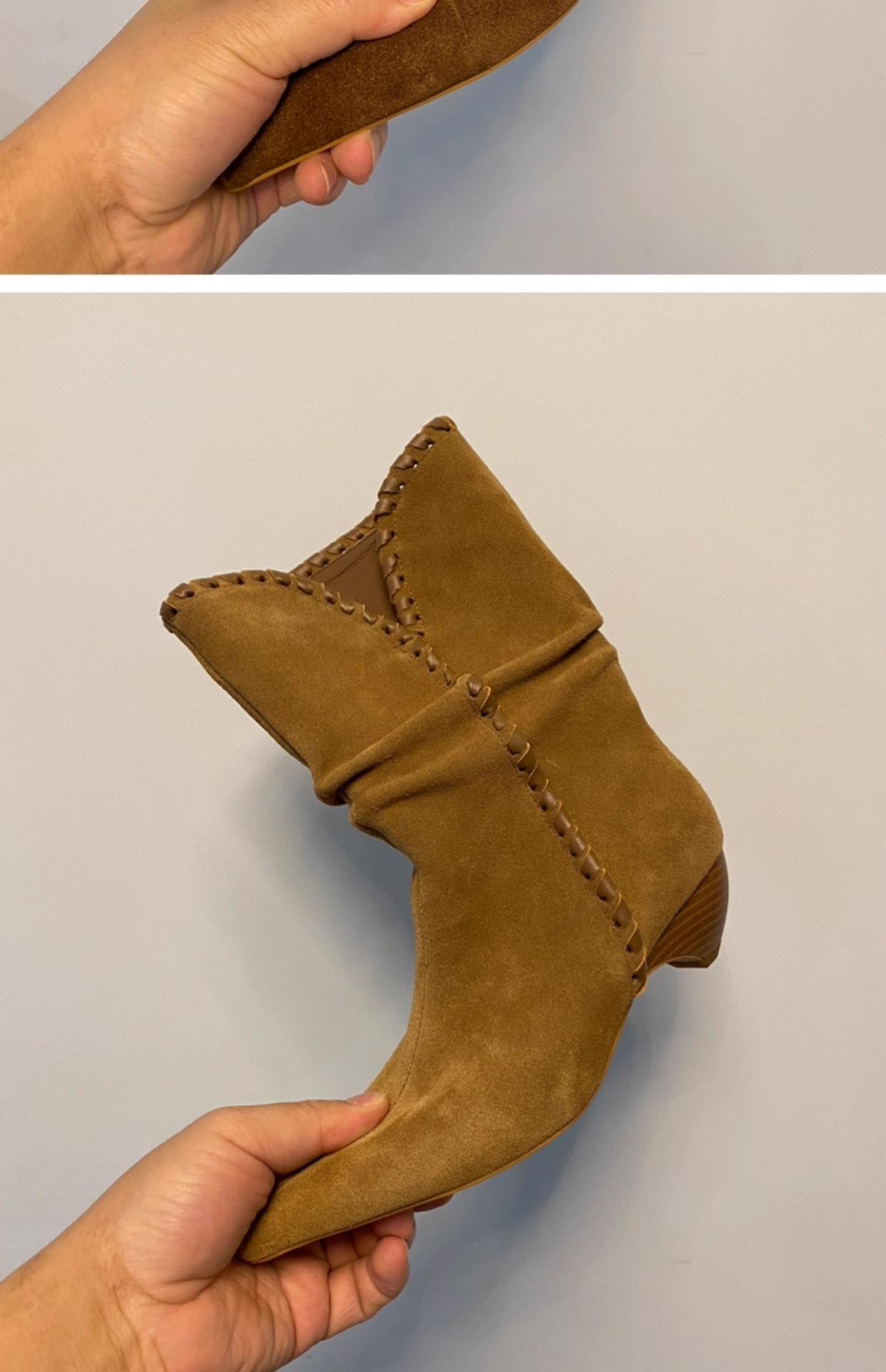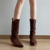 Botines de Ante de Punta Botas de Media Caña 2025 Nuevas Botas de Moda Adelgazantes Botas Altas de Seda de Ante de Vaca Tejidas Slouch para Mujer