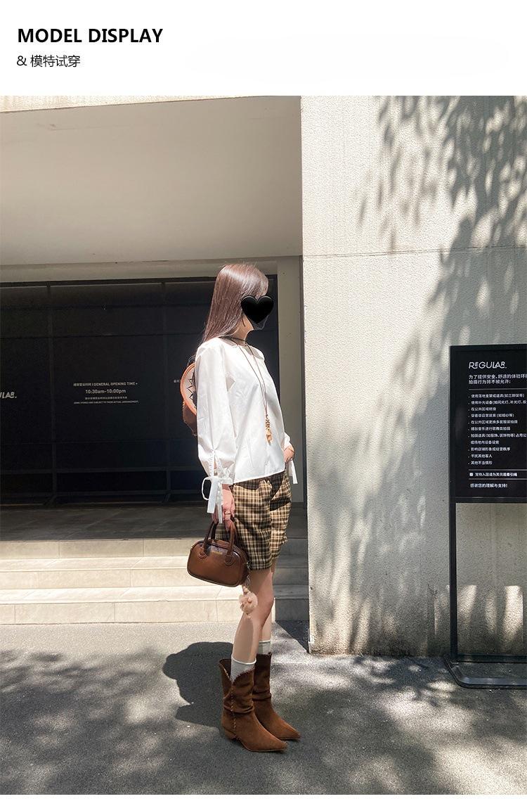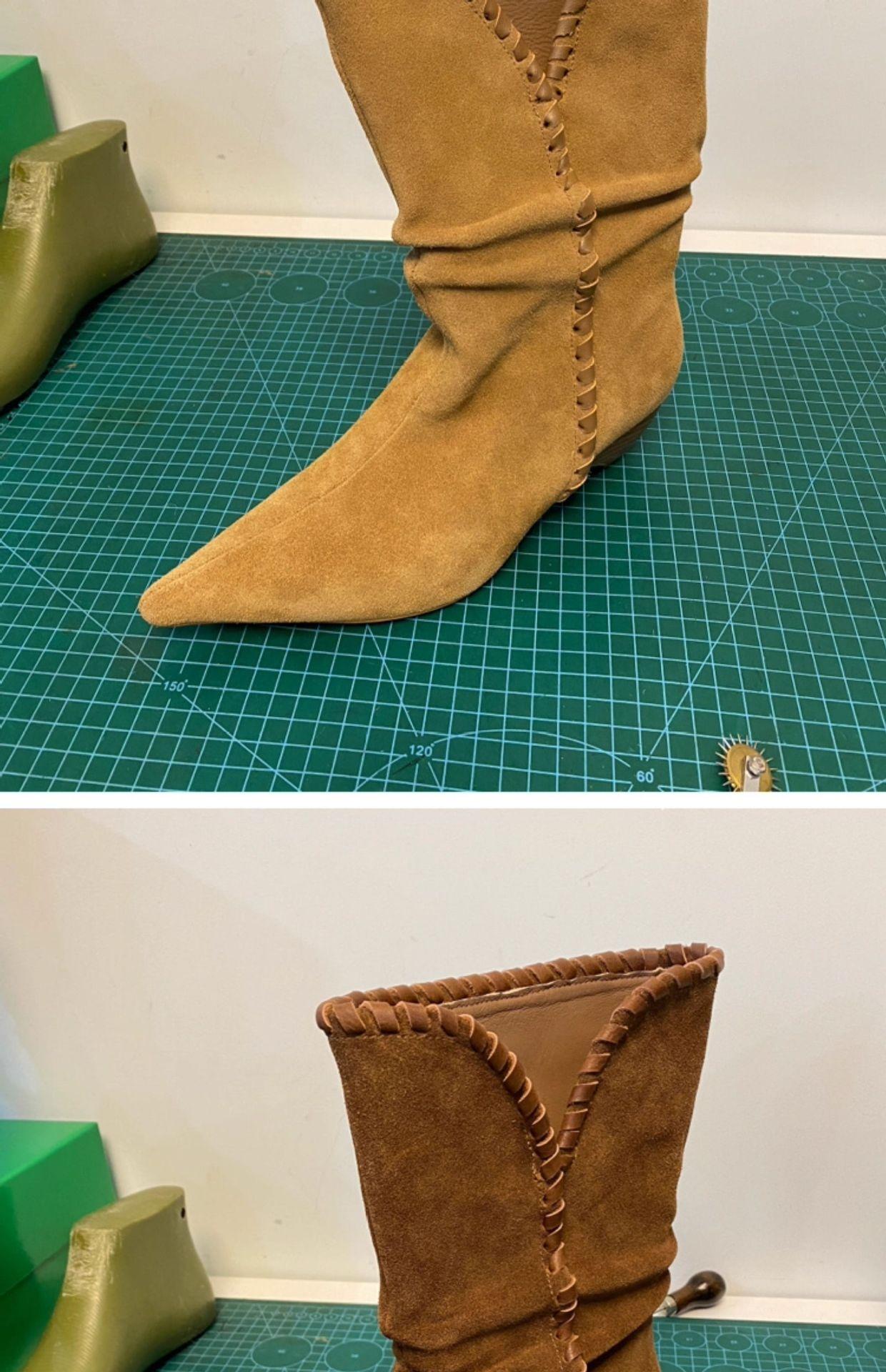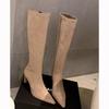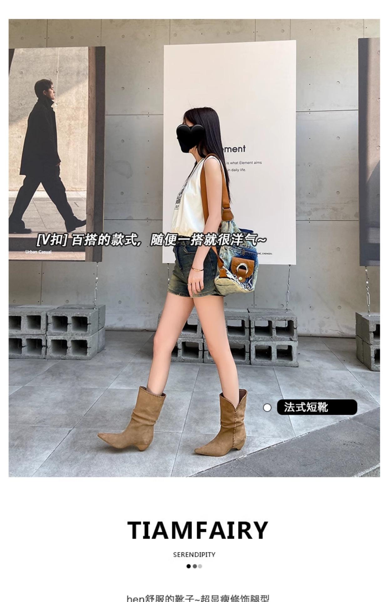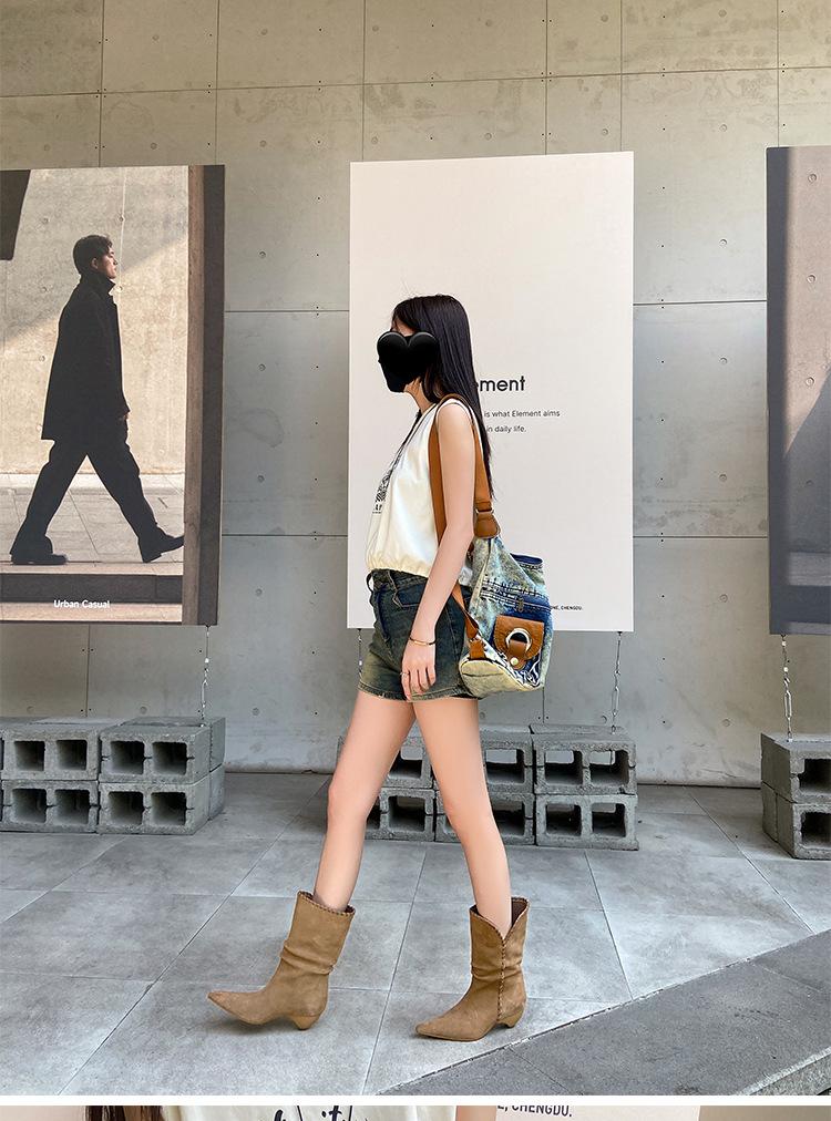 Botines de Ante de Punta Botas de Media Caña 2025 Nuevas Botas de Moda Adelgazantes Botas Altas de Seda de Ante de Vaca Tejidas Slouch para Mujer