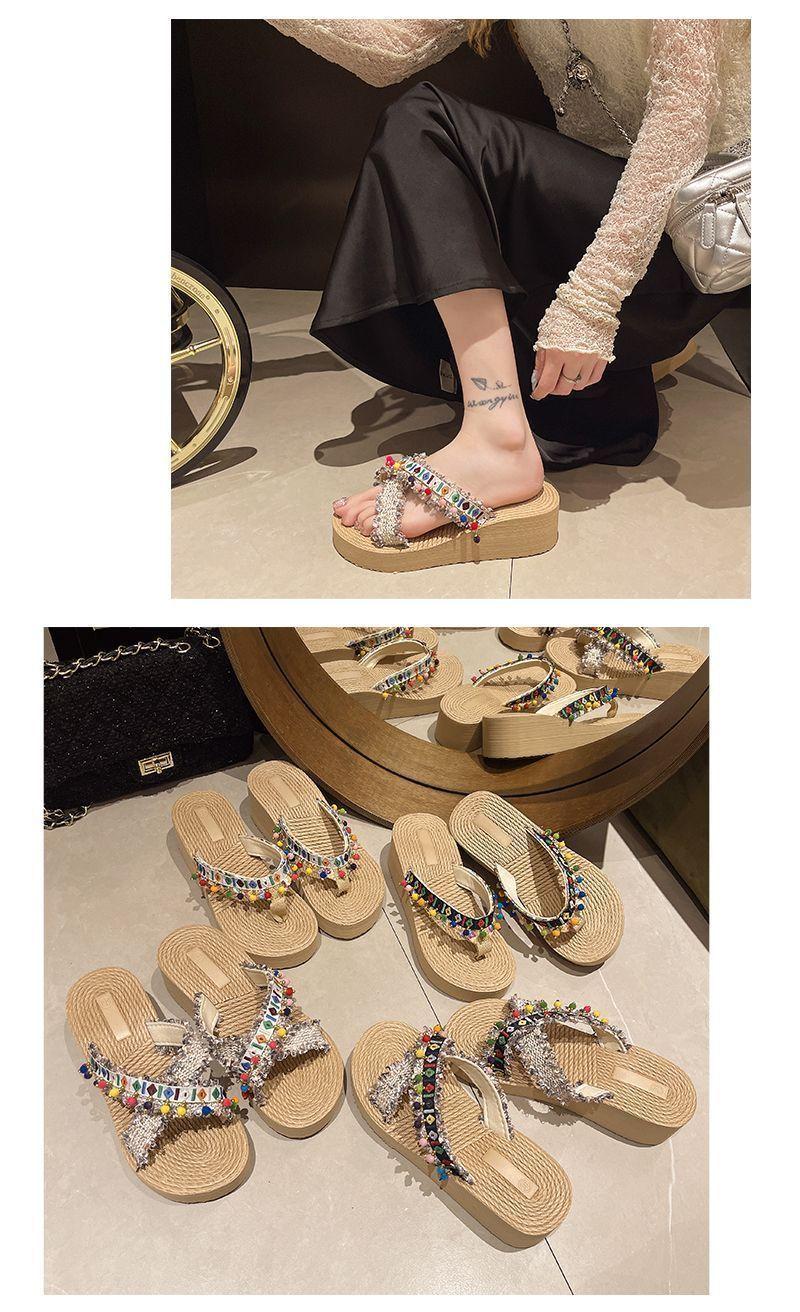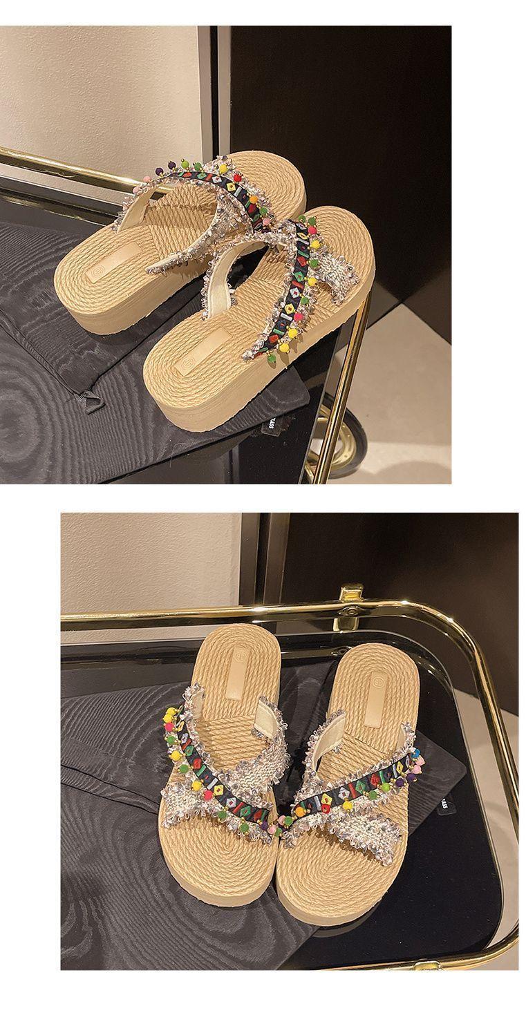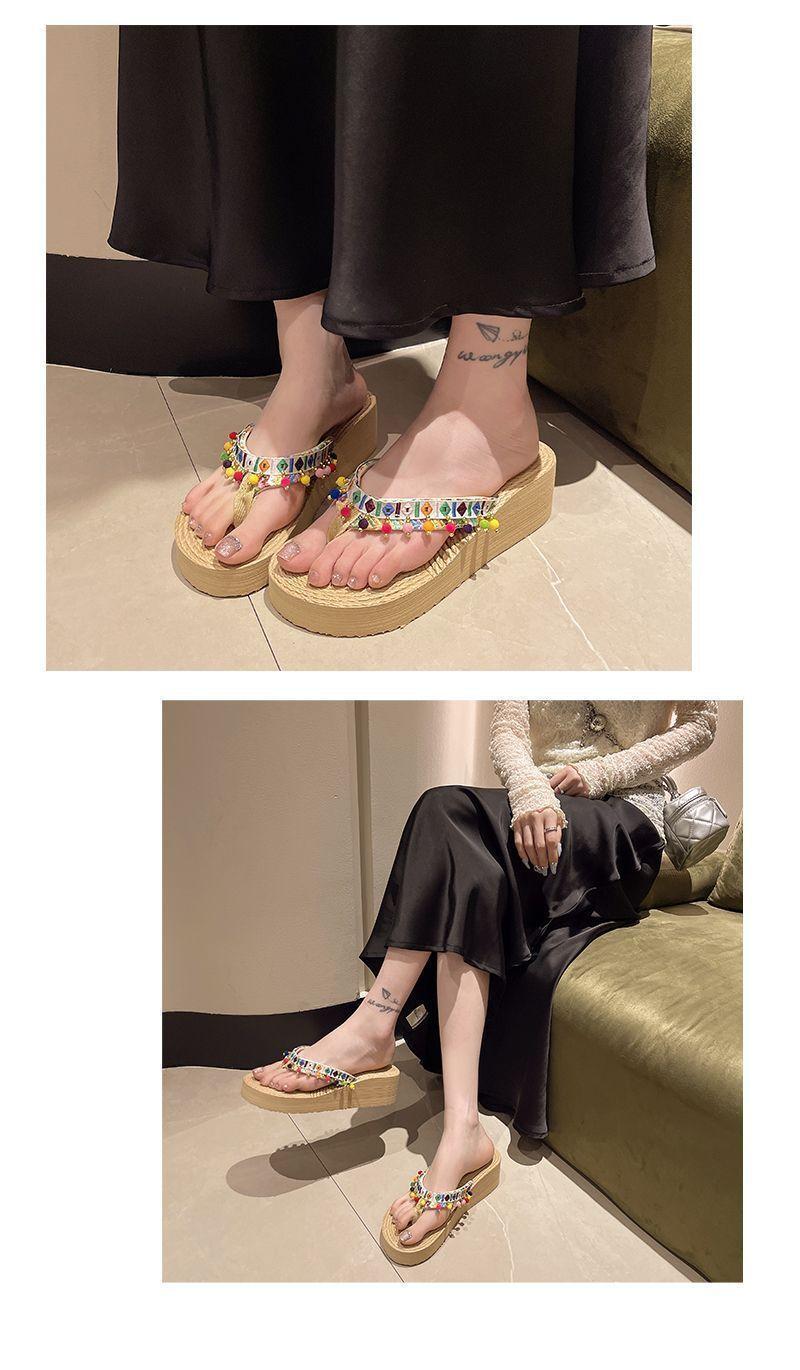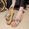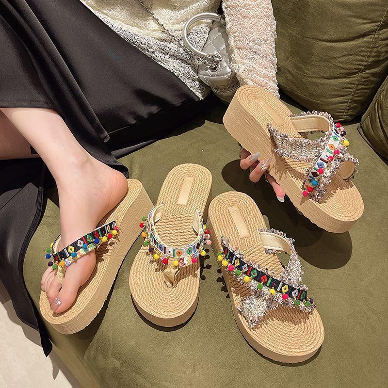 Pantuflas de moda versátiles cómodas para mujer para usar en exteriores 2025 verano nuevo antideslizantes que aumentan la altura de suela gruesa pantuflas de playa para vacaciones para mujer