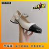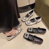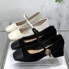Zapatos Mary Jane de Punta Cuadrada Mujer Tacón Grueso Zapatos de Noche Corte Bajo Zapatos Individuales Dulce Estilo Retro Francés Tacón Medio de Perlas Hada Trendy