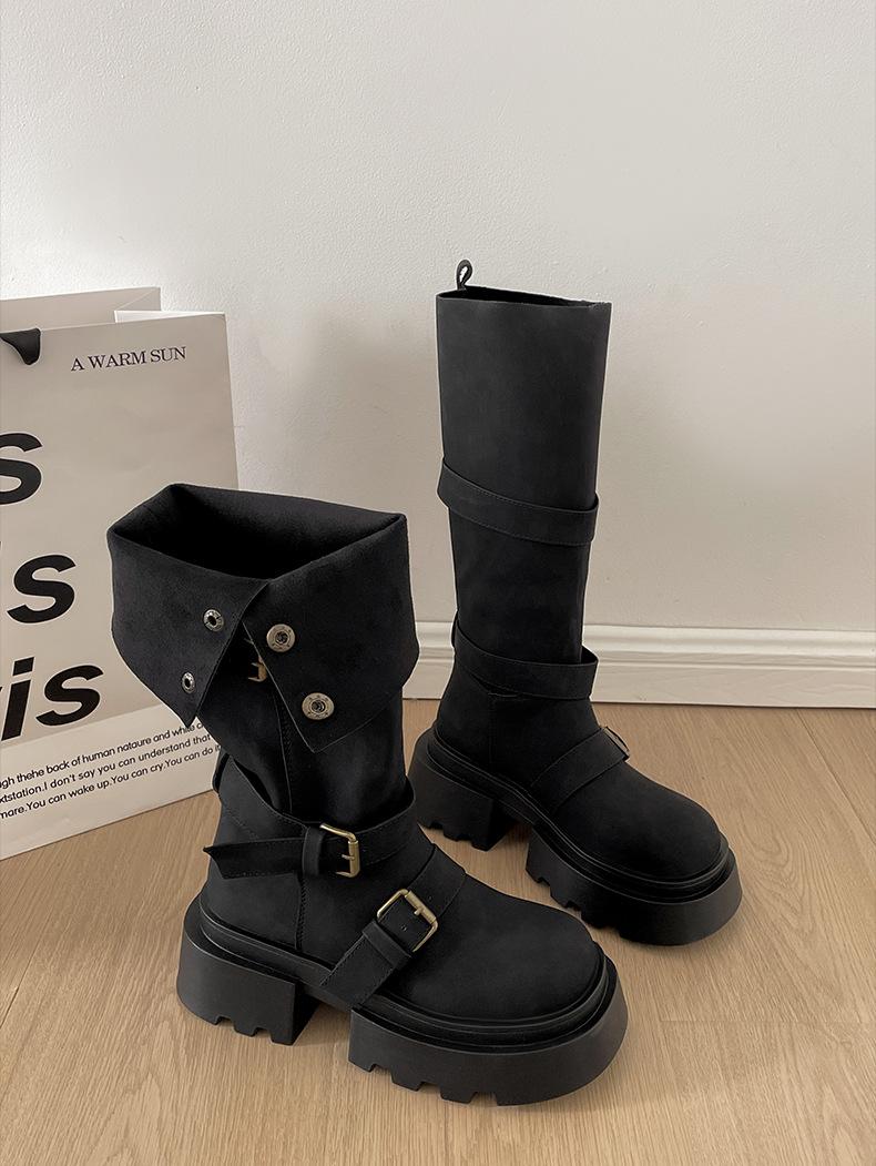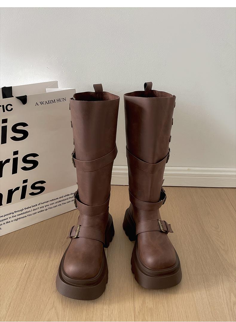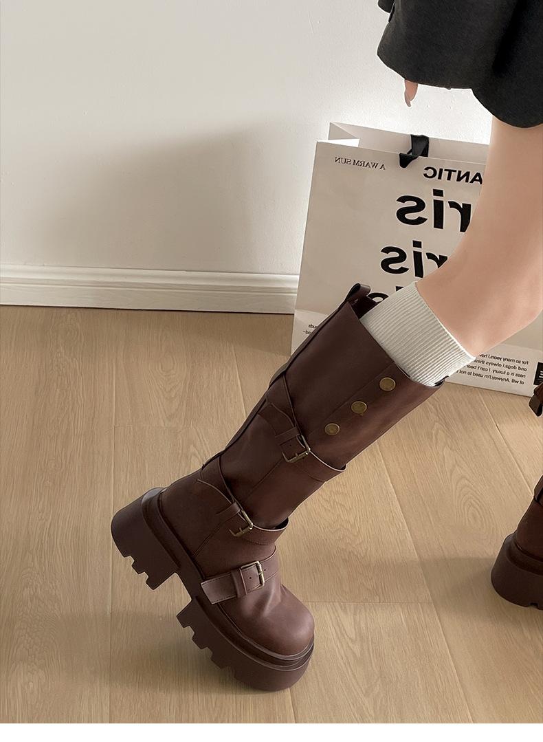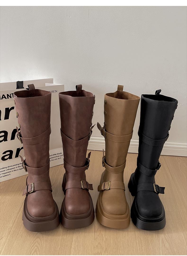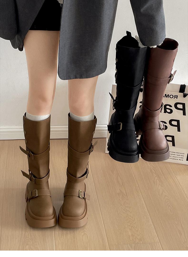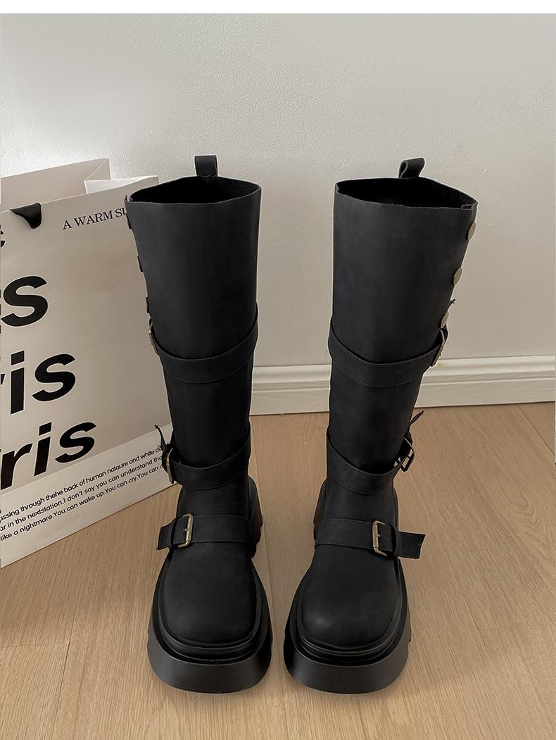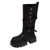 Botas retro negras de alta gama británicas de suela gruesa para mujer hasta la rodilla 2025 nuevo otoño adelgazantes y que aumentan la altura botas de caballero