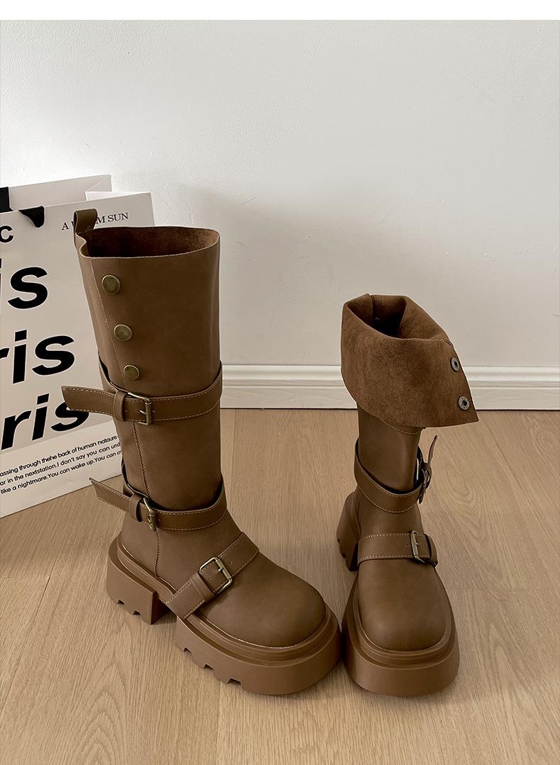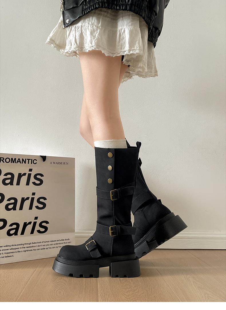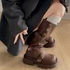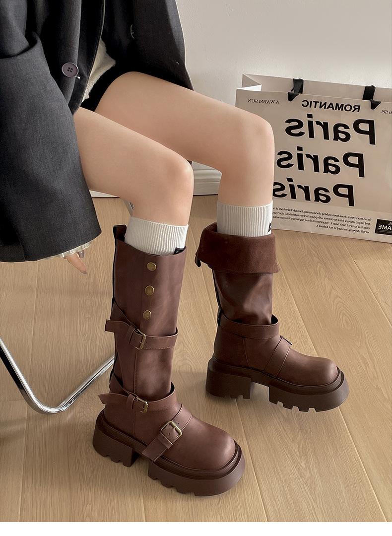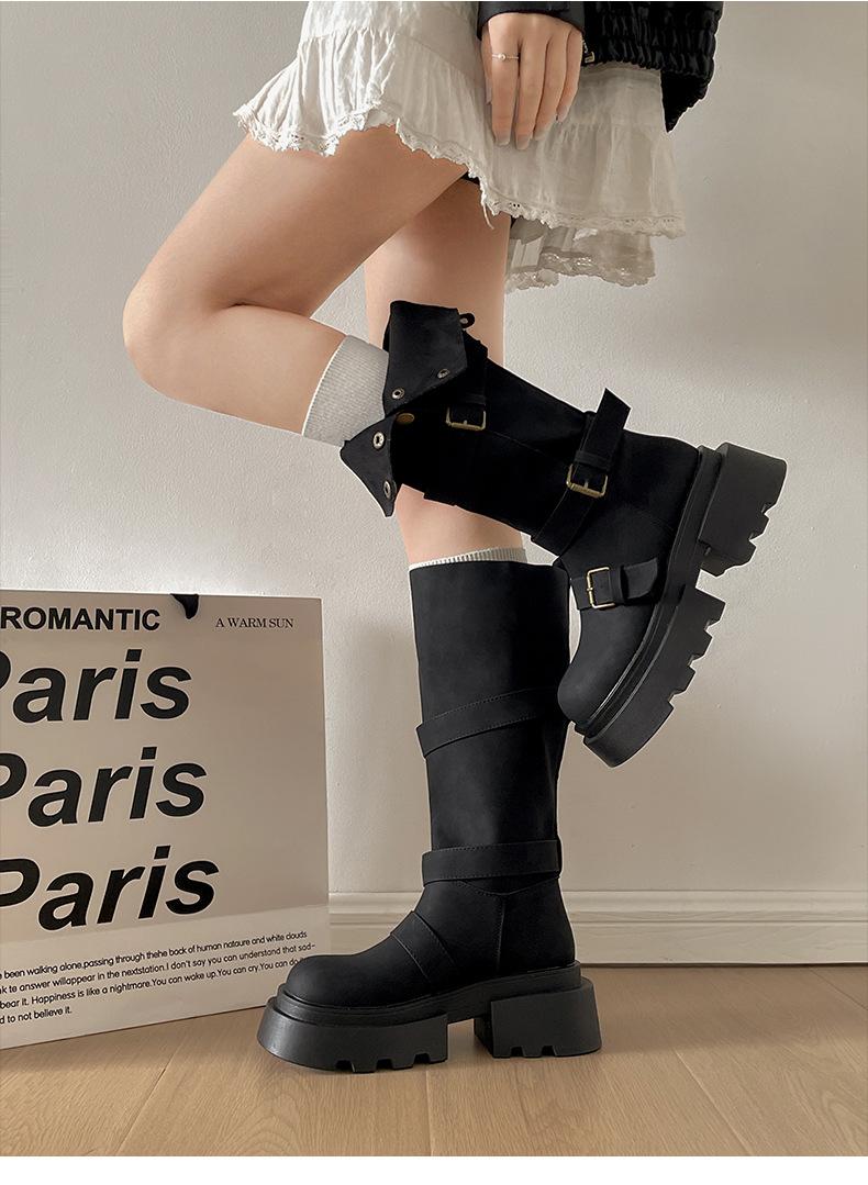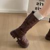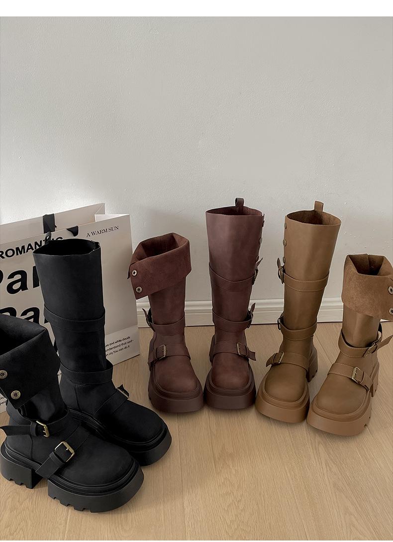 Botas retro negras de alta gama británicas de suela gruesa para mujer hasta la rodilla 2025 nuevo otoño adelgazantes y que aumentan la altura botas de caballero