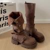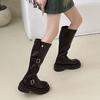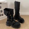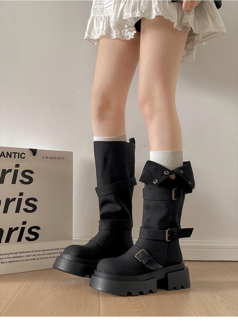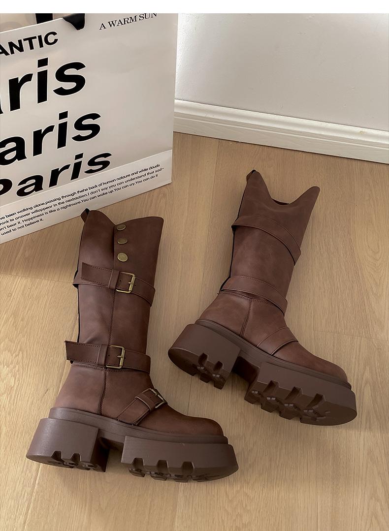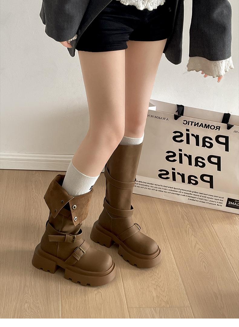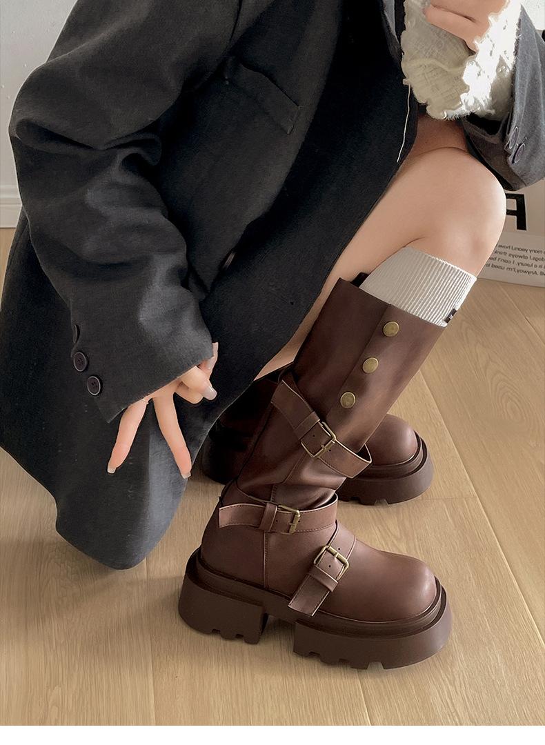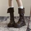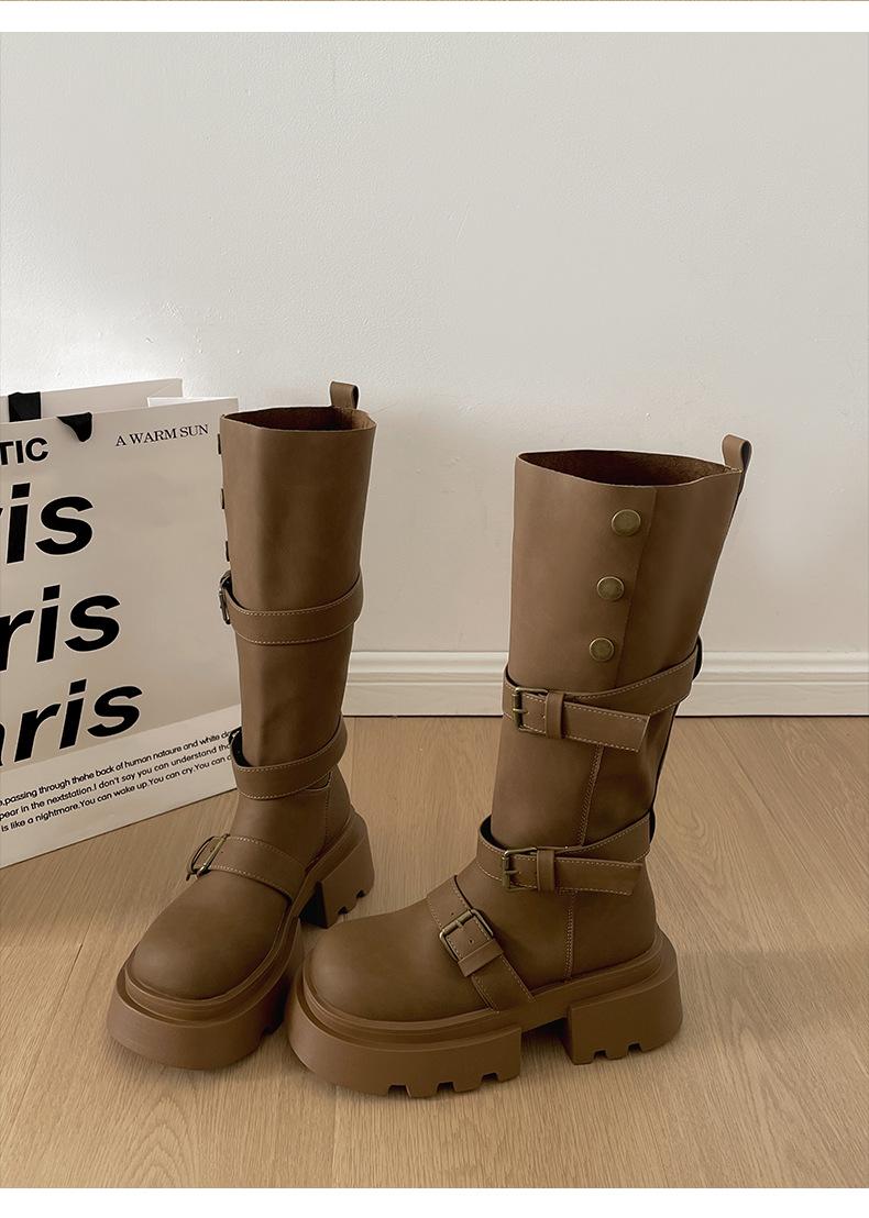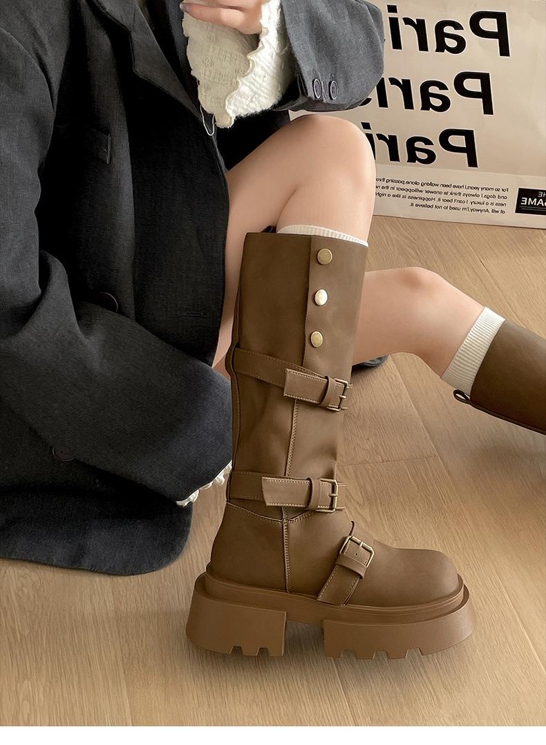 Botas retro negras de alta gama británicas de suela gruesa para mujer hasta la rodilla 2025 nuevo otoño adelgazantes y que aumentan la altura botas de caballero