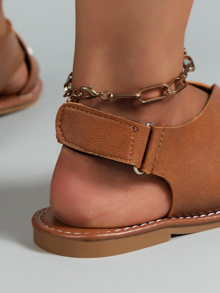 Sandalias planas de tiras cruzadas de talla grande para comercio exterior europeo y americano para mujer, sandalias planas cómodas de tira ancha con puntera descubierta