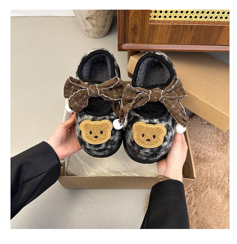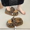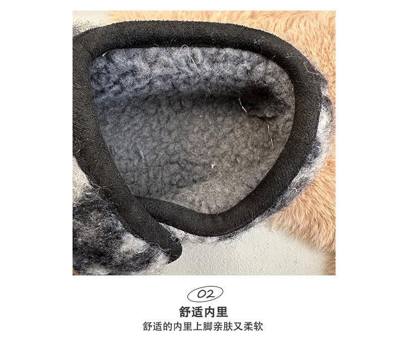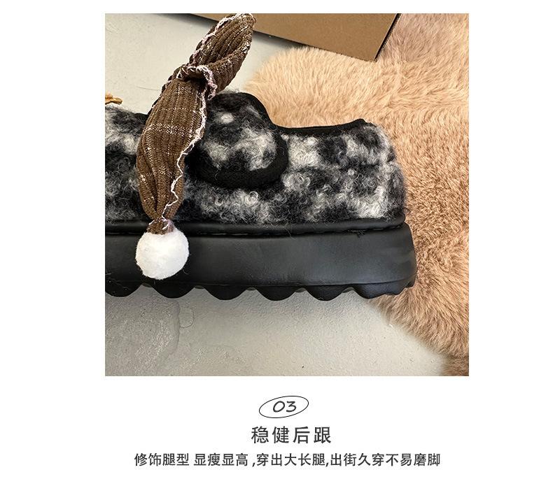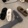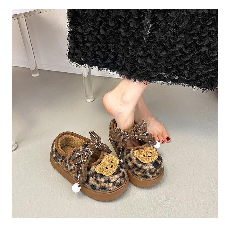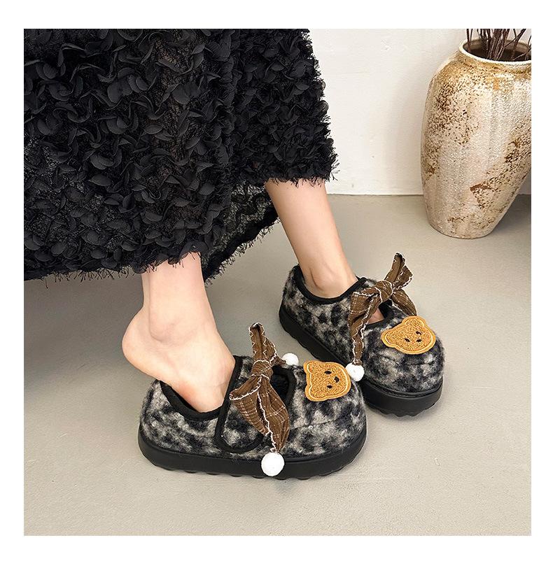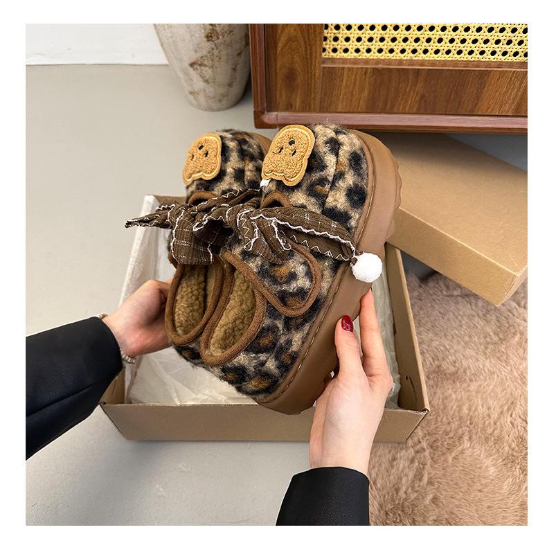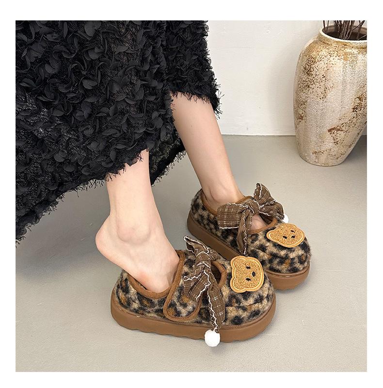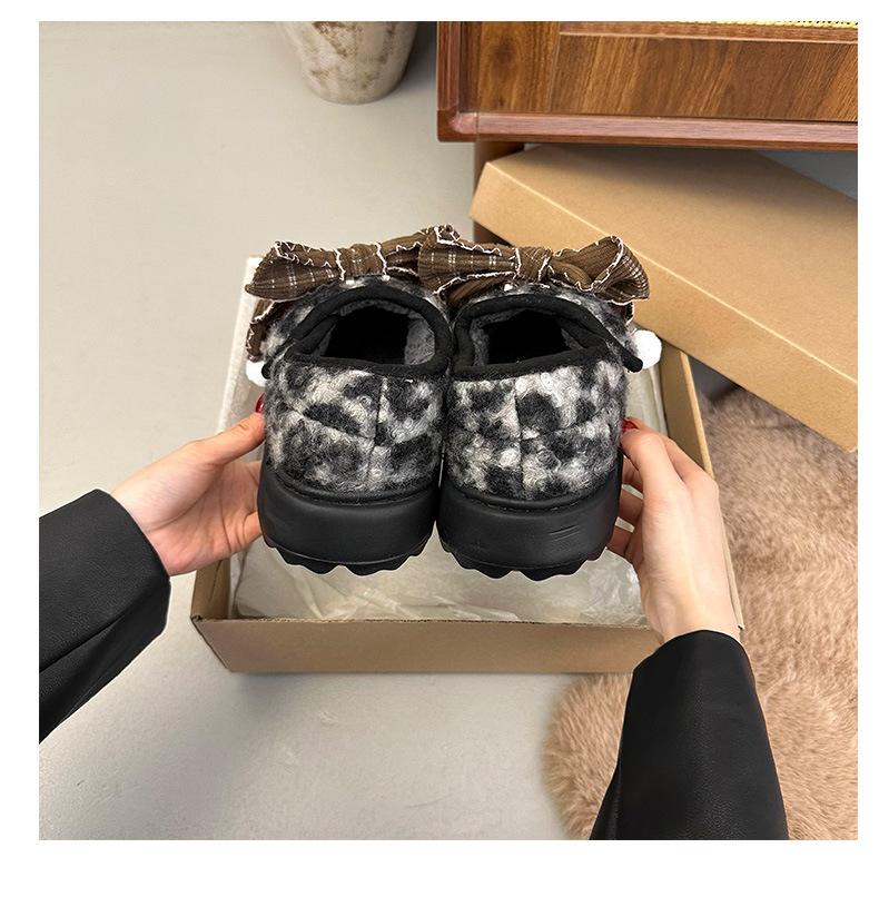 Mary Janes planas con estampado de leopardo y pedrería, zapatos peludos de dibujos animados con suela gruesa, moda versátil de otoño e invierno para mujer, zapatos de algodón, zapatos individuales de felpa