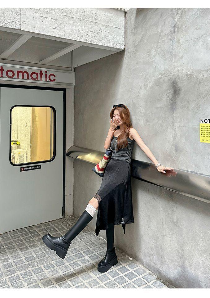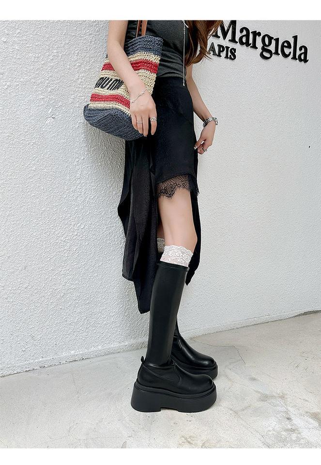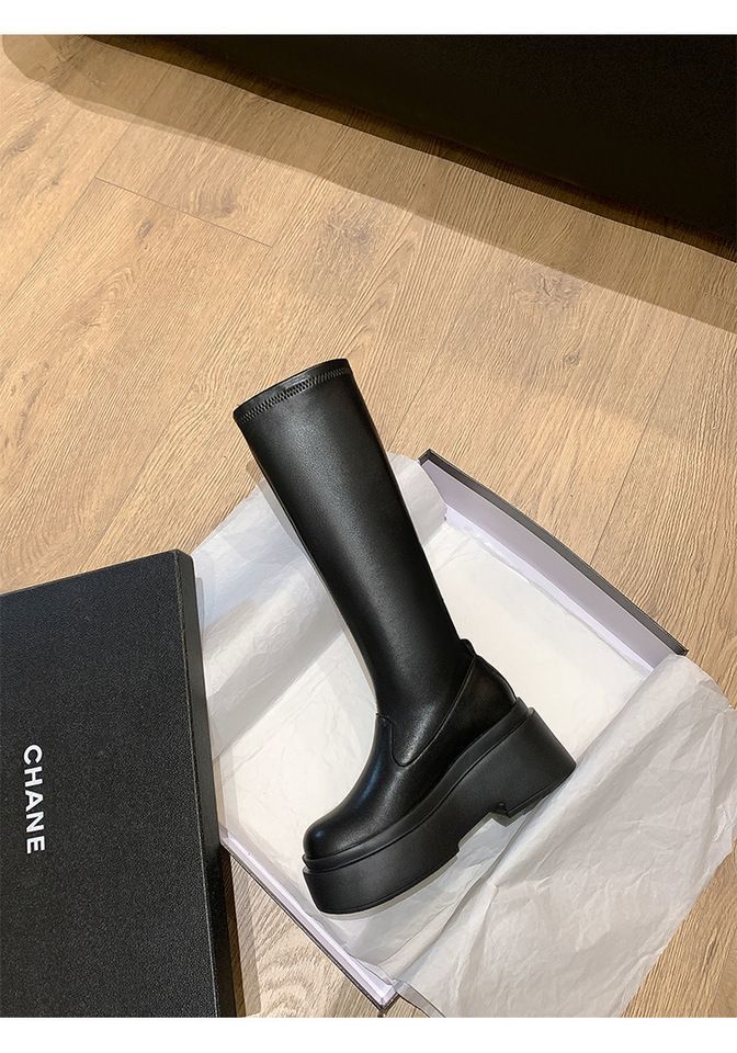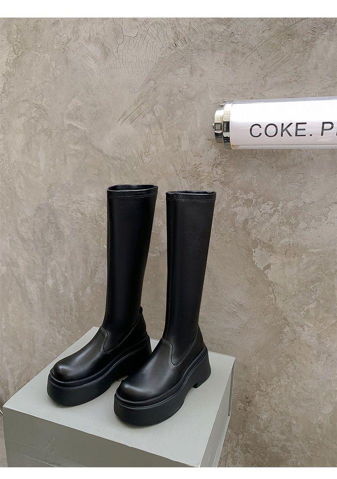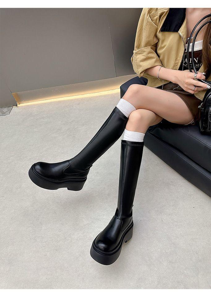 Botas de Cuero para Mujer Nuevas de Suela Gruesa Elásticas Adelgazantes por Encima de la Rodilla de Caña Alta Tipo Caballero Botas de Tacón Alto Largas para Chica Hot Mujer