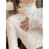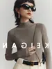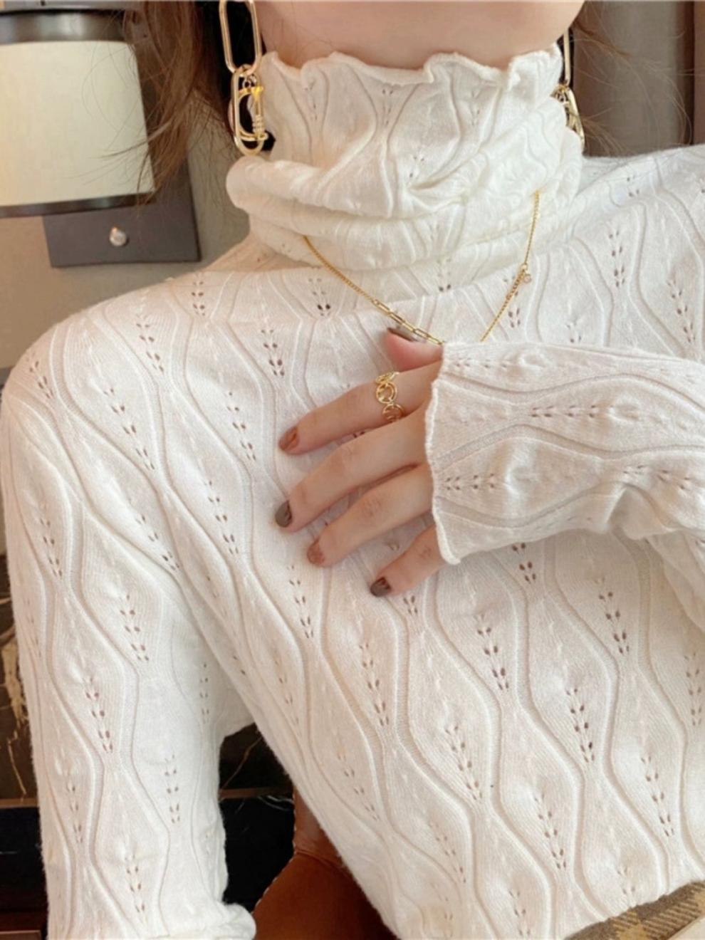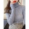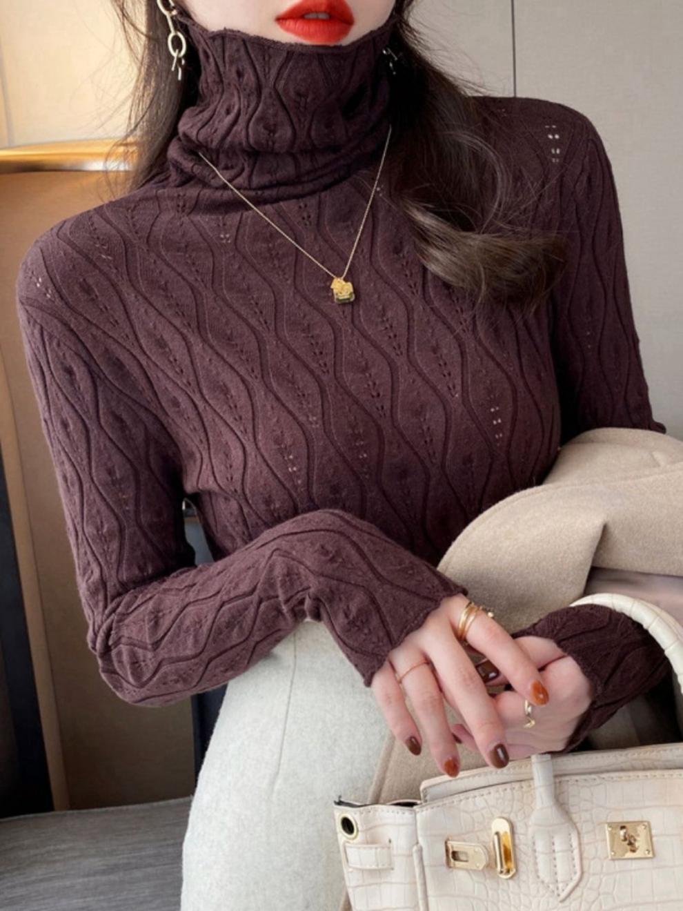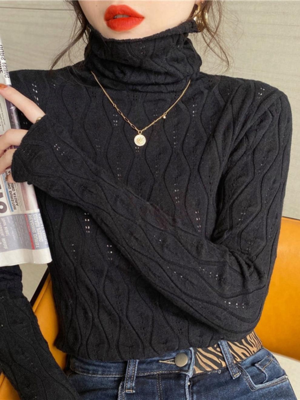 Camiseta Base de Cuello Alto de Felpa para Mujer Manga Larga Otoño Invierno Moda de Alta Gama Suéter de Capa Interior Adelgazante Cuello Alto Top de Punto