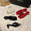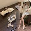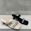 Verano Versátil Elegante 2025 Nuevas Zapatillas Transparentes Plateadas con Pedrería Mujeres Mariposa Punta Cuadrada Sandalias de Tacón Alto Mujeres