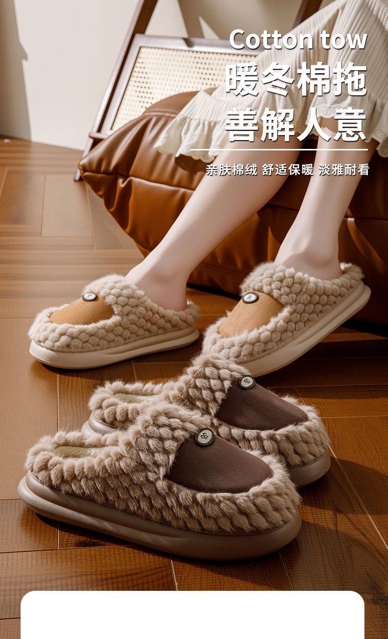 Pantuflas de algodón de otoño e invierno para hombre, para interior del hogar, antideslizantes, cálidas, no sofocantes para los pies, suela gruesa con sensación de pisar mierda, pantuflas cálidas de felpa para mujer