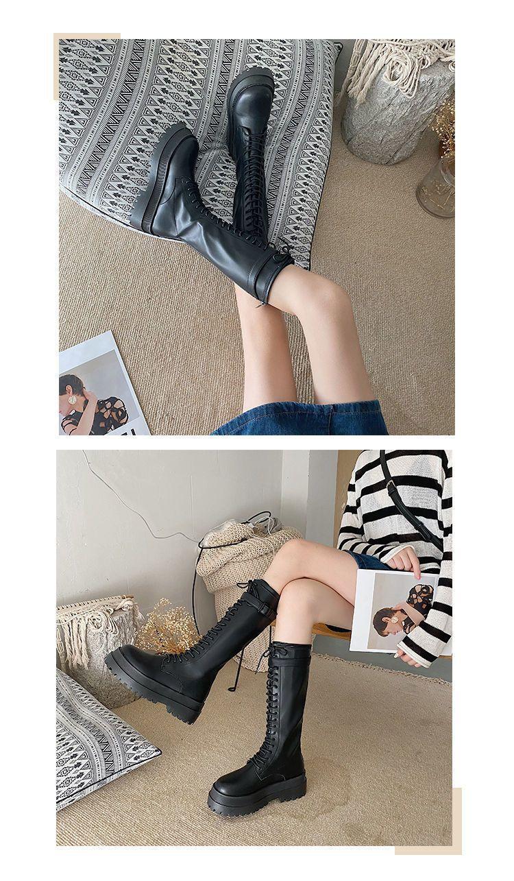 Botas Altas Botas Largas para Mujer Sobre la Rodilla Adelgazantes Media Pantorrilla Estilo Delgado 2025 Primavera y Otoño Nuevas Botas Martin Botas Únicas de Jinete
