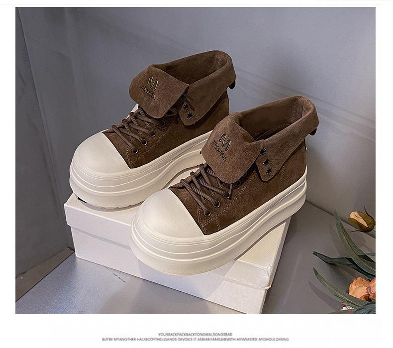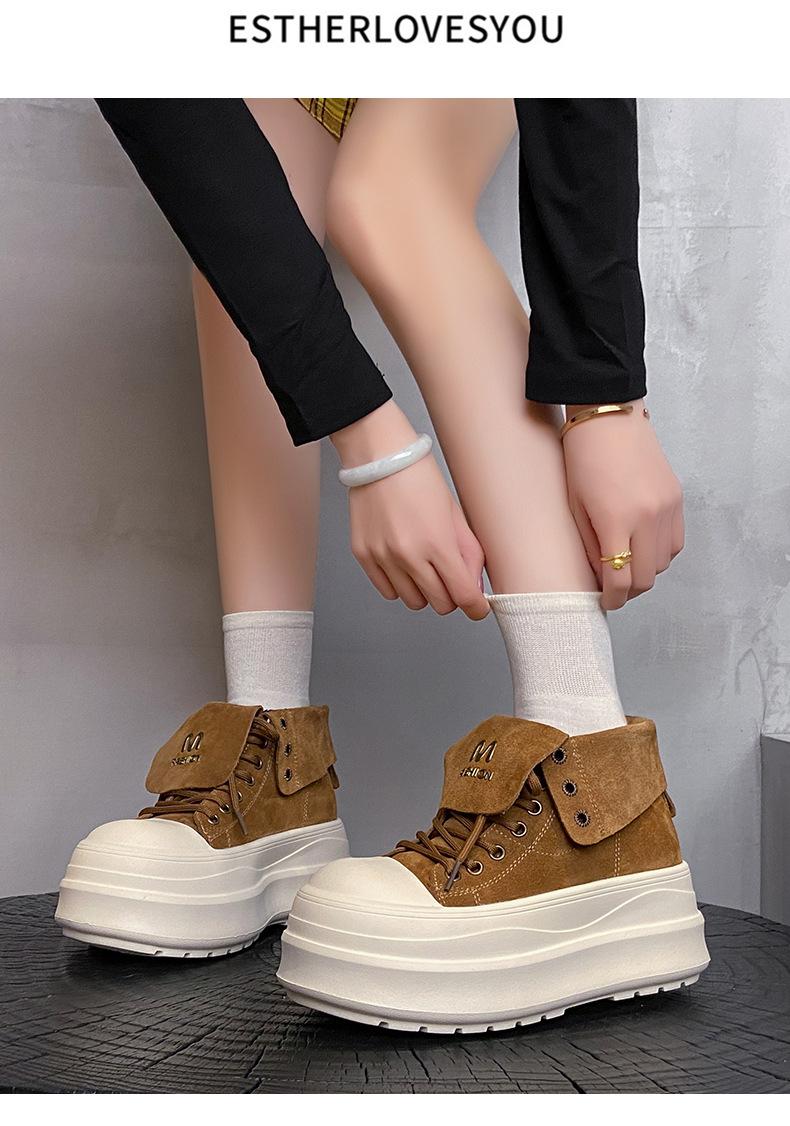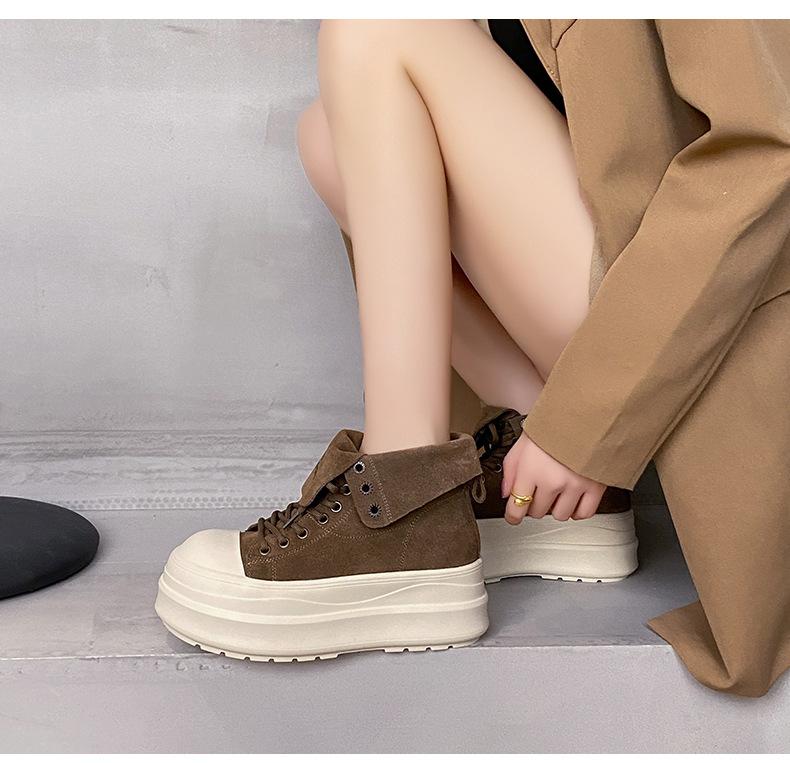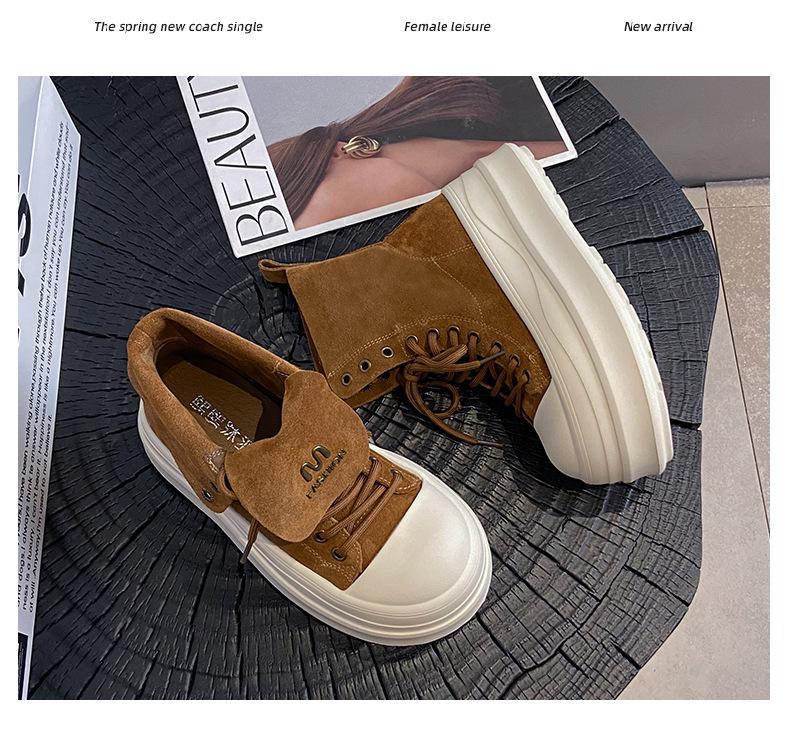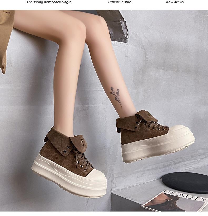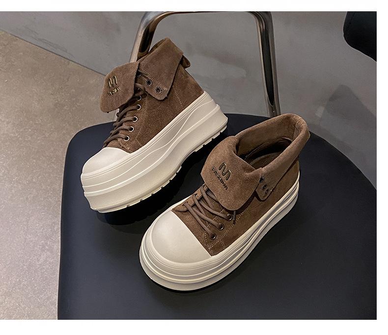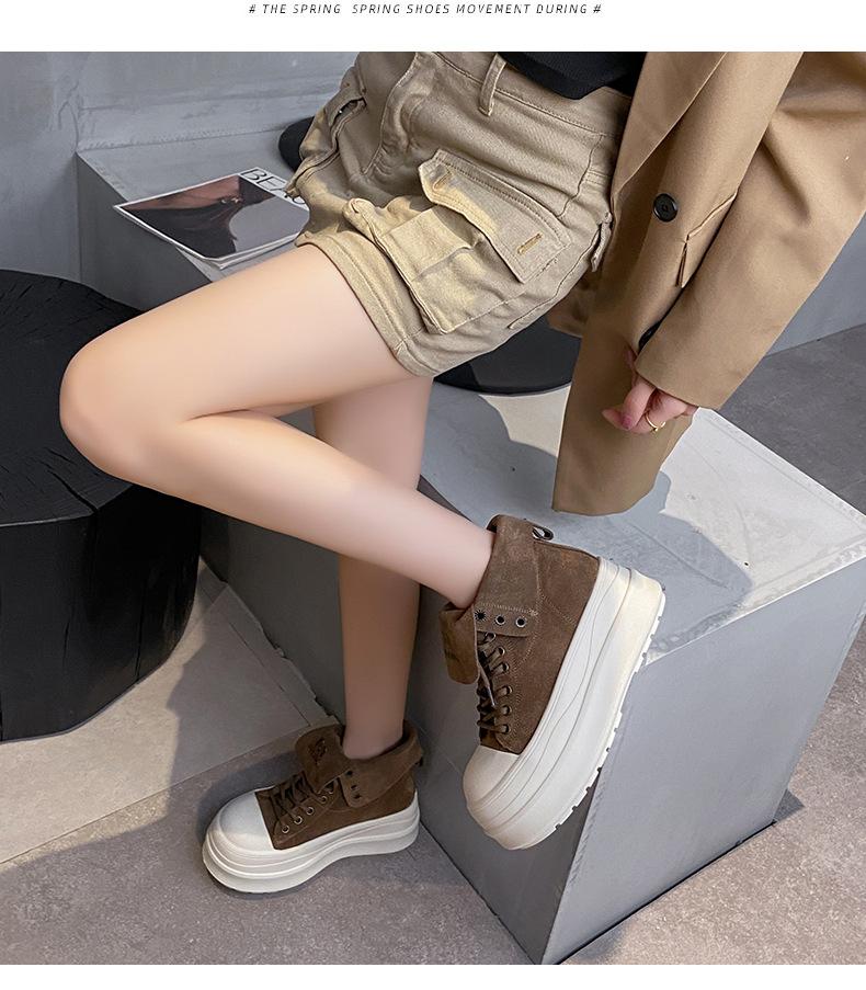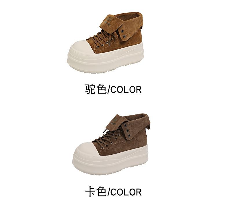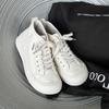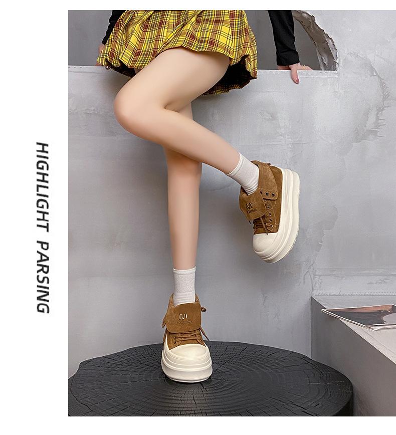 2025 Principios de Otoño Nueva Moda Estilo Coreano Zapatos de Plataforma de Suela Gruesa Zapatos de Caña Alta para Mujer Versátiles con Cordones Aumentadores de Altura Tenis Casuales