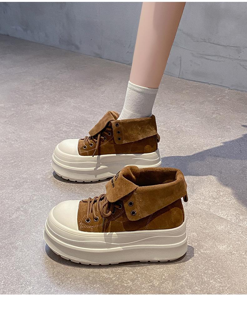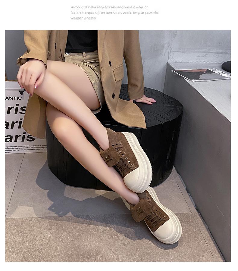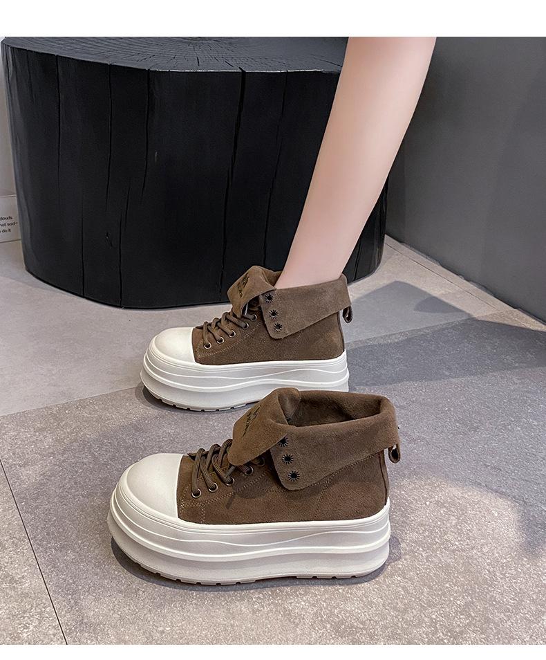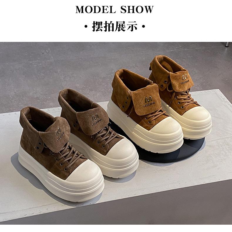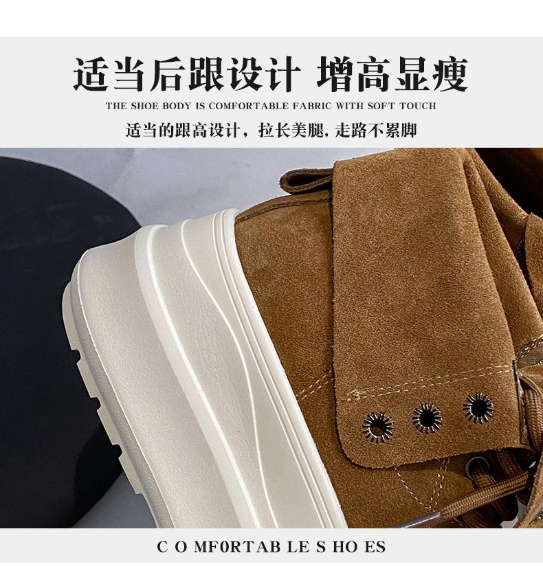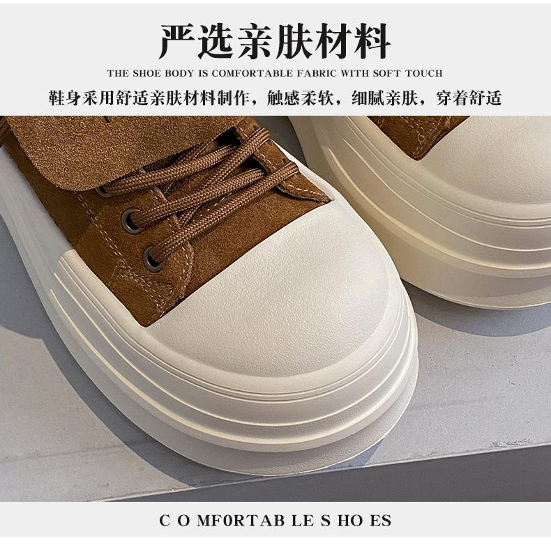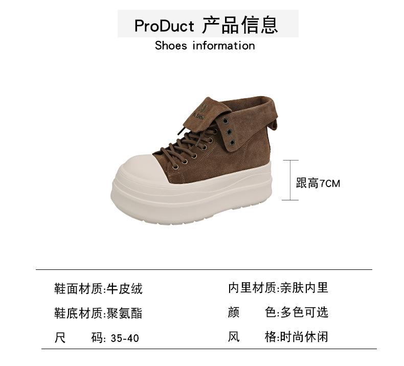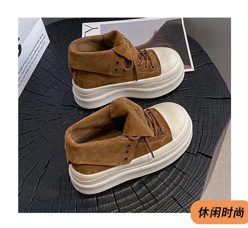 2025 Principios de Otoño Nueva Moda Estilo Coreano Zapatos de Plataforma de Suela Gruesa Zapatos de Caña Alta para Mujer Versátiles con Cordones Aumentadores de Altura Tenis Casuales