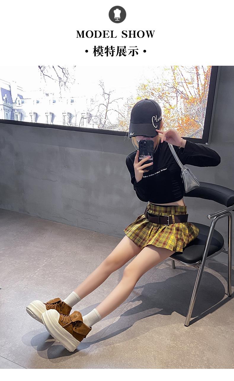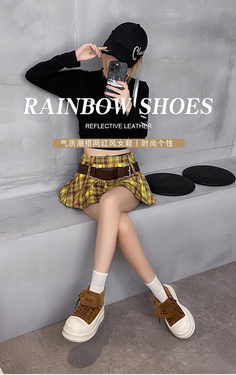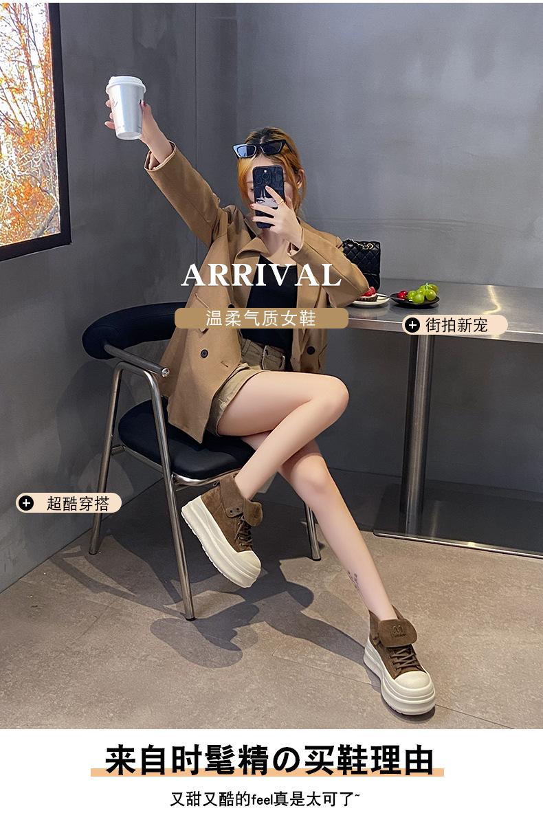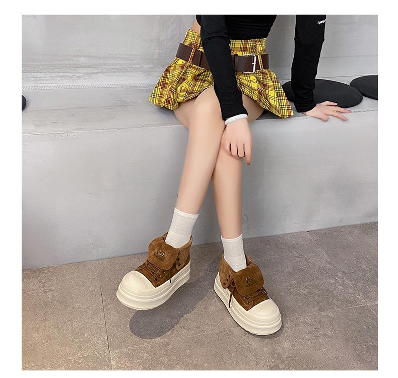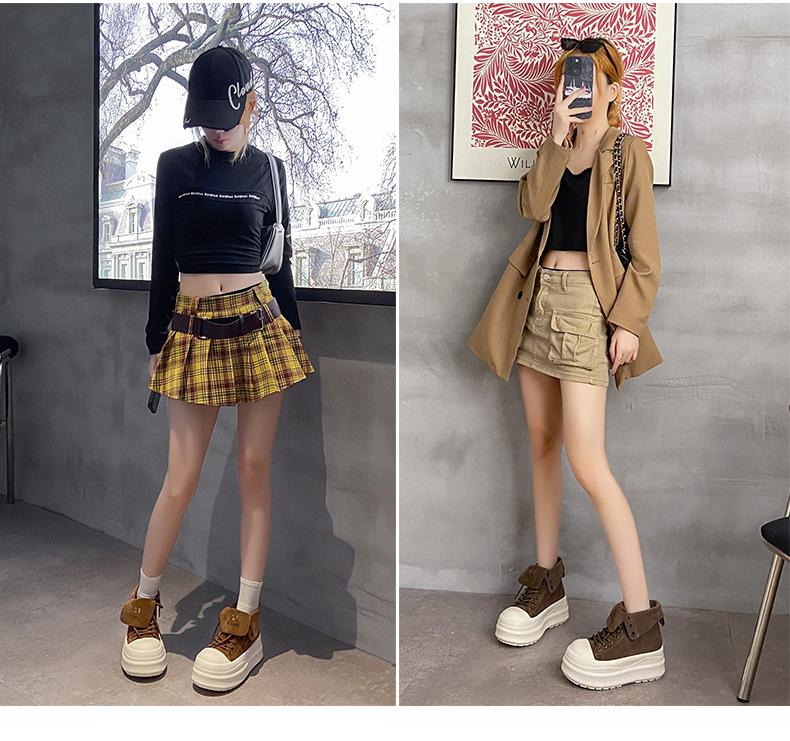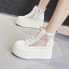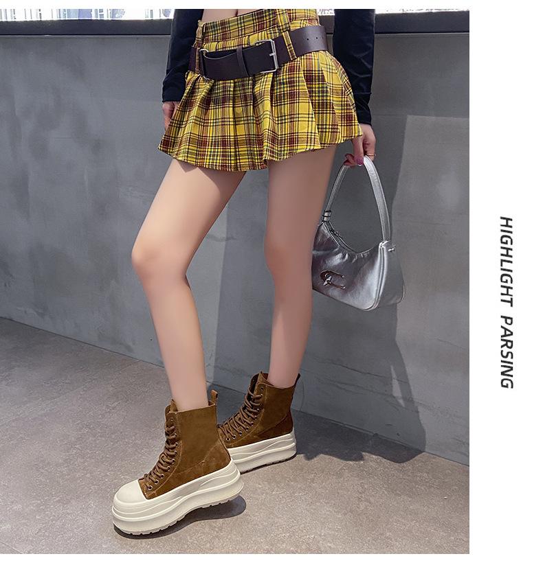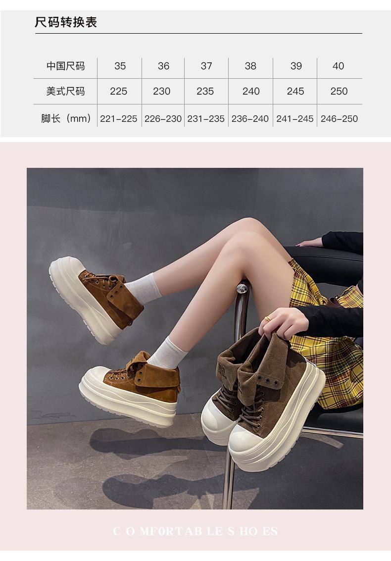 2025 Principios de Otoño Nueva Moda Estilo Coreano Zapatos de Plataforma de Suela Gruesa Zapatos de Caña Alta para Mujer Versátiles con Cordones Aumentadores de Altura Tenis Casuales