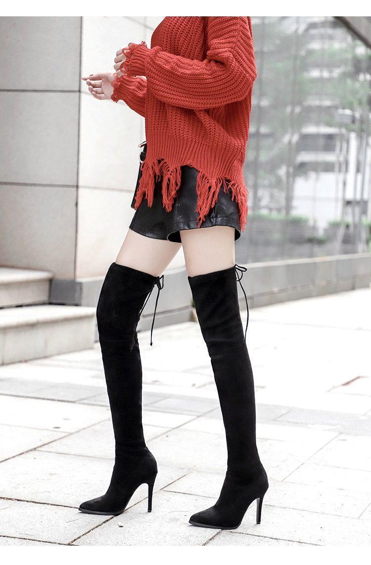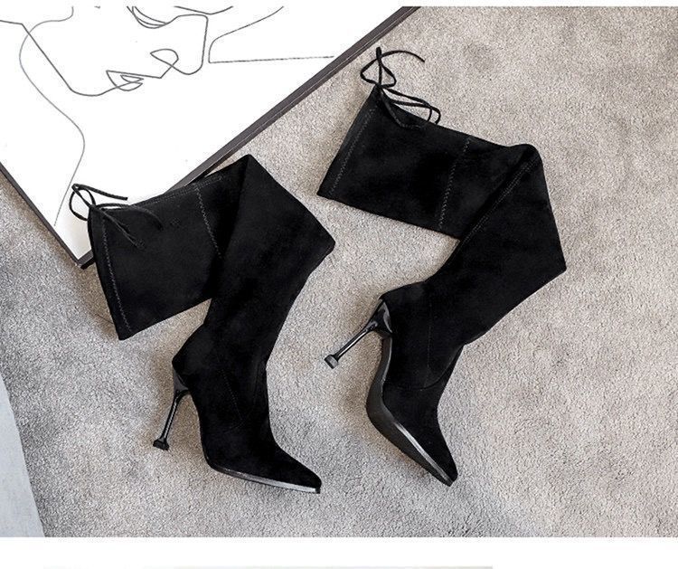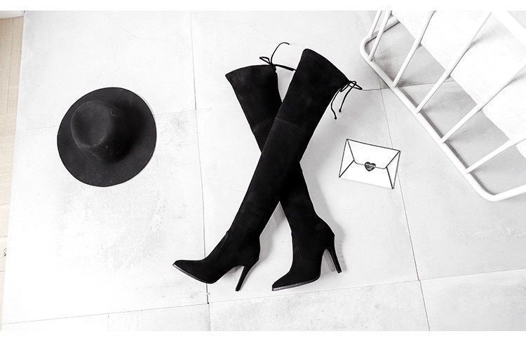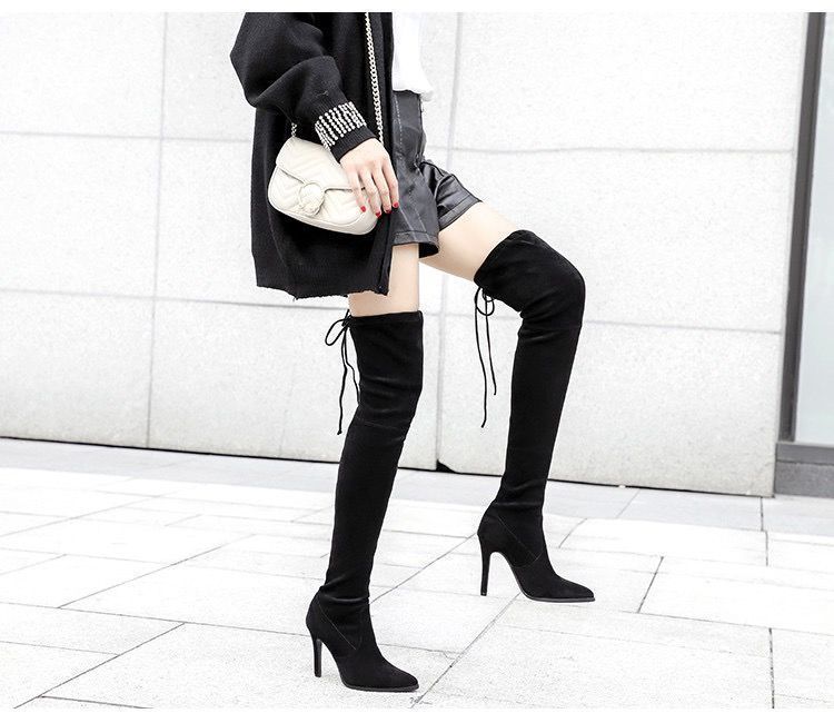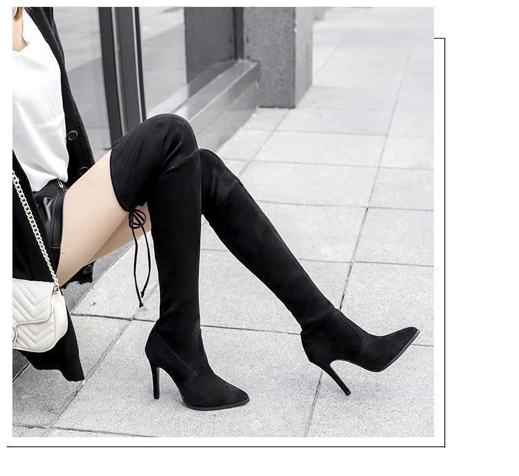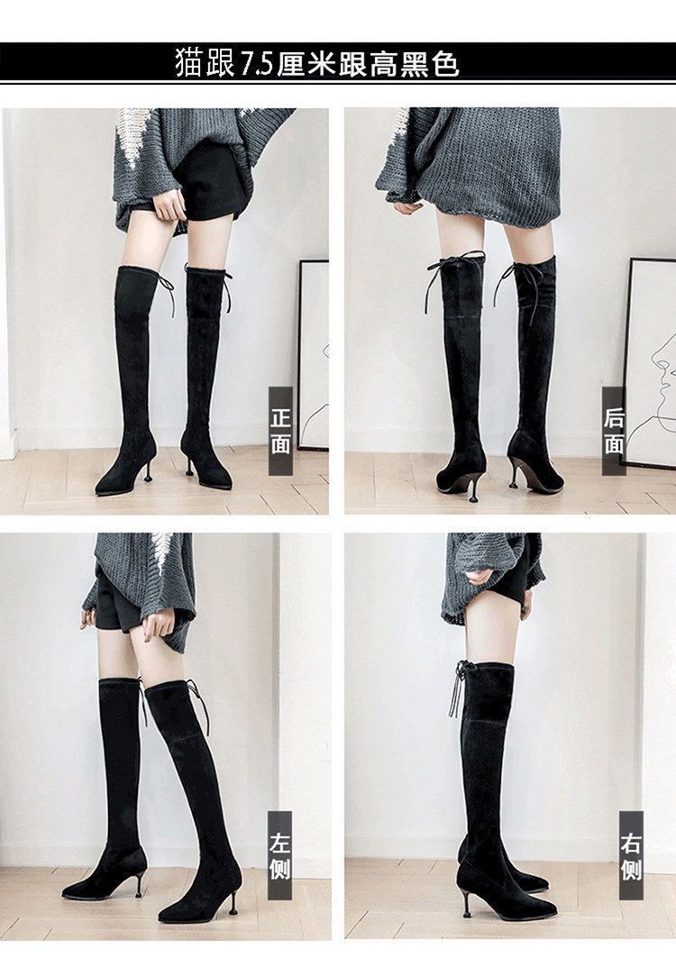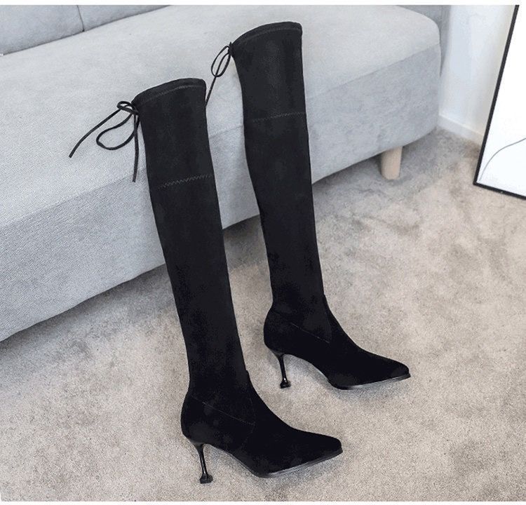 Botas Altas Elásticas para Mujer Otoño Invierno Nuevas Botas Largas Punta Afilada Adelgazantes Tacón Kitten Sobre la Rodilla Botas Largas Versátiles 2023 Tacón Alto