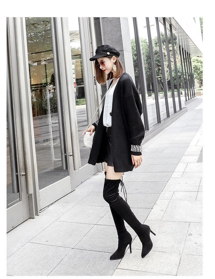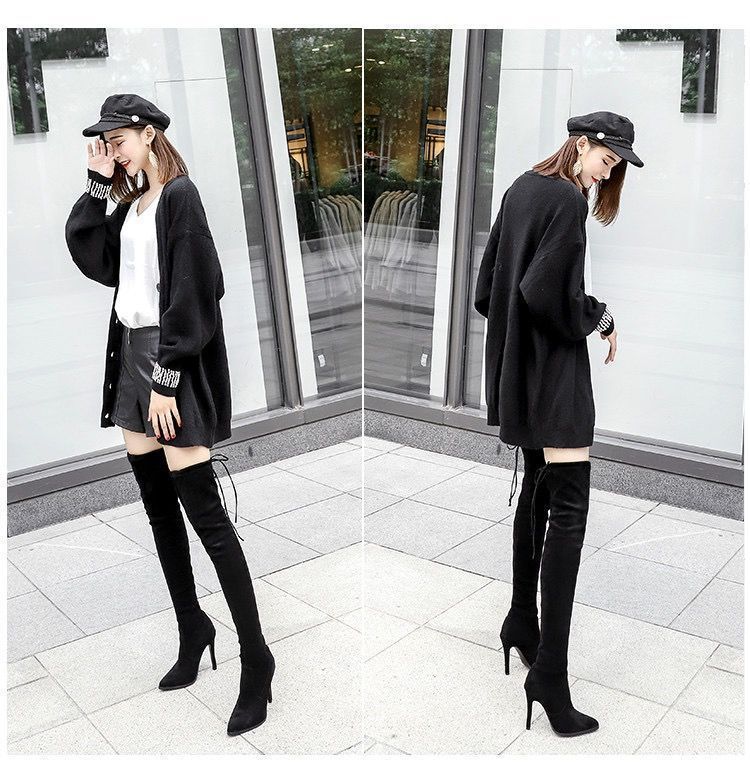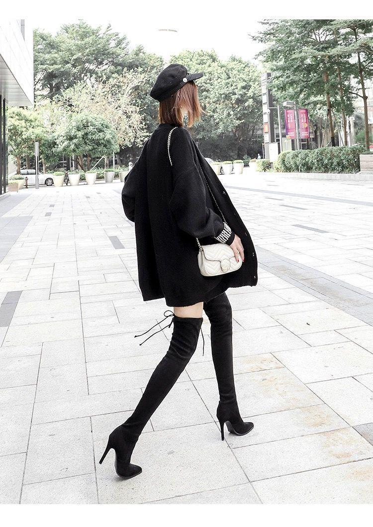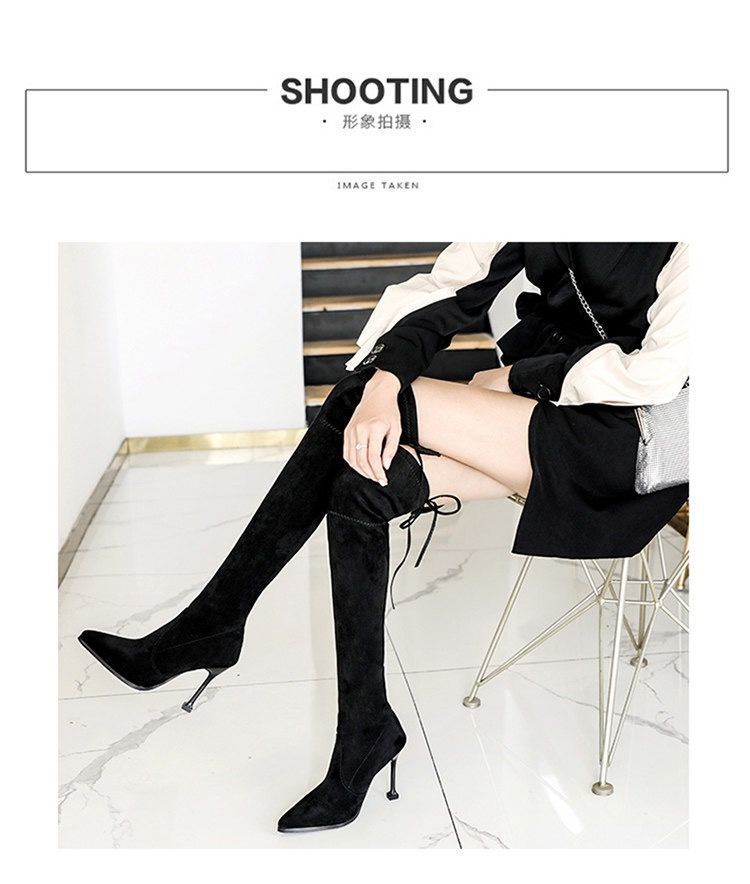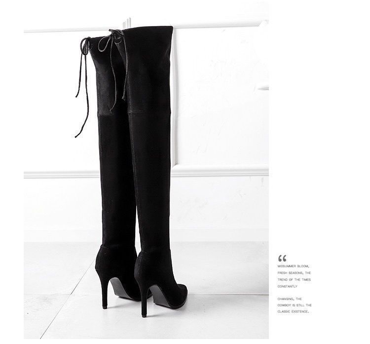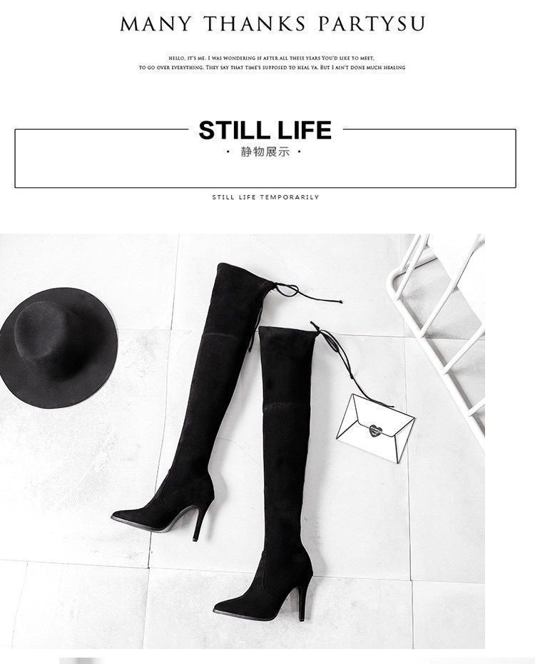 Botas Altas Elásticas para Mujer Otoño Invierno Nuevas Botas Largas Punta Afilada Adelgazantes Tacón Kitten Sobre la Rodilla Botas Largas Versátiles 2023 Tacón Alto