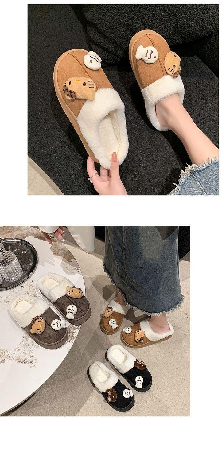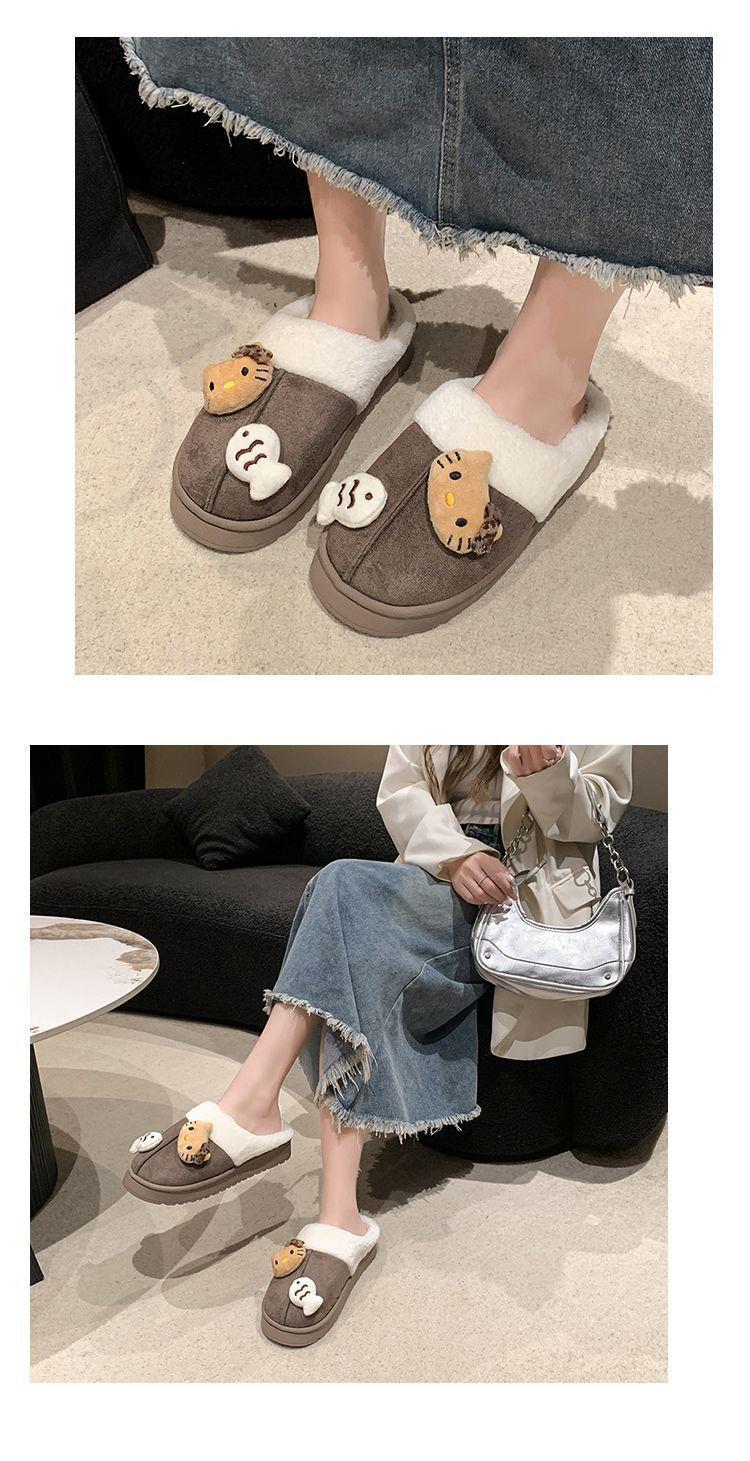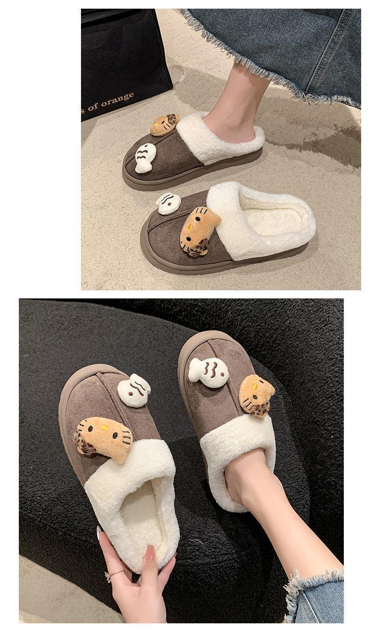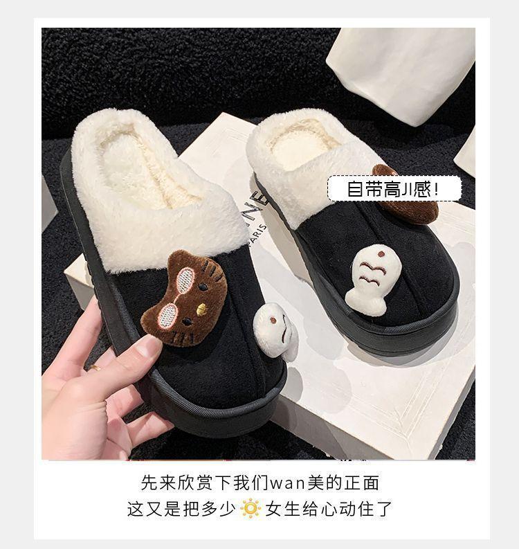 Pantuflas de Algodón Cálidas Cómodas Antideslizantes con Punta Envuelta 2025 Otoño/Invierno Nuevas Lindas Pantuflas Mullidas de Suela Gruesa con Gatito de Dibujos Animados