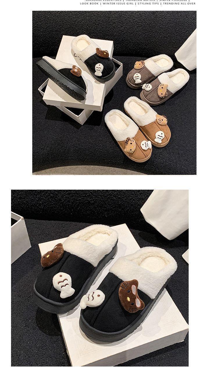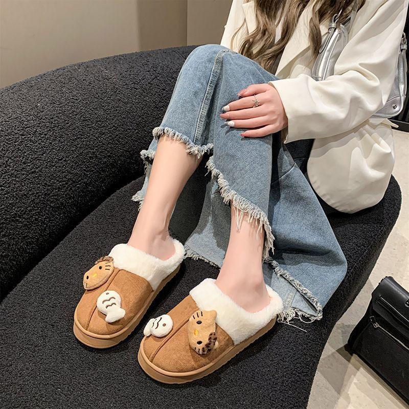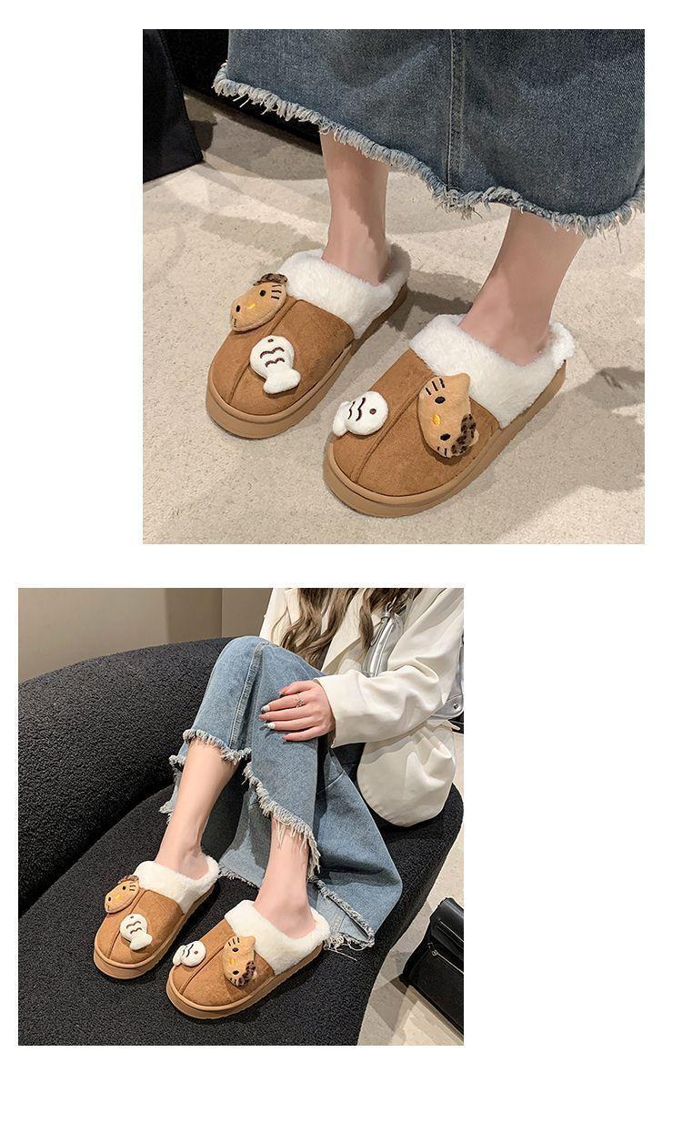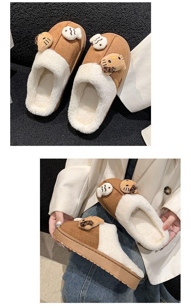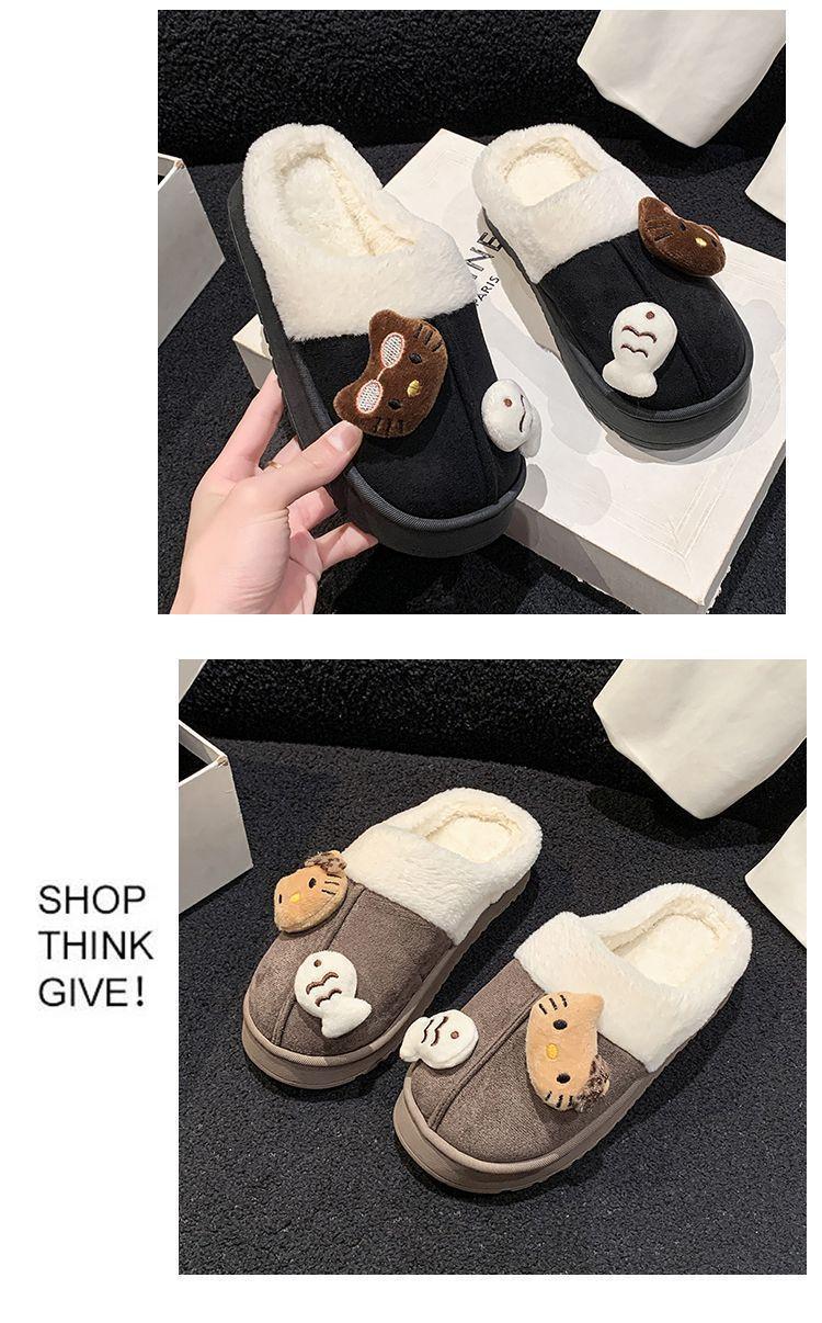 Pantuflas de Algodón Cálidas Cómodas Antideslizantes con Punta Envuelta 2025 Otoño/Invierno Nuevas Lindas Pantuflas Mullidas de Suela Gruesa con Gatito de Dibujos Animados