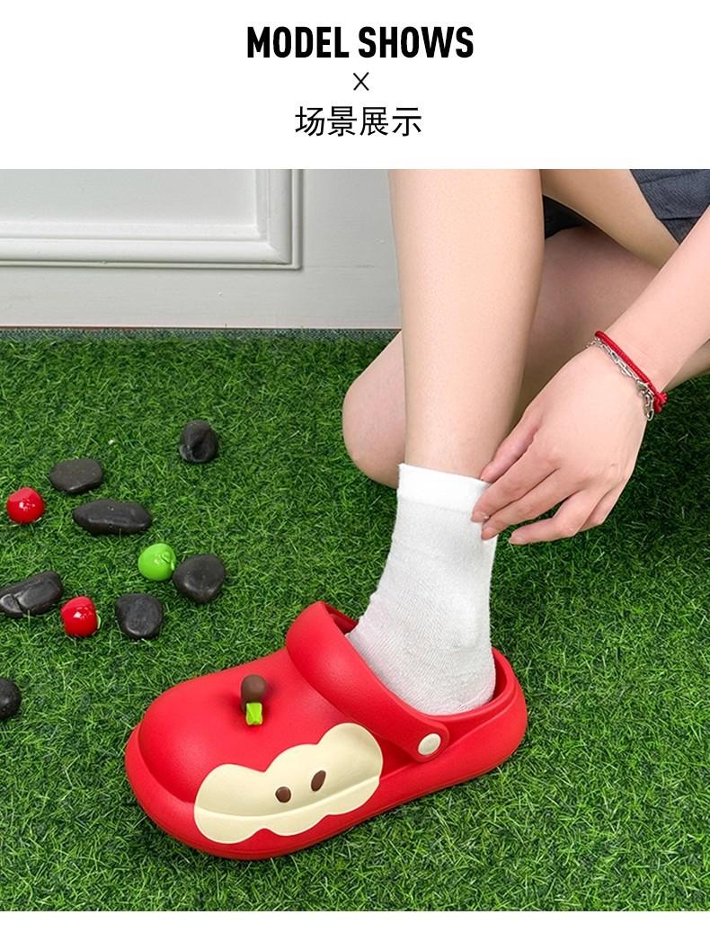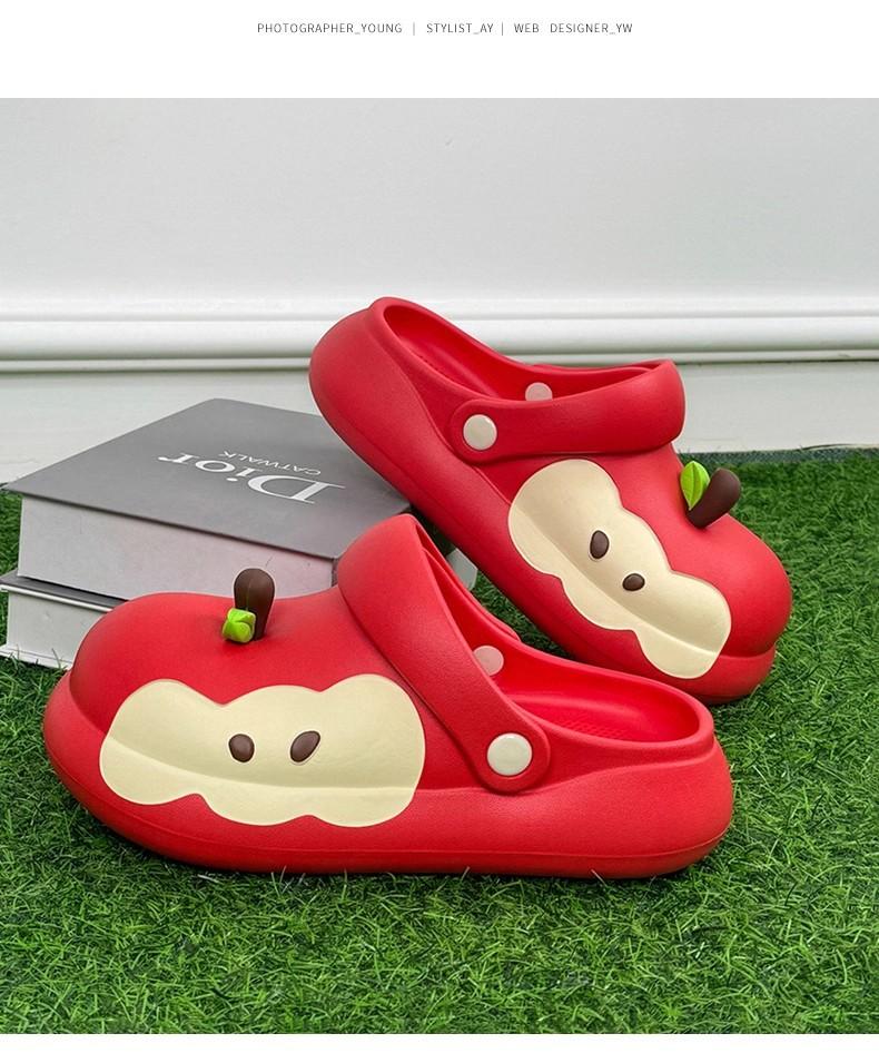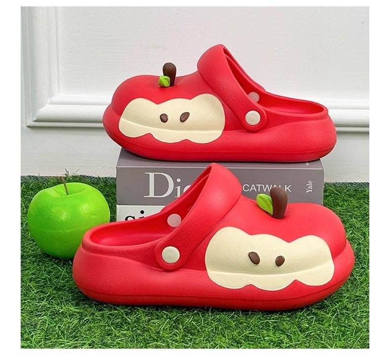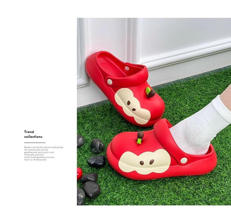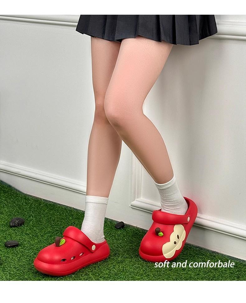 Nuevos Zapatos de Agujeros para Mujer Verano para Salir Antideslizantes Pantuflas de Punta Cerrada Suela Gruesa Resistentes al Desgaste Manzana Roja Lindo Dibujo Animado Sandalias de Playa
