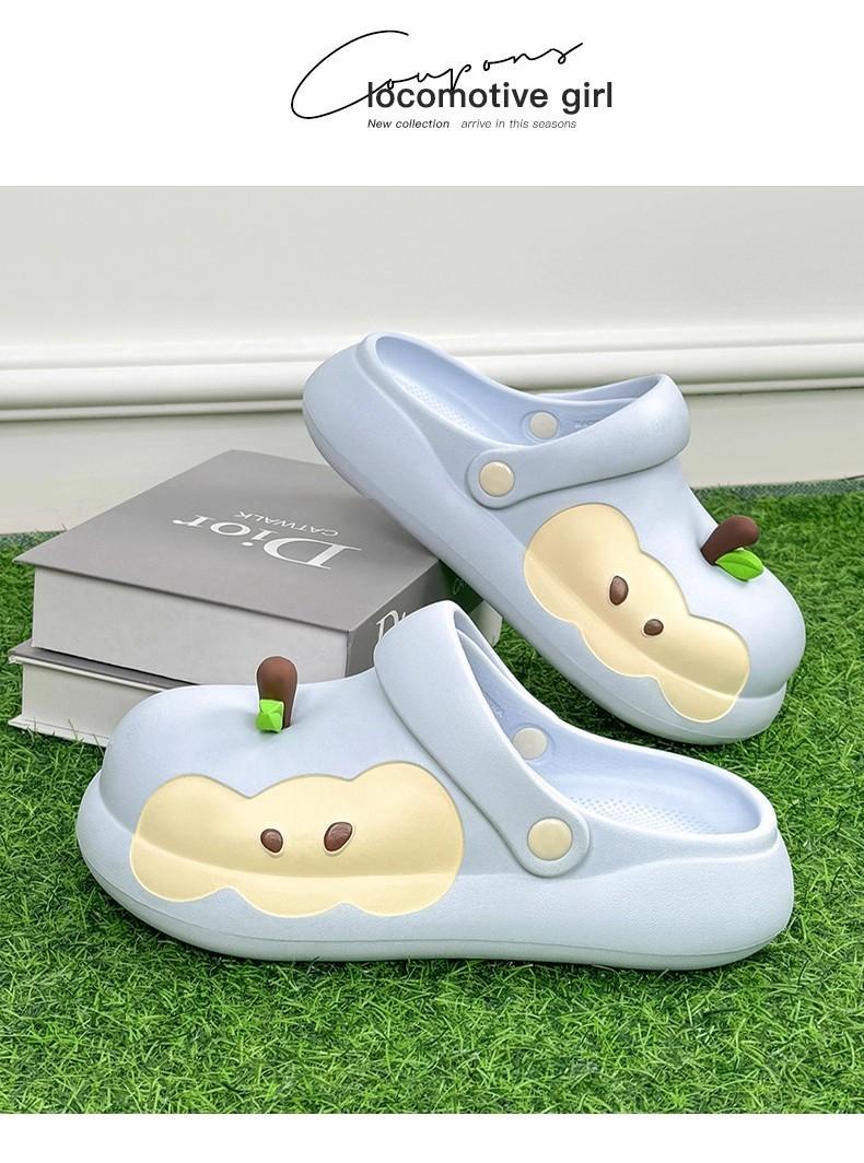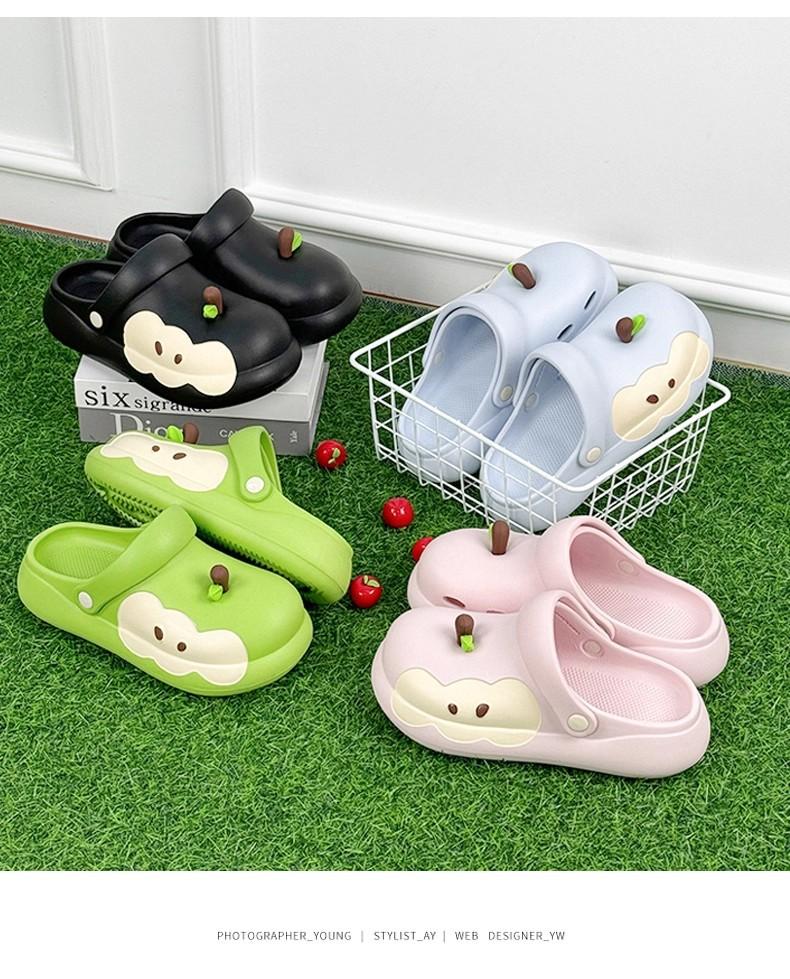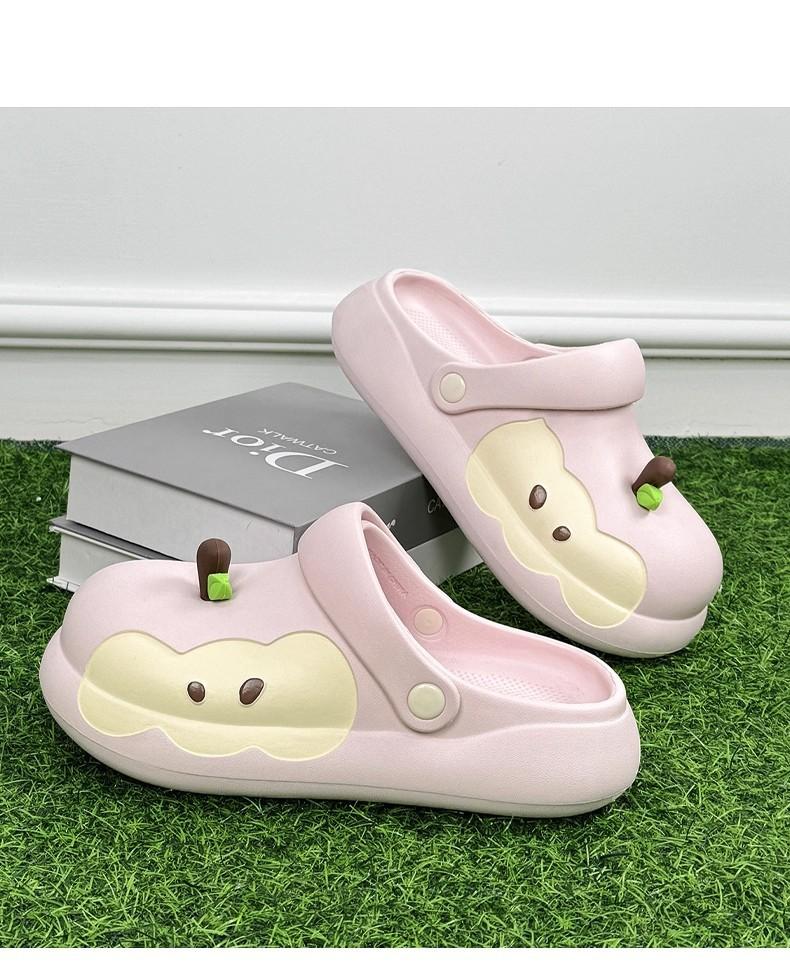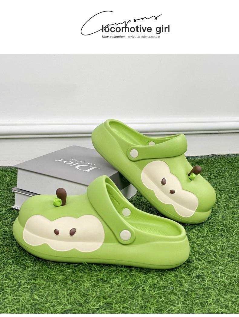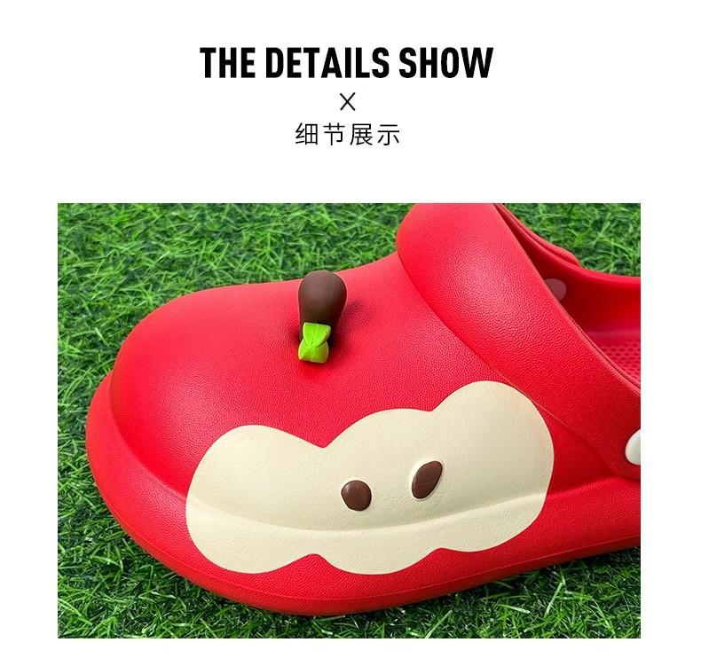 Nuevos Zapatos de Agujeros para Mujer Verano para Salir Antideslizantes Pantuflas de Punta Cerrada Suela Gruesa Resistentes al Desgaste Manzana Roja Lindo Dibujo Animado Sandalias de Playa