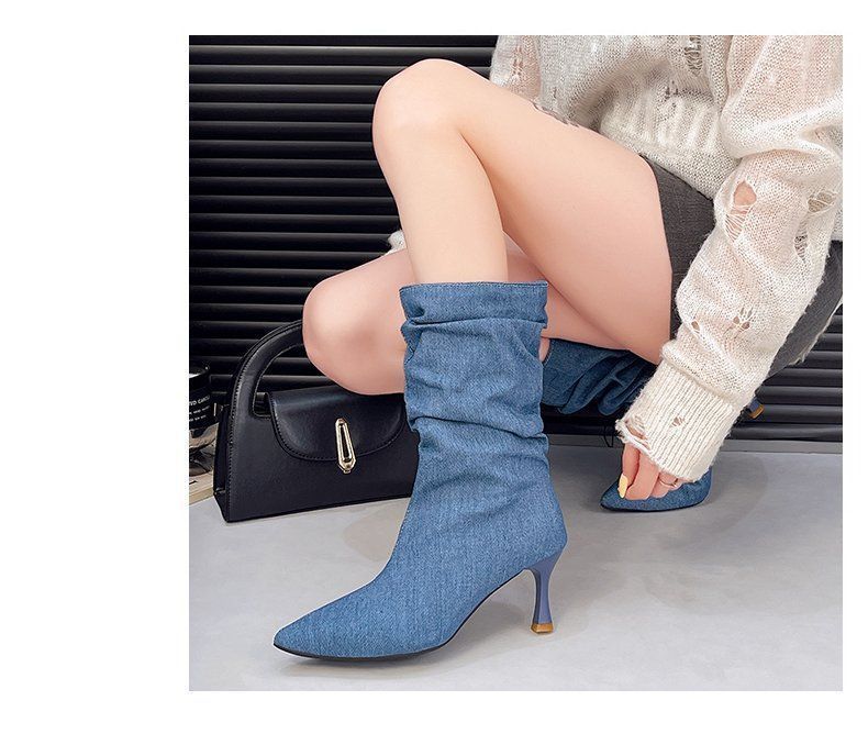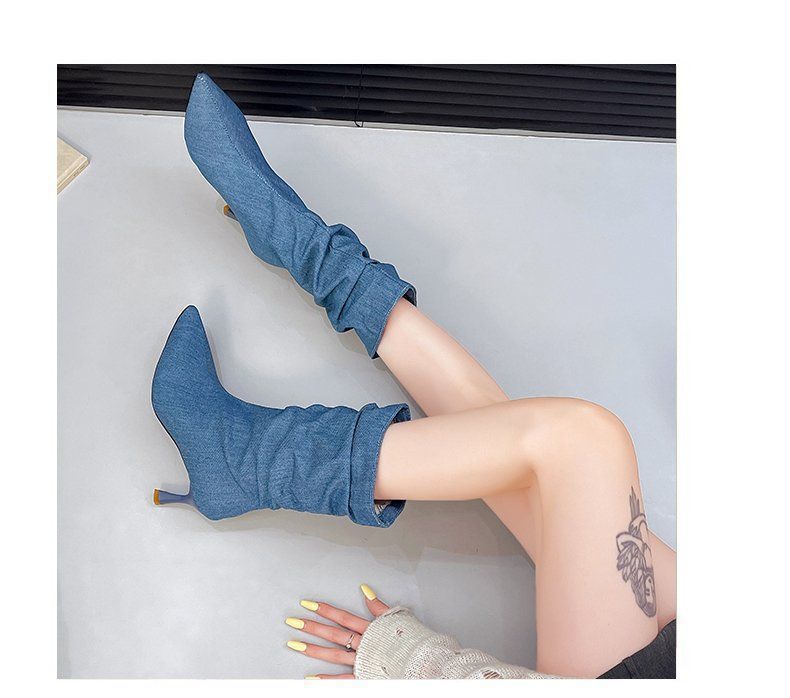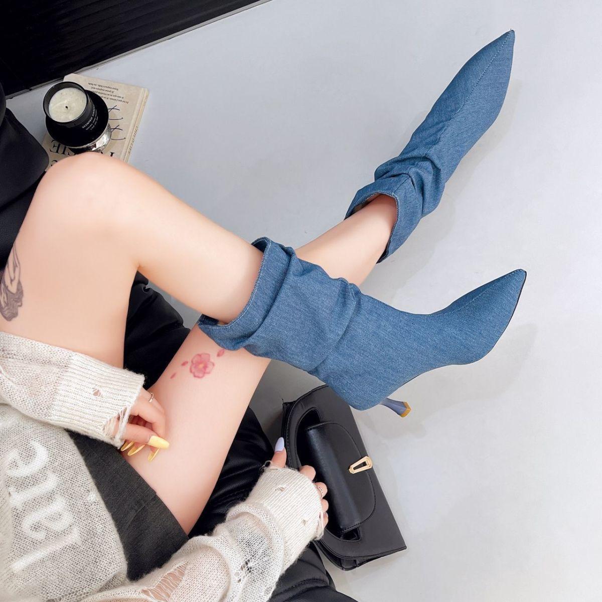 2025 Otoño/Invierno Nuevo Punta Afilada Media Caña Fruncidas Apiladas Botas Moda Mujer Versátil Cómodas Tacón de Aguja Botas Martin de Mujer