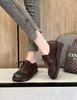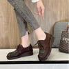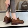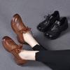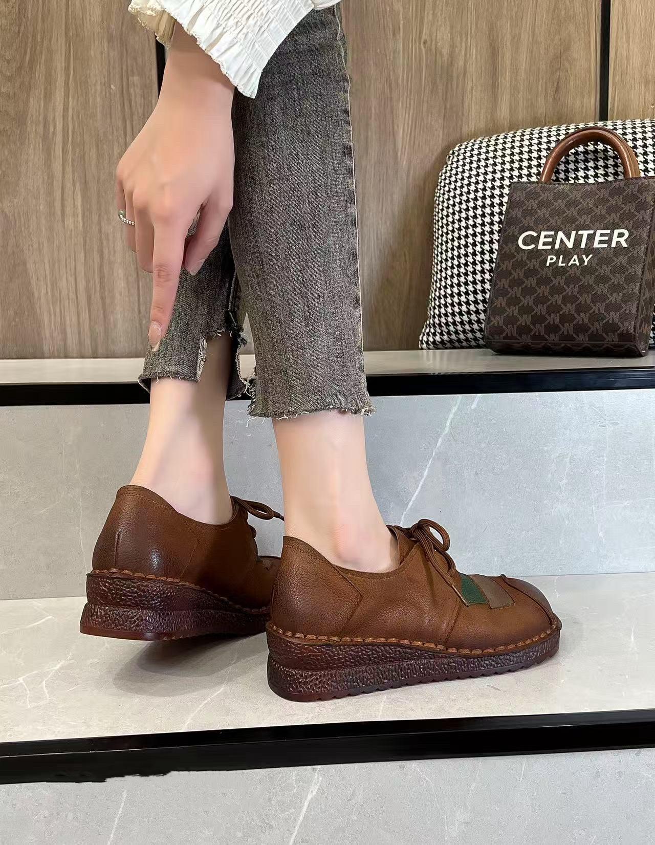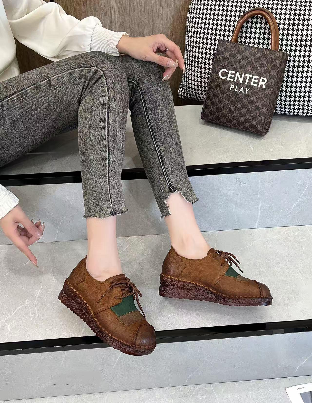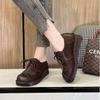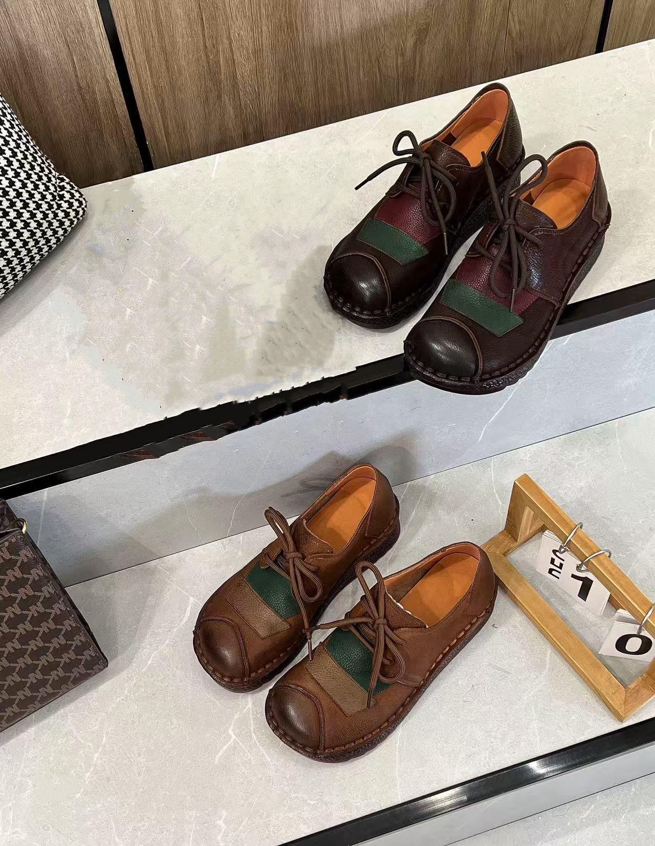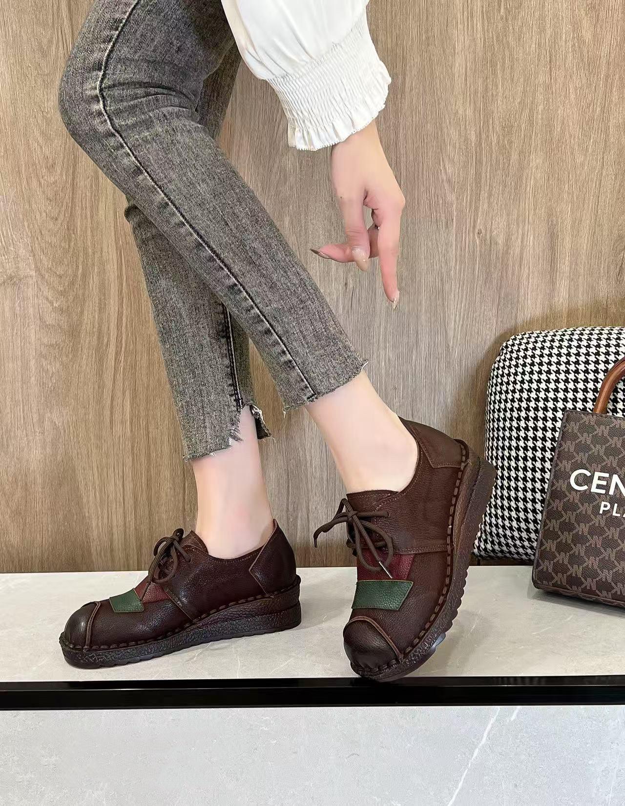 Longlin 2025 Otoño Nuevos Zapatos Casuales de Piel de Vacuno de Capa Superior Punta Redonda Estilo Retro Bloque de Color con Cordones Zapatos Casuales de Mujer