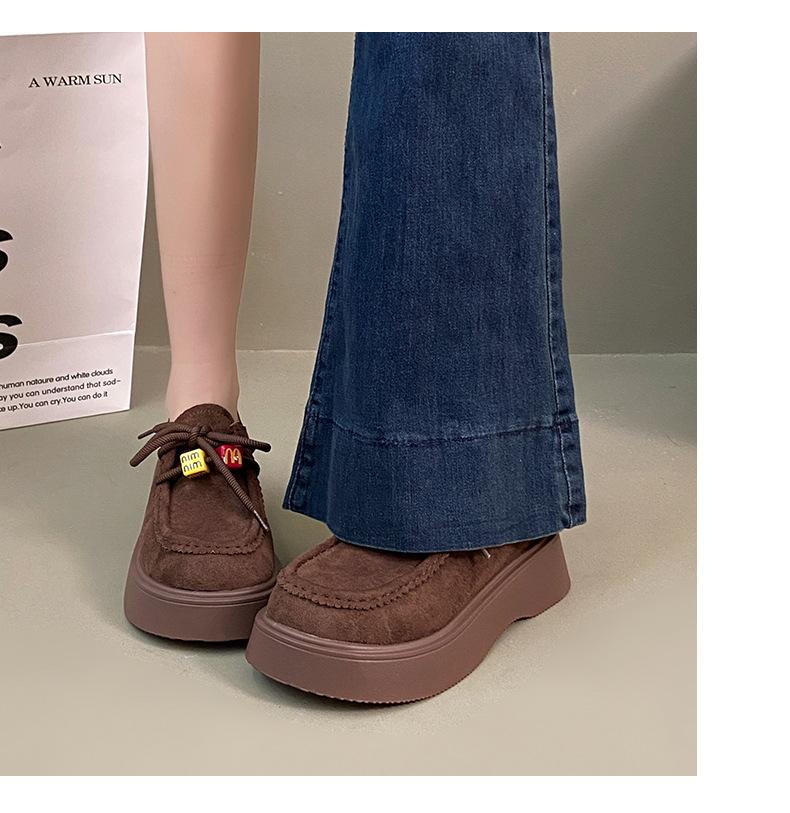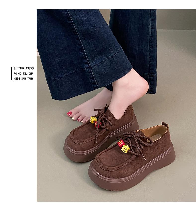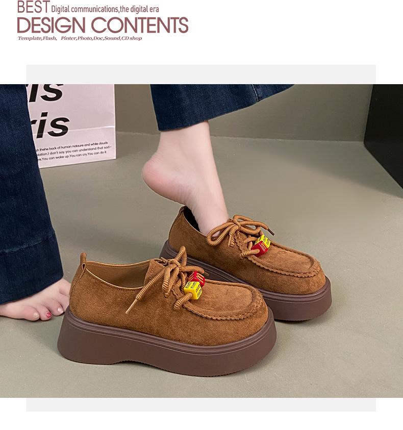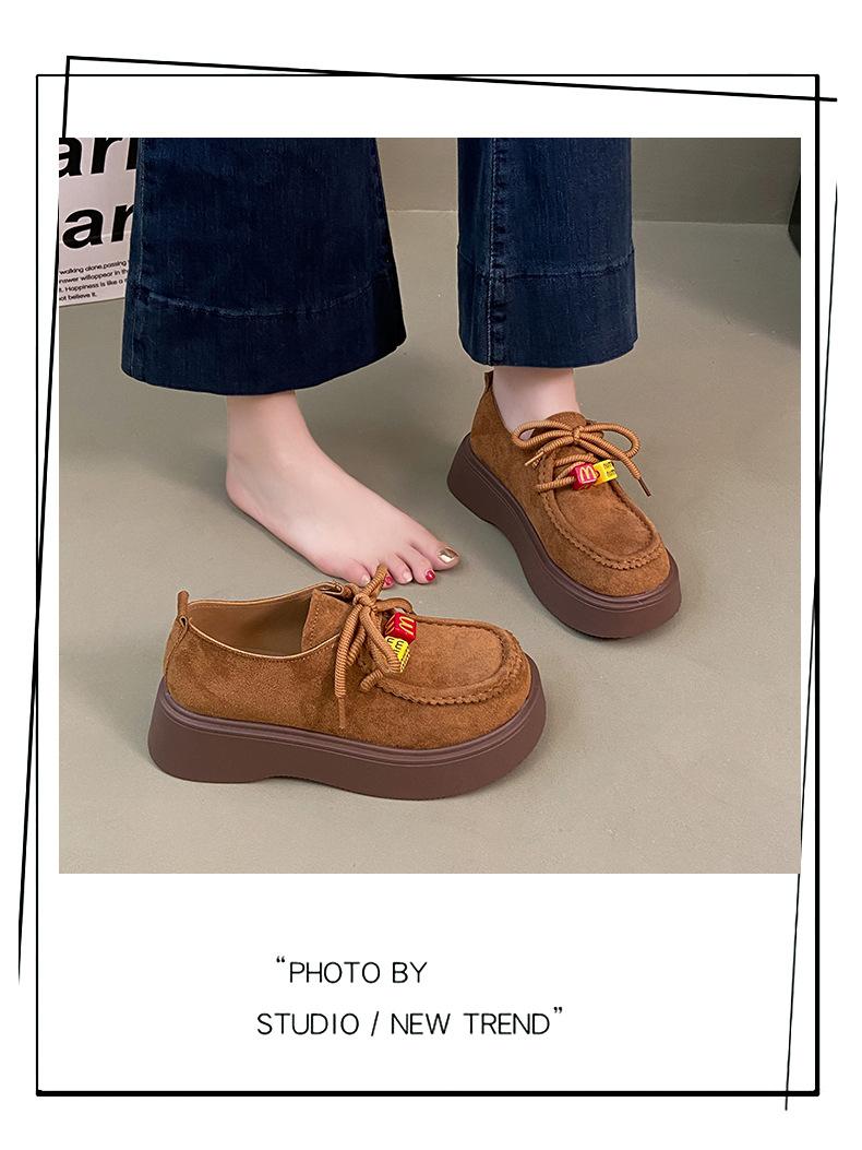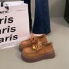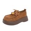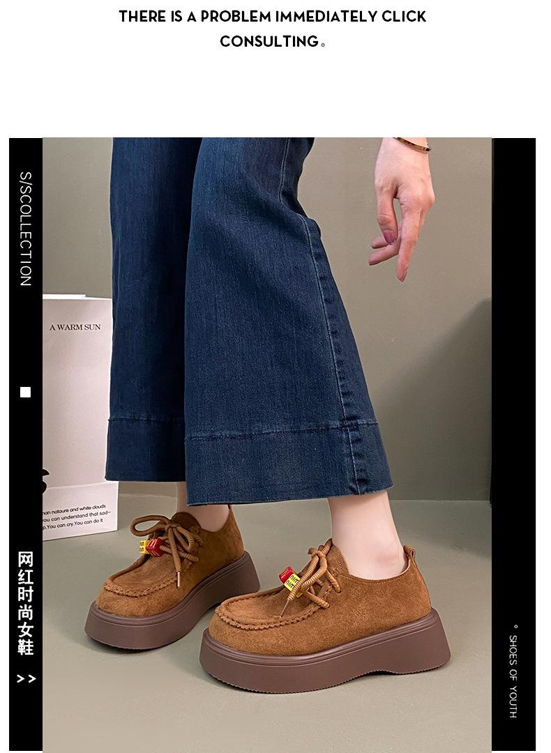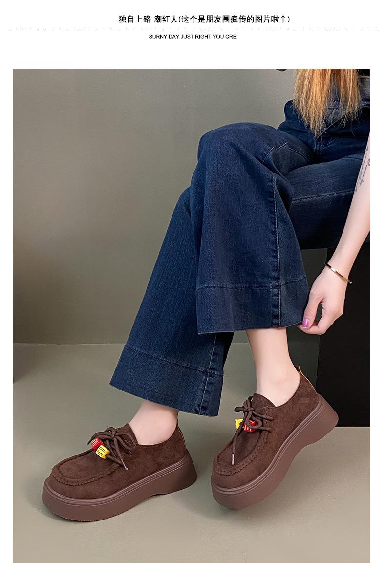 Mocasines de Plataforma Gruesa con Cordones para Mujer 2025 Nuevo Primavera y Otoño Retro Versátil Pequeño Aumento de Altura Birken Zapatos Individuales