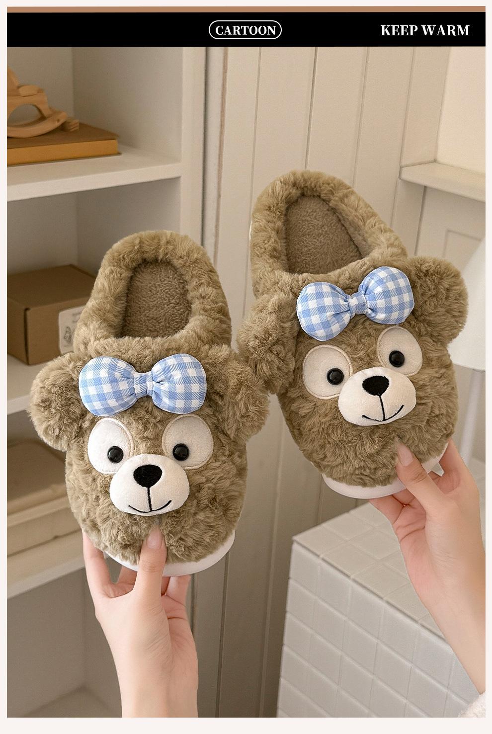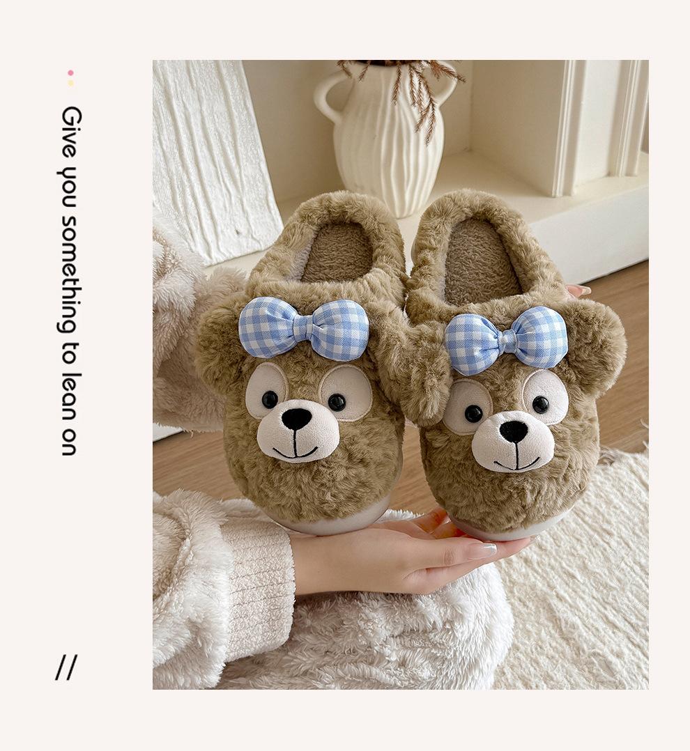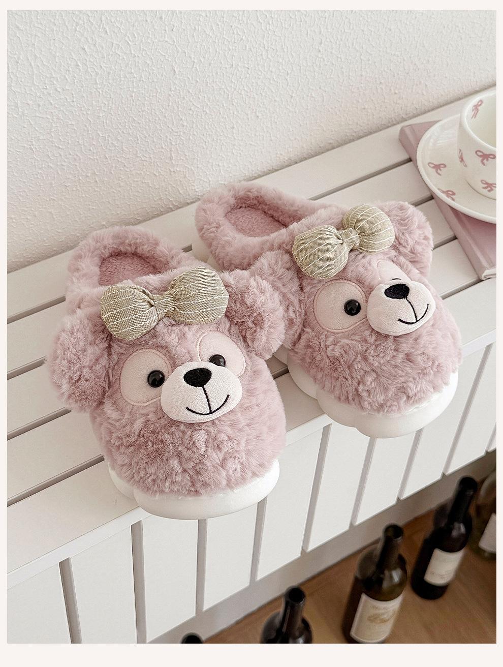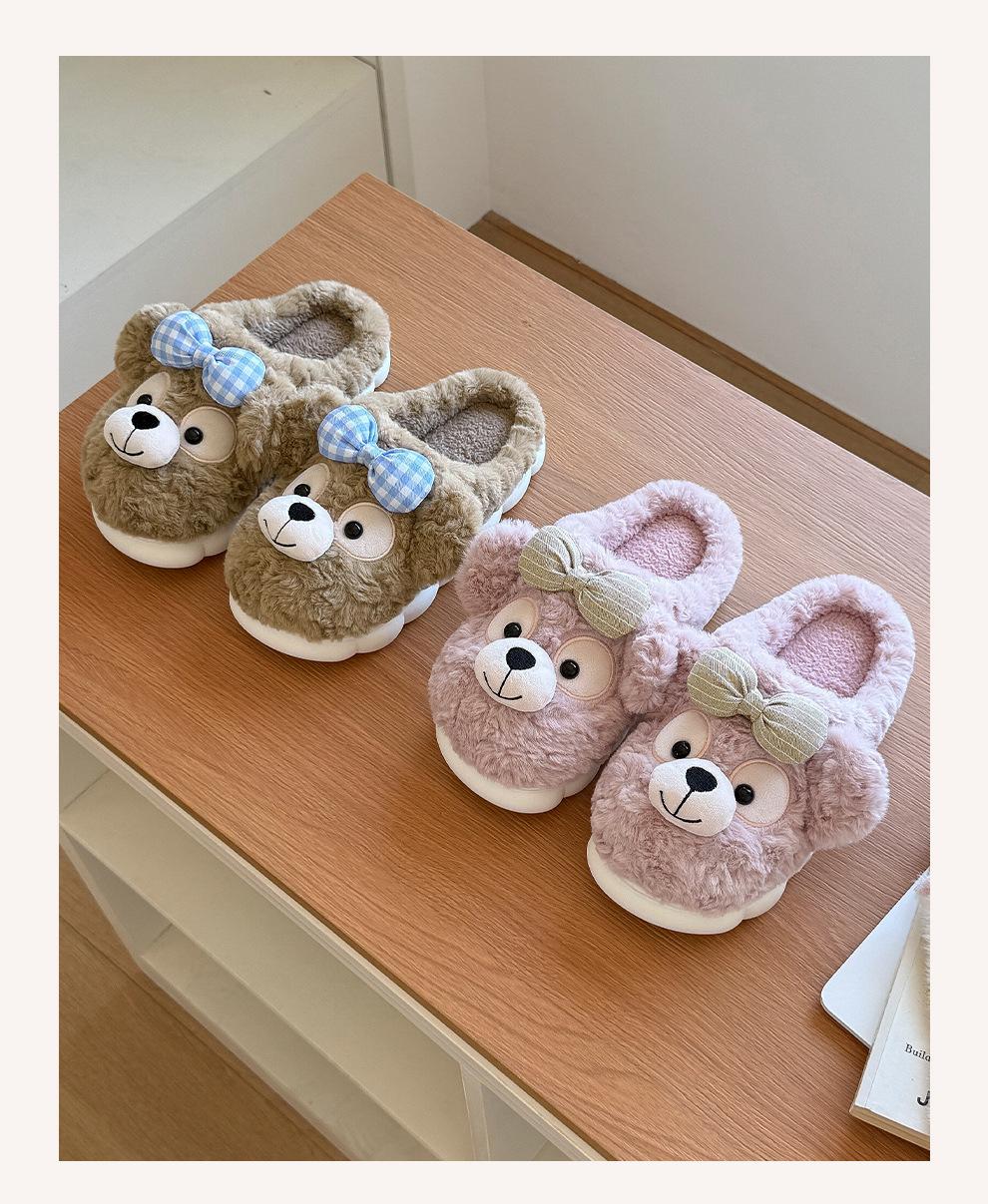 Pantuflas de Algodón de Oso con Lazo para Mujer Otoño Invierno Hogar Dormitorio Antideslizantes Cálidas Felpa Pantuflas de Algodón para Niños Venta al Mayoreo para Mujer