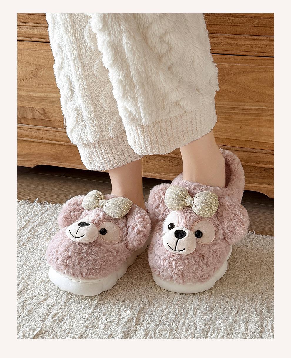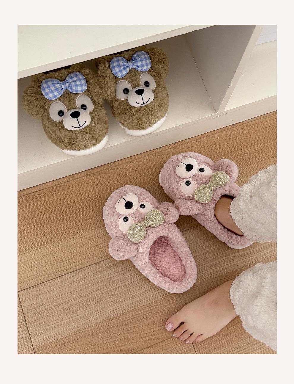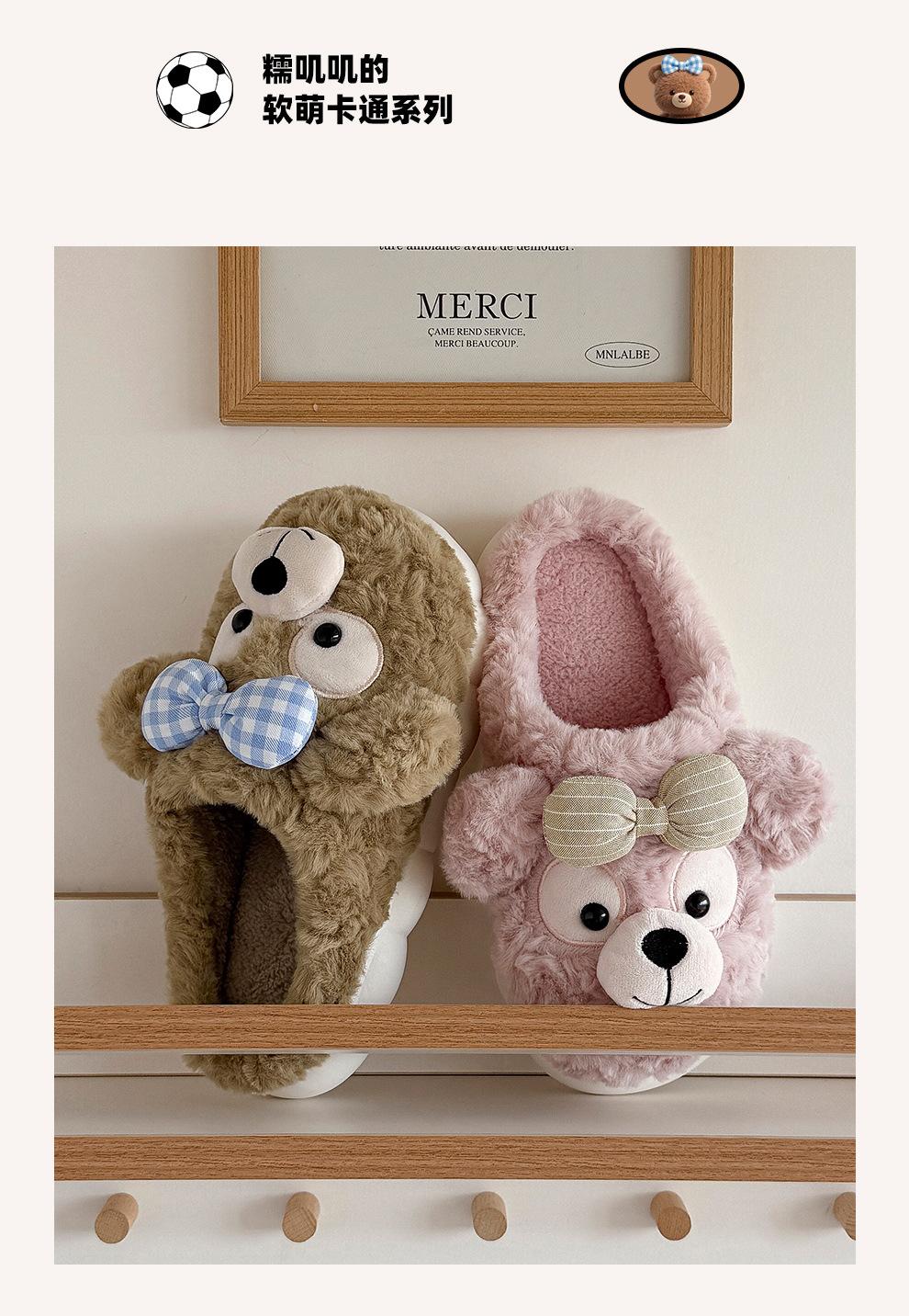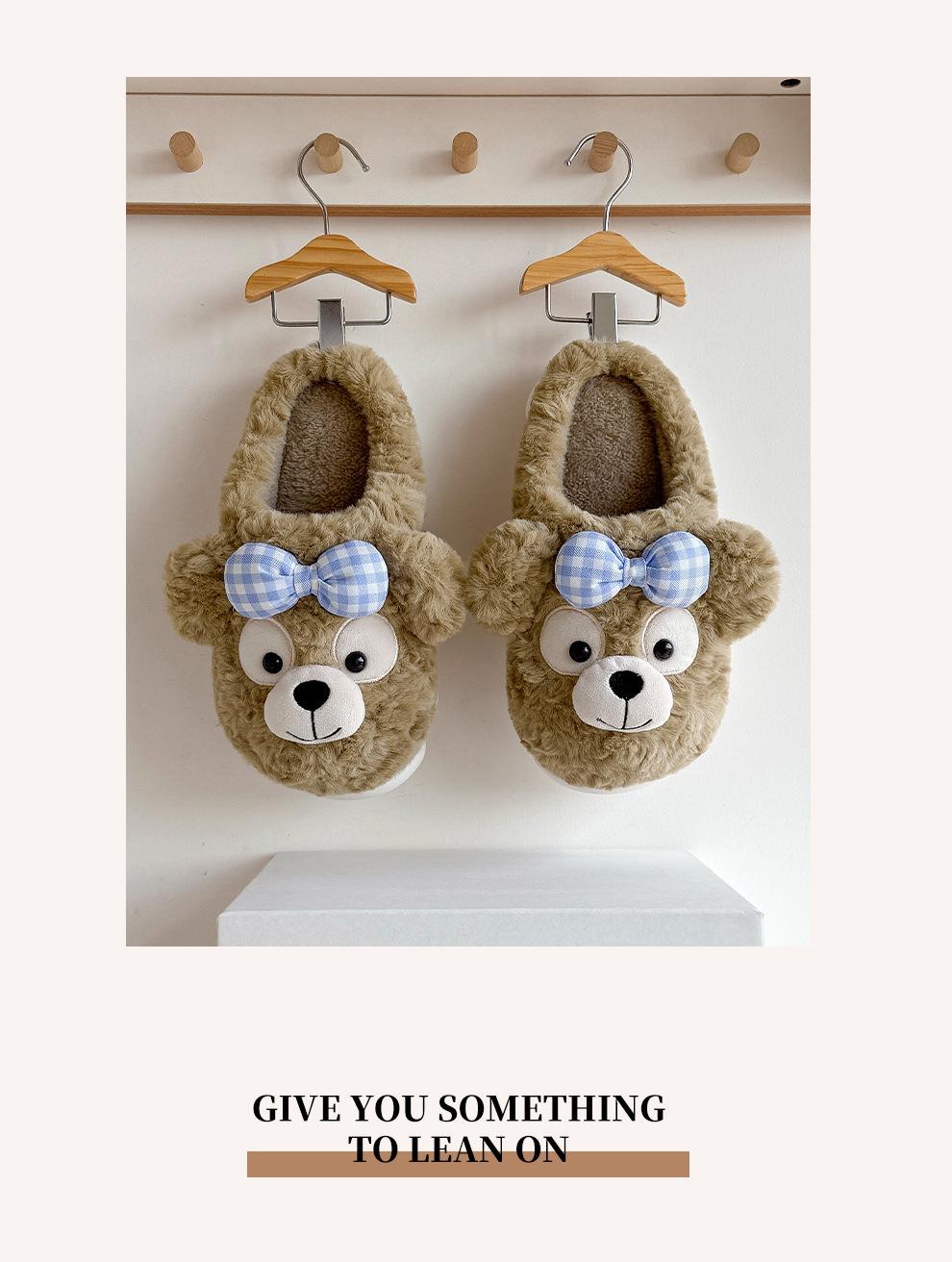 Pantuflas de Algodón de Oso con Lazo para Mujer Otoño Invierno Hogar Dormitorio Antideslizantes Cálidas Felpa Pantuflas de Algodón para Niños Venta al Mayoreo para Mujer