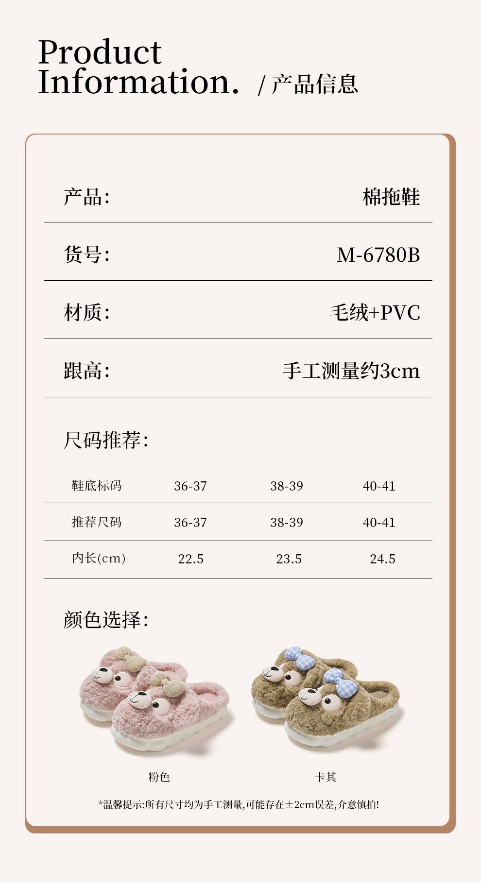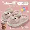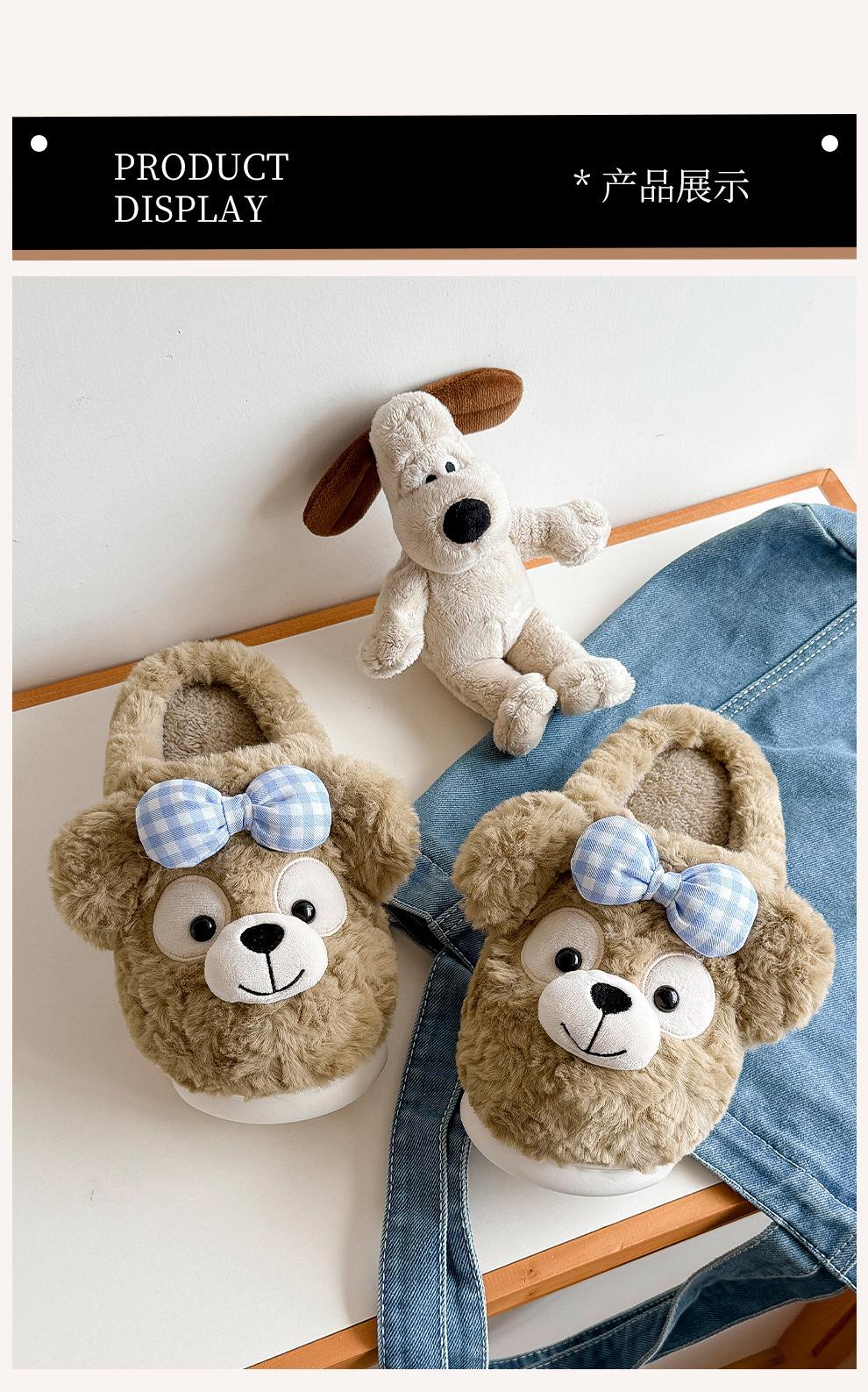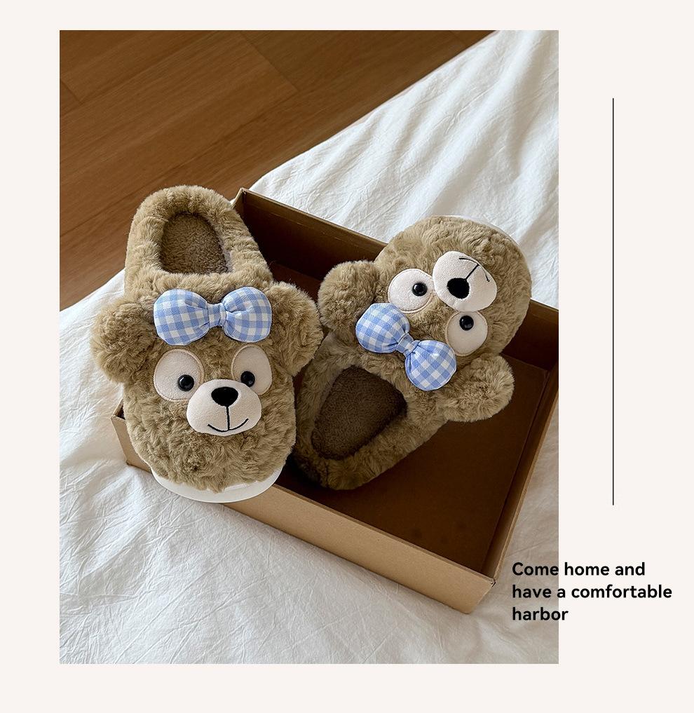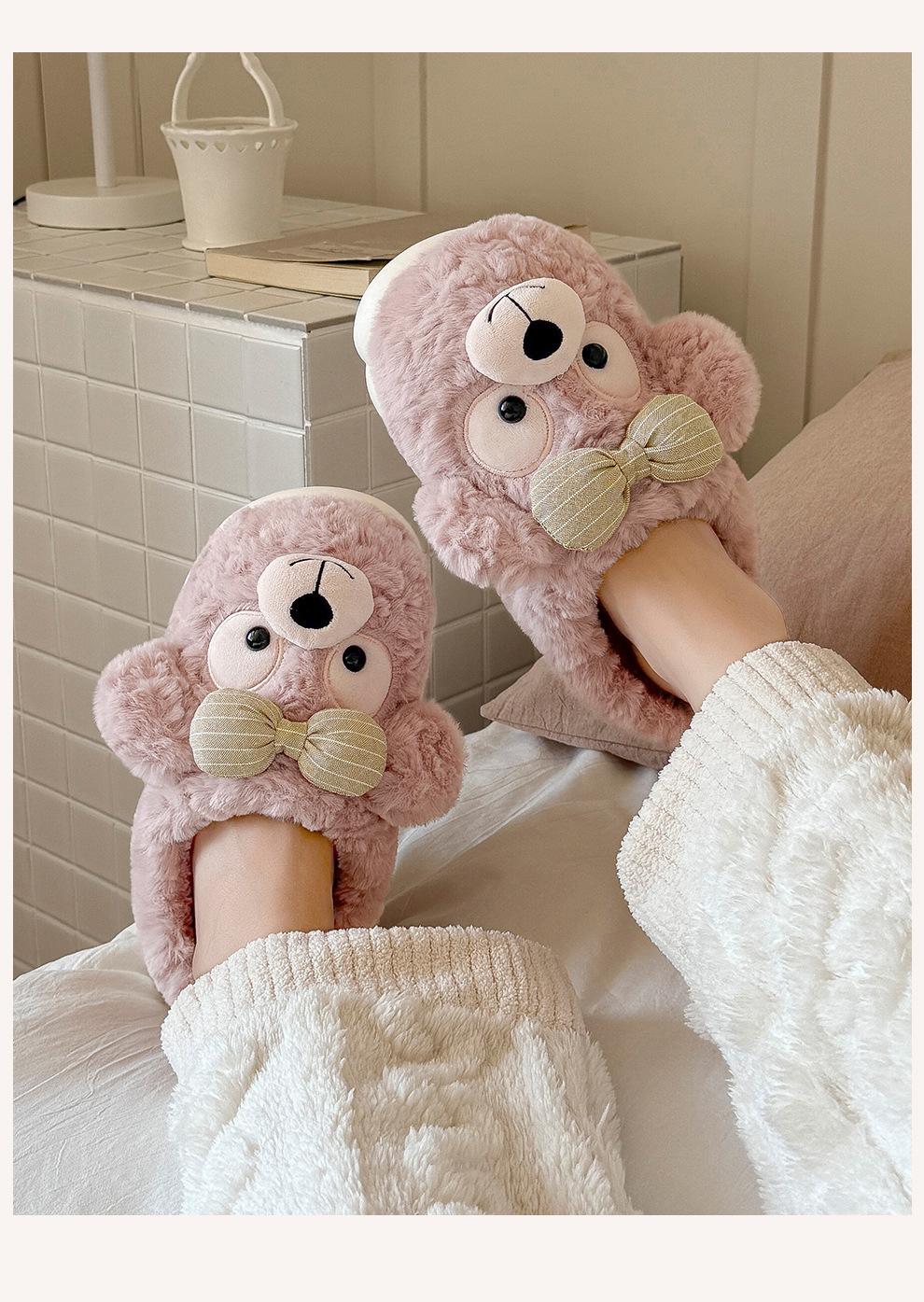 Pantuflas de Algodón de Oso con Lazo para Mujer Otoño Invierno Hogar Dormitorio Antideslizantes Cálidas Felpa Pantuflas de Algodón para Niños Venta al Mayoreo para Mujer