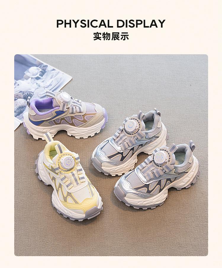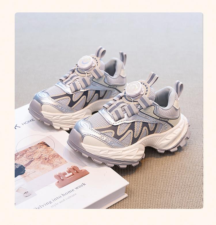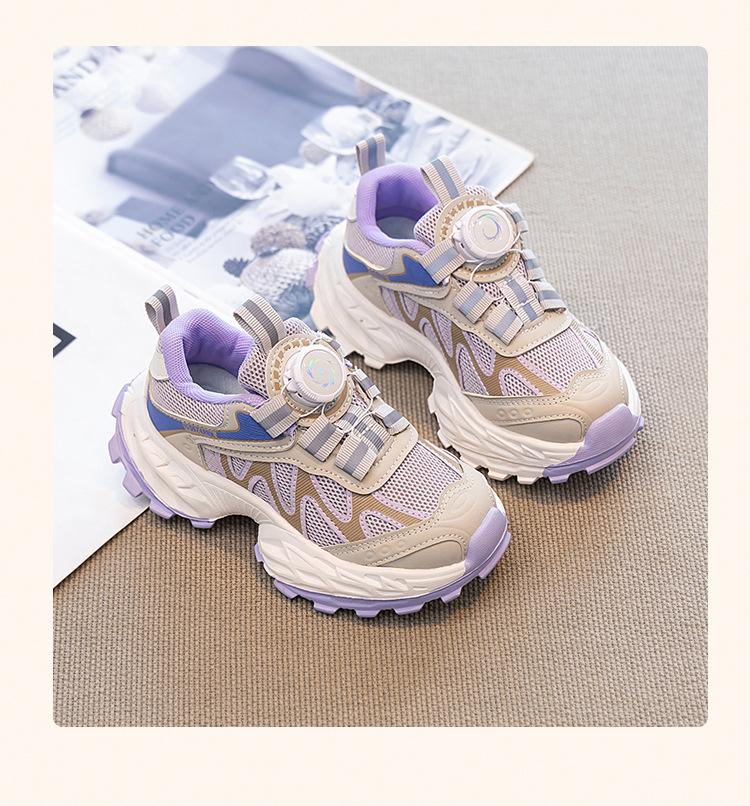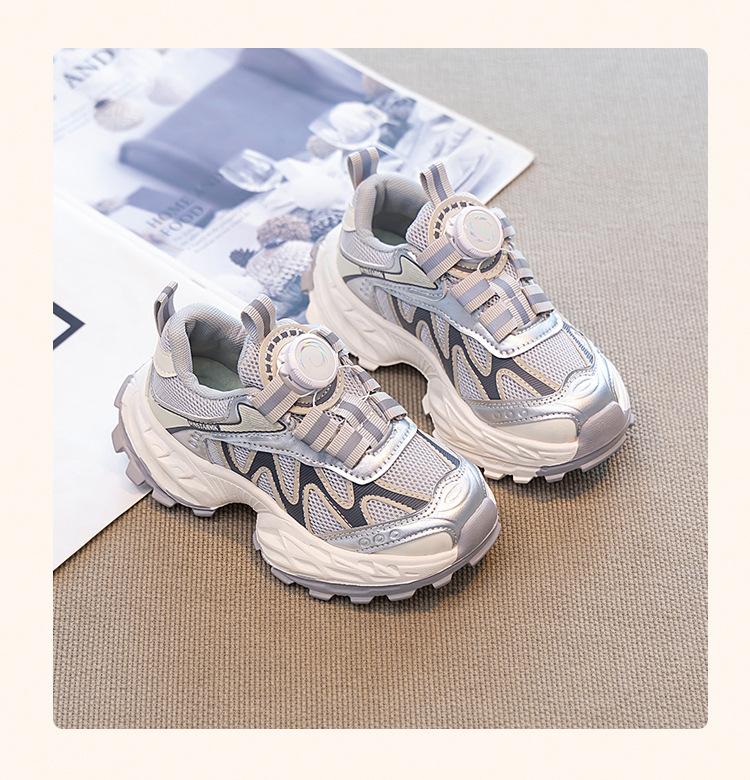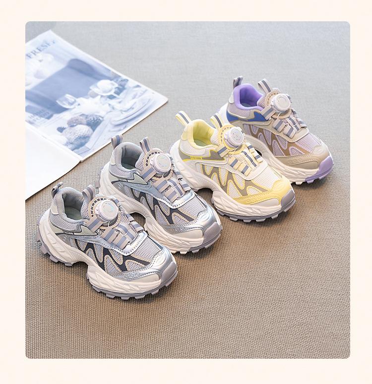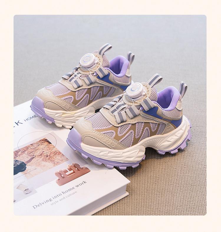 Zapatos de niño zapatos de niña 2025 otoño nuevos zapatos deportivos de malla transpirable para niños medianos y grandes zapatos de niña con hebilla giratoria
