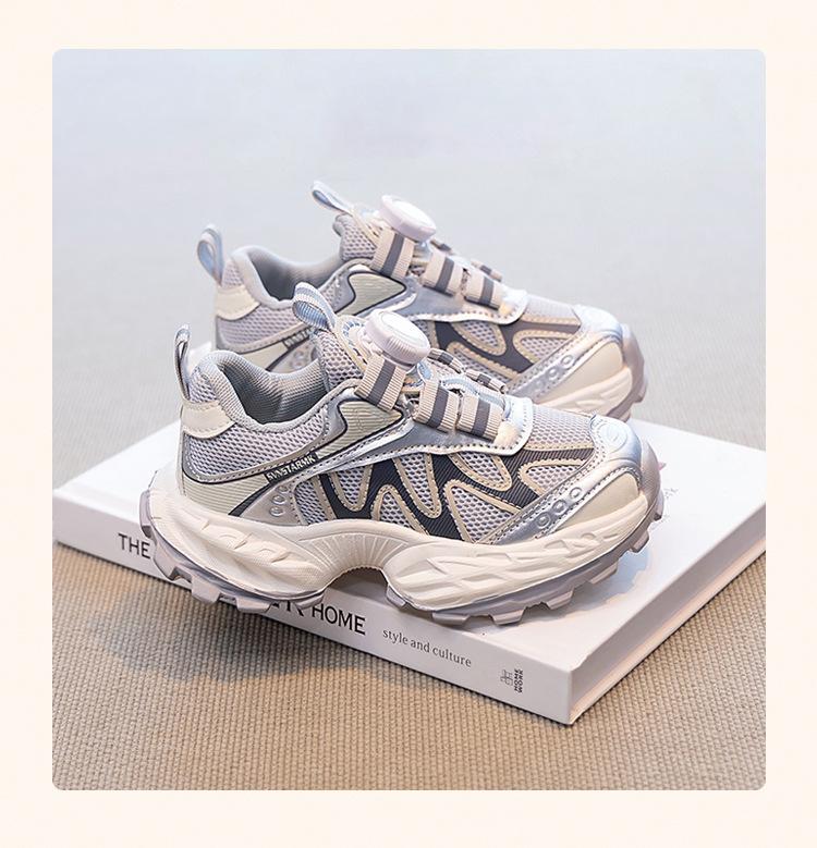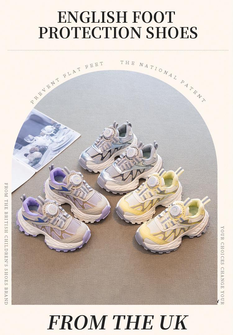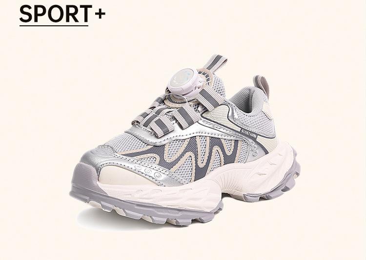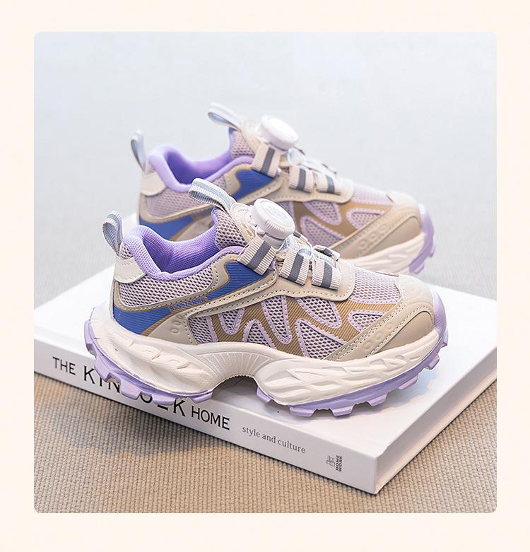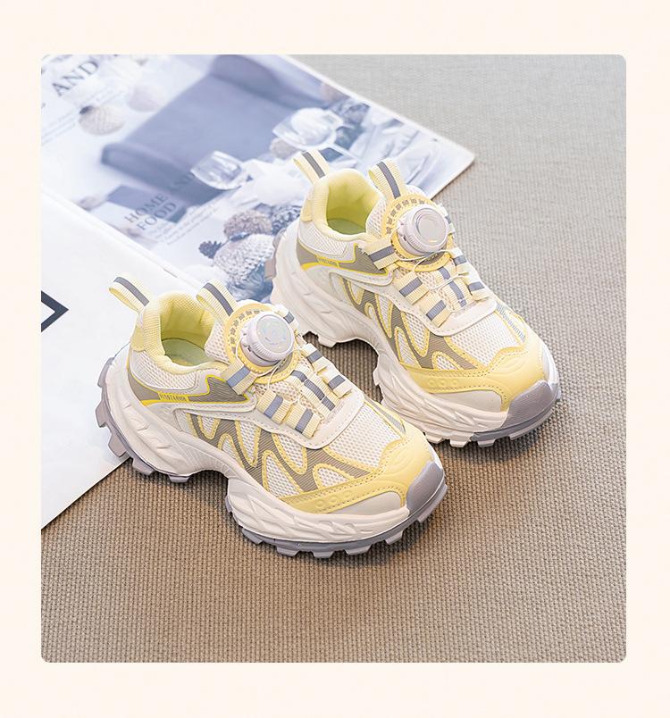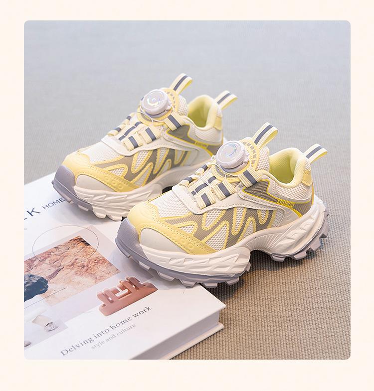 Zapatos de niño zapatos de niña 2025 otoño nuevos zapatos deportivos de malla transpirable para niños medianos y grandes zapatos de niña con hebilla giratoria