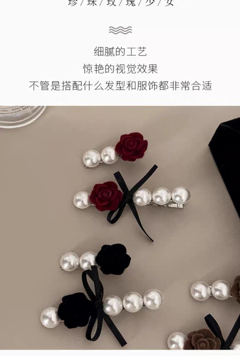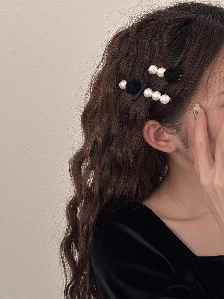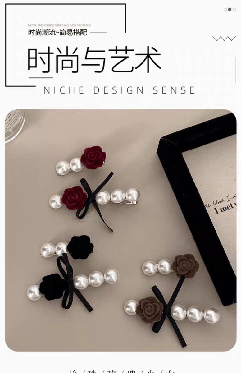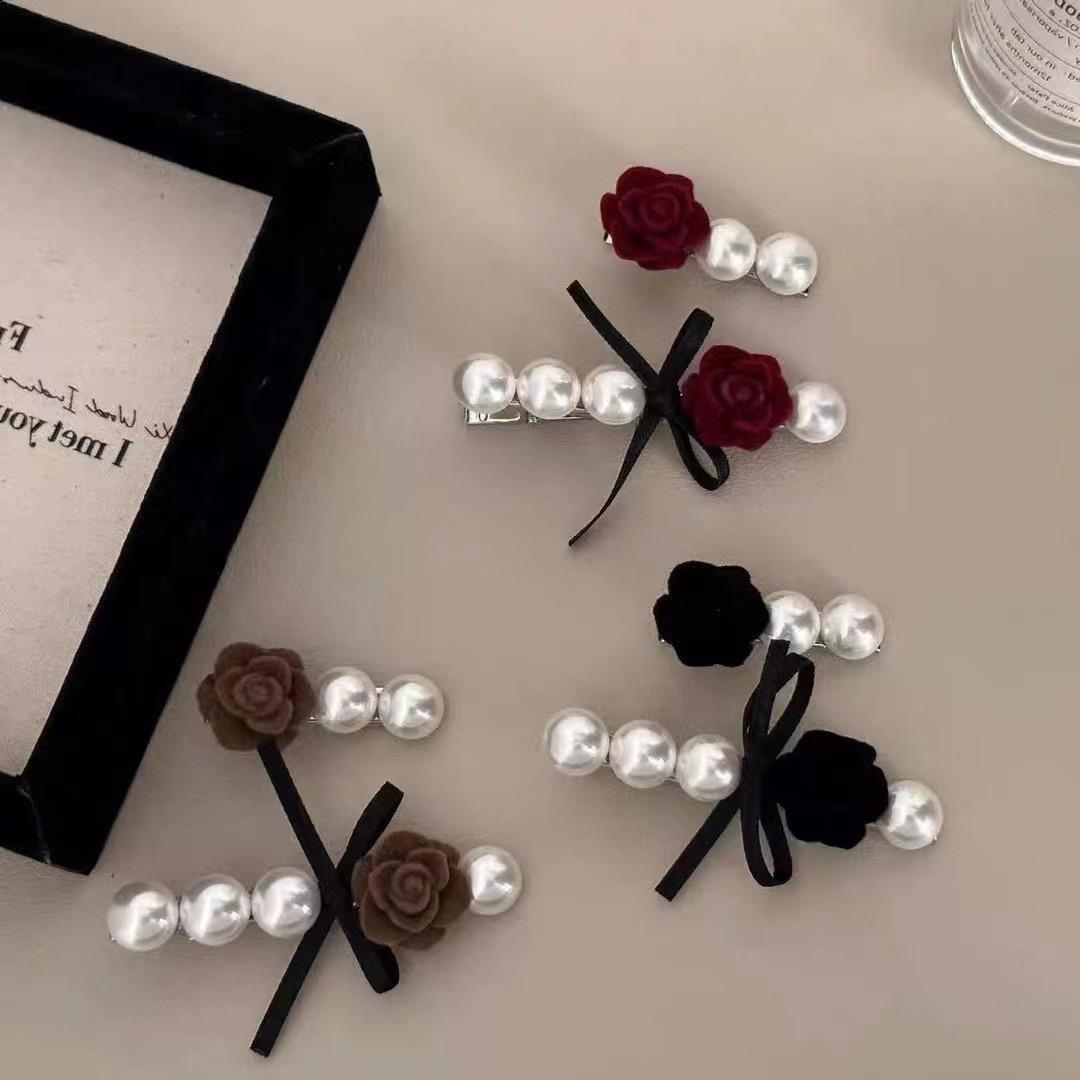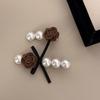 Horquilla retro francesa de perlas pequeñas y rosas, clip lateral para flequillo, clip de una sola palabra, temperamento femenino, moda, artefacto para cabello suelto, horquilla