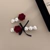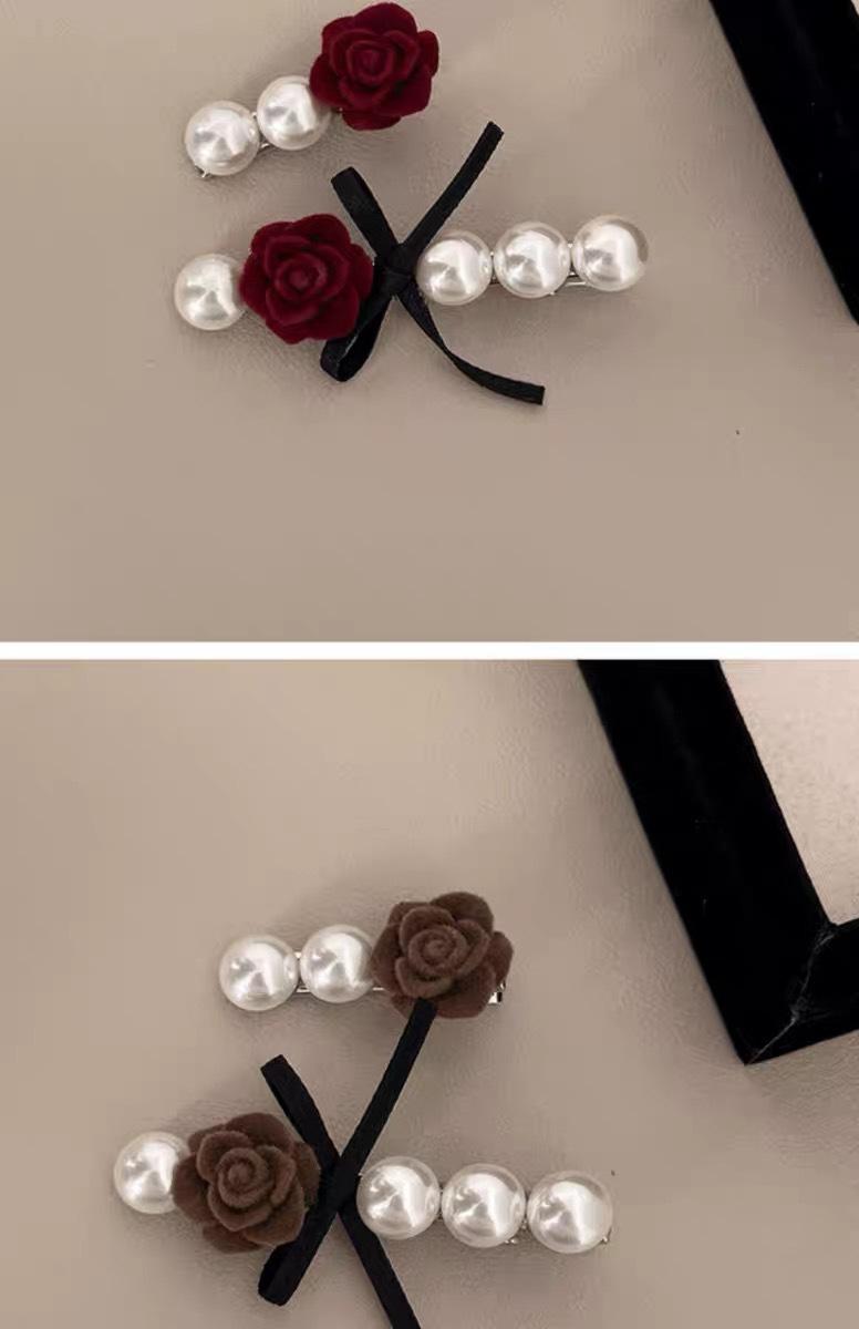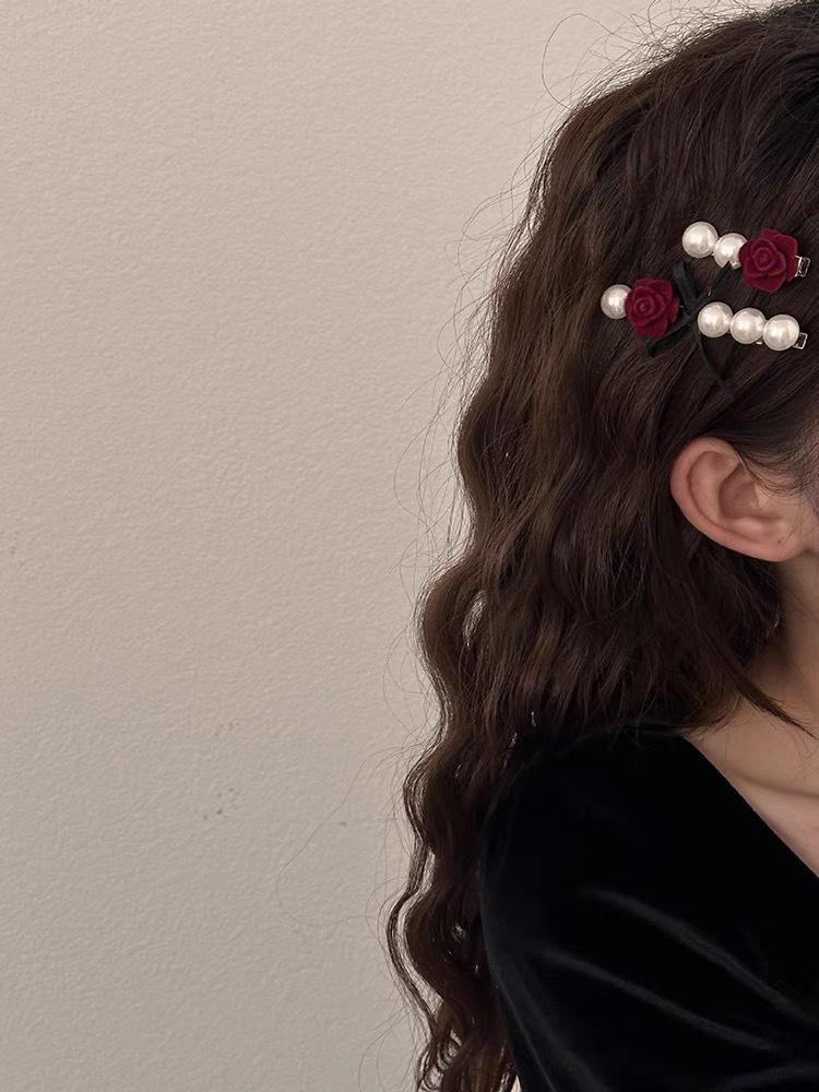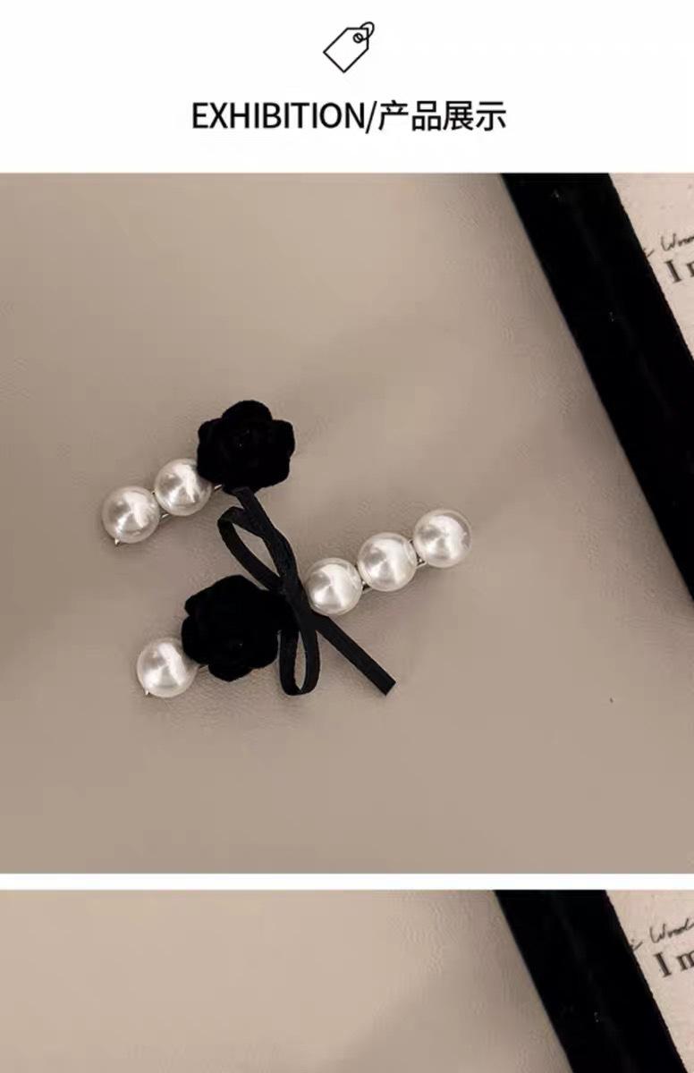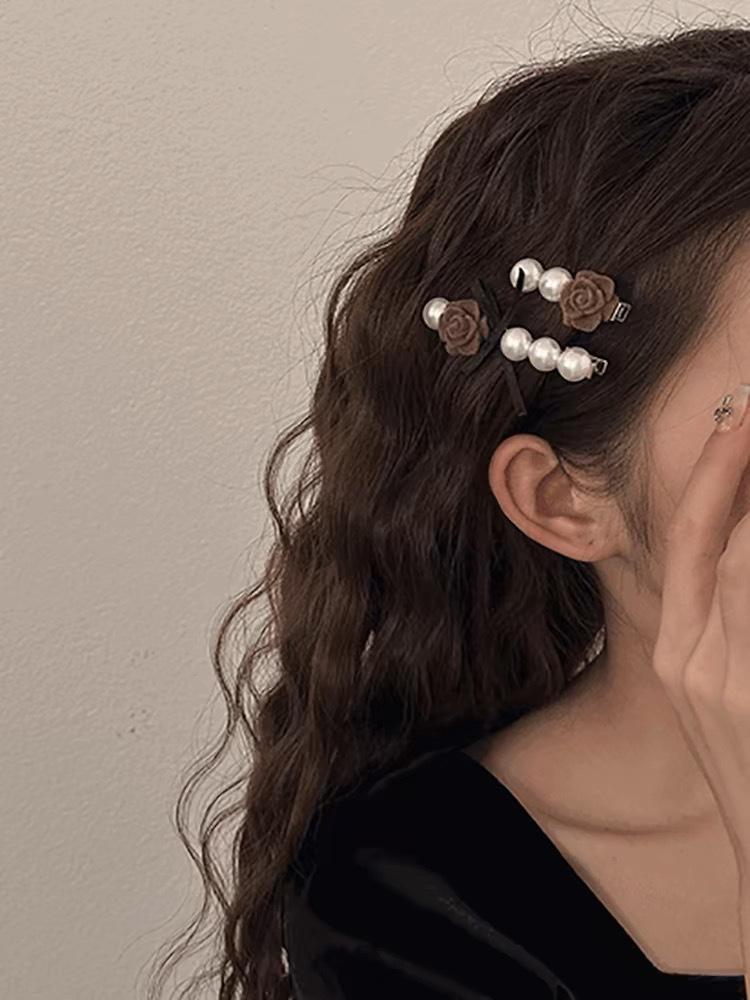 Horquilla retro francesa de perlas pequeñas y rosas, clip lateral para flequillo, clip de una sola palabra, temperamento femenino, moda, artefacto para cabello suelto, horquilla
