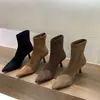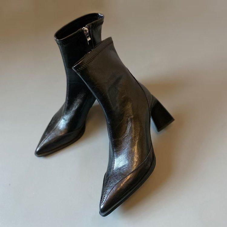Botines puntiagudos franceses para mujer 2025 nuevo diseño adelgazantes primavera y otoño botines individuales temperamento tacón grueso tacón alto botines cortos