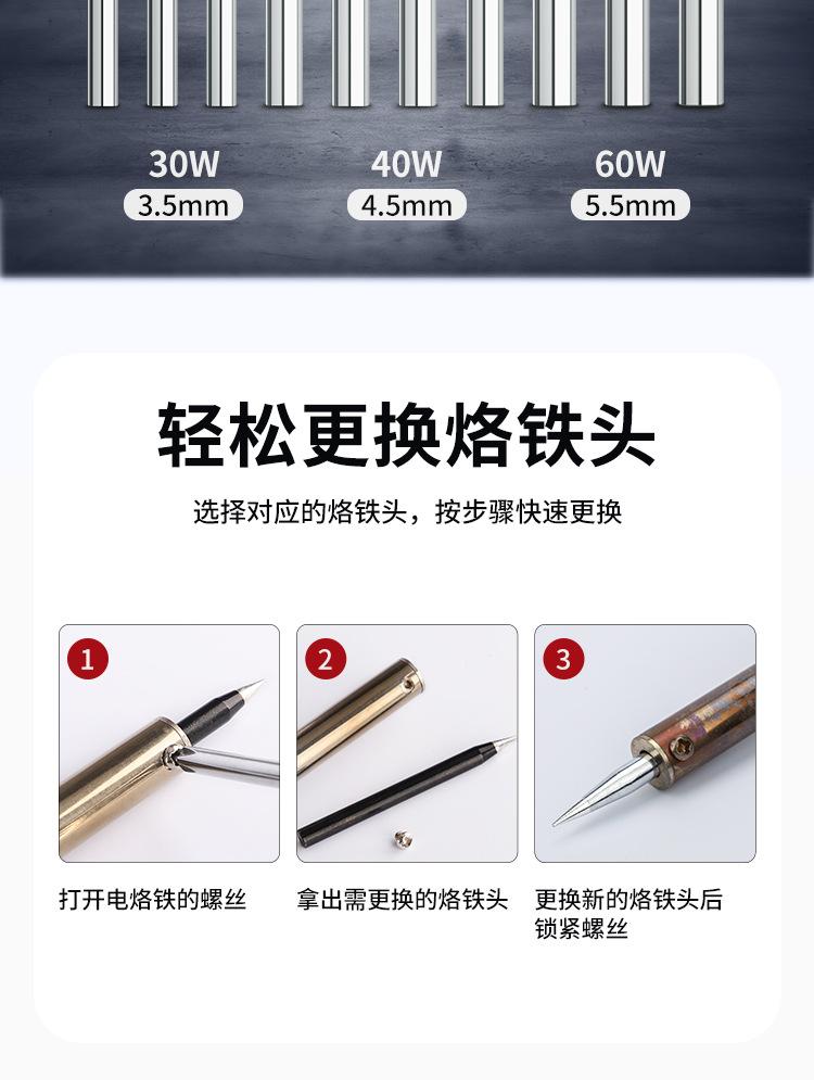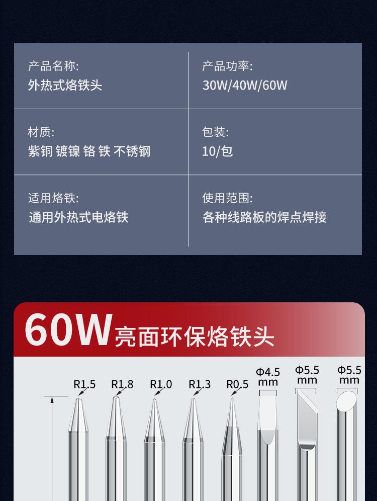 Punta de cautín eléctrico de calentamiento externo al por mayor 30W40W60W80W100W150 cabezal de corte boquilla de soldadura de cobre cabezal de hierro Luo