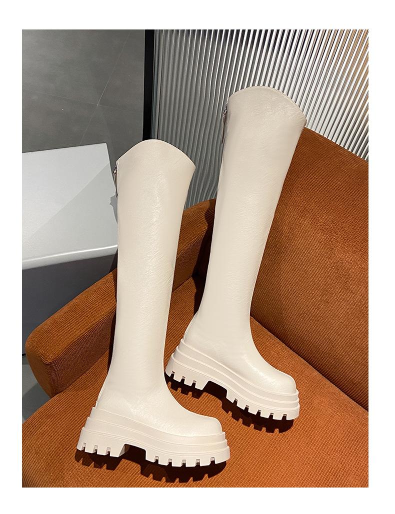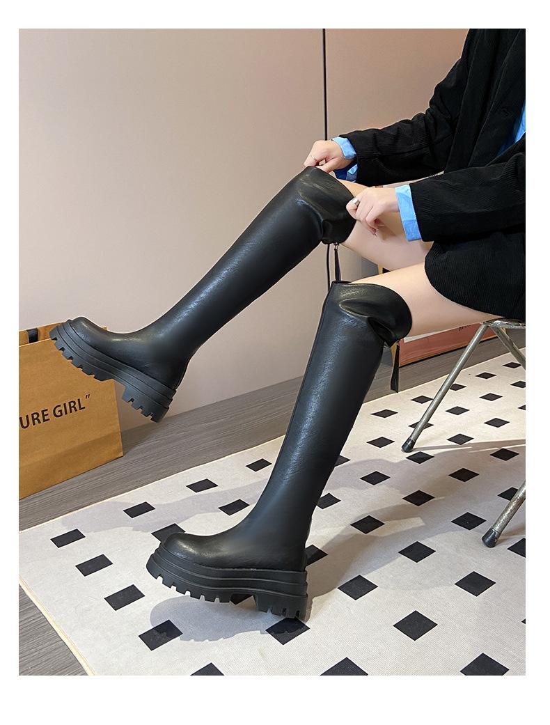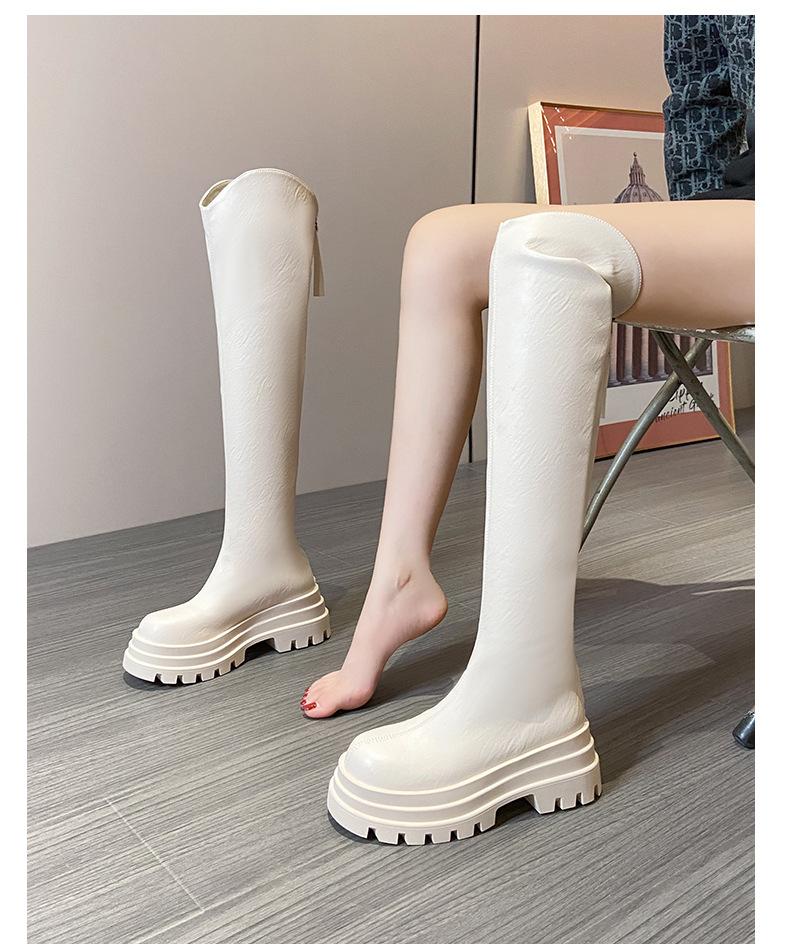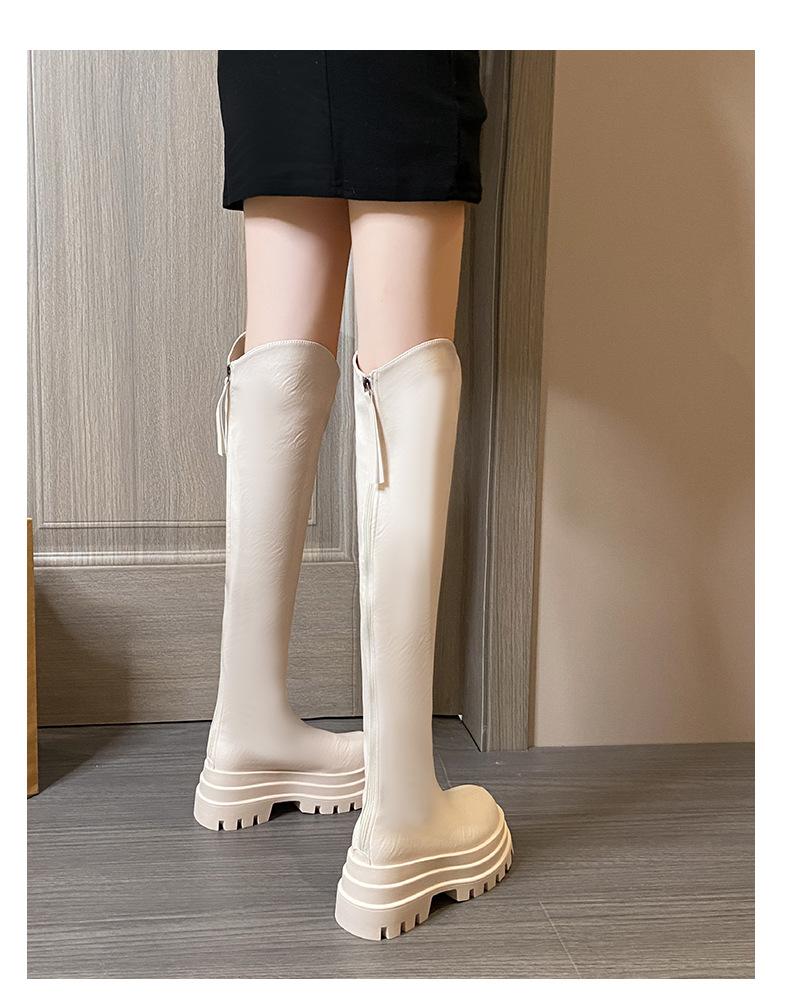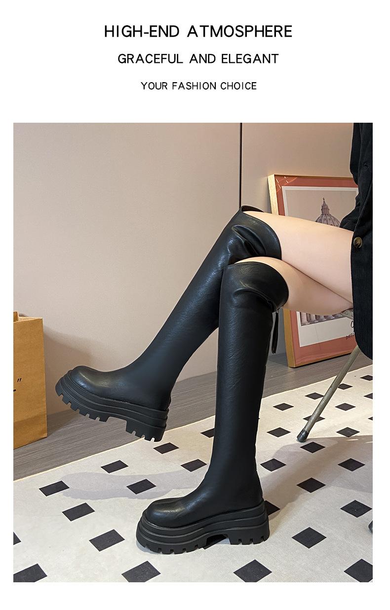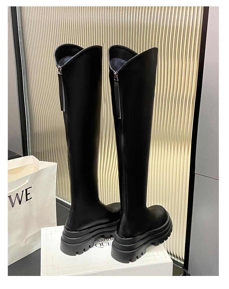 Botas Francesas de Suela Gruesa para Otoño/Invierno 2025 Botas de Moda Versátiles por Encima de la Rodilla para Mujer Estilo Coreano Cierre Trasero Botas Adelgazantes
