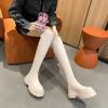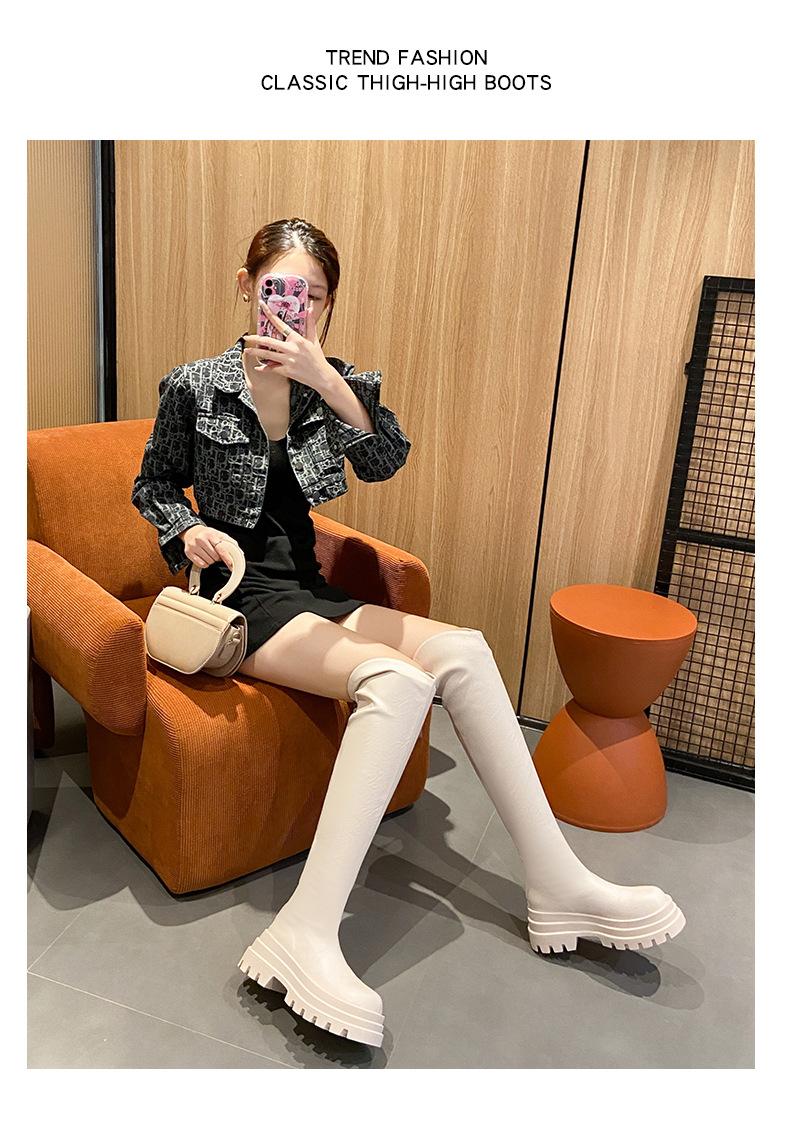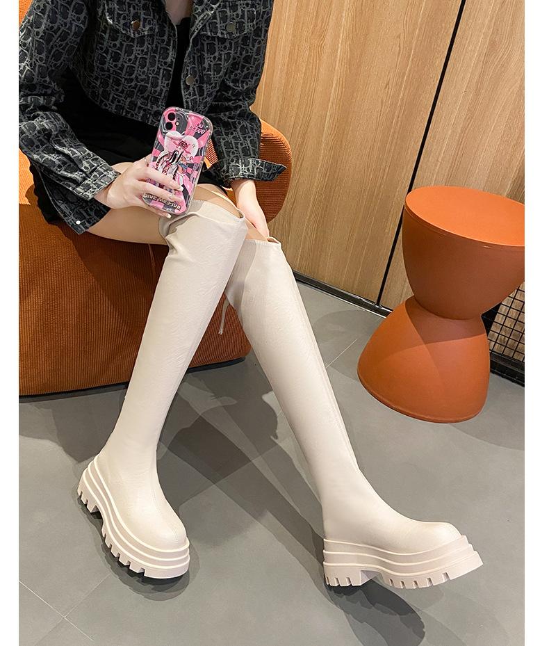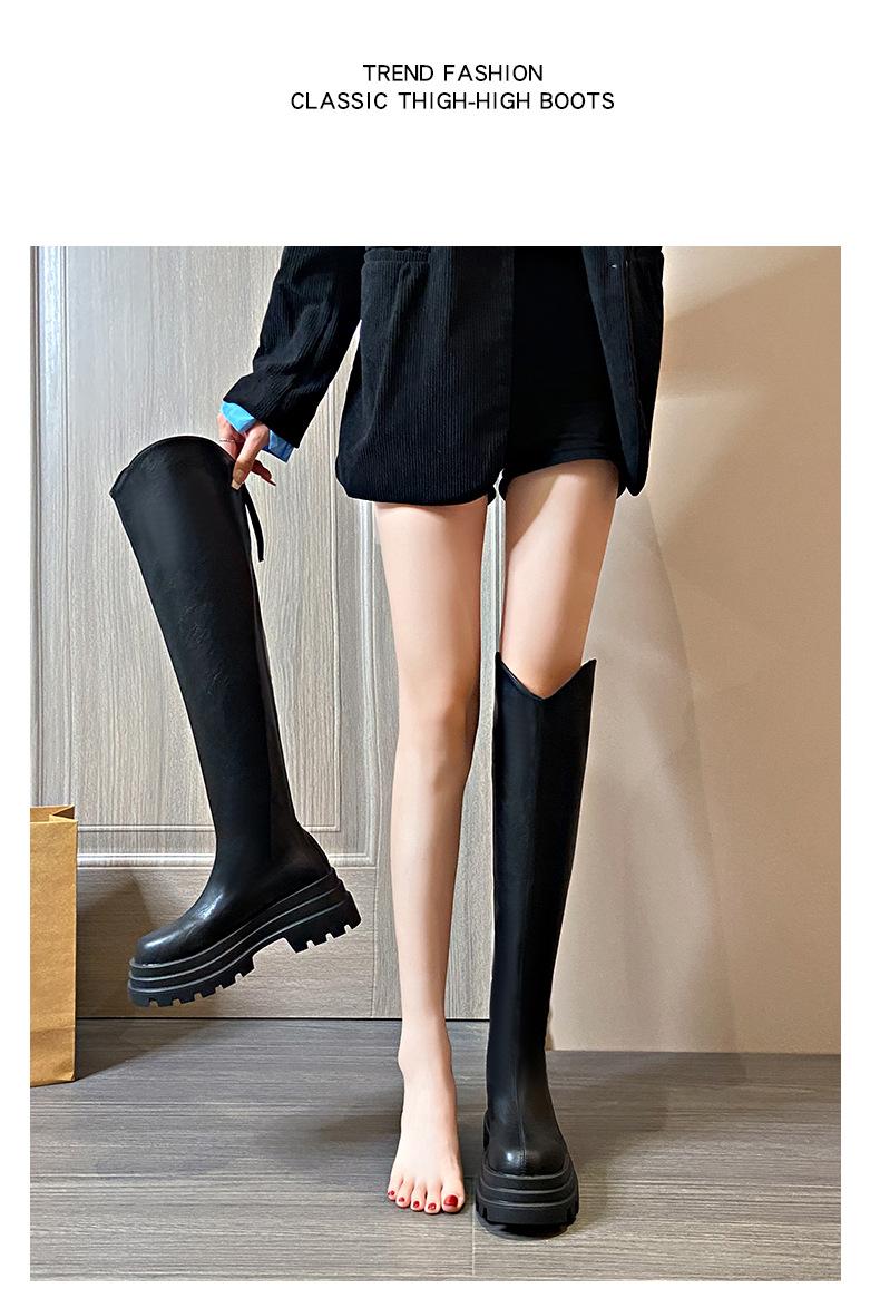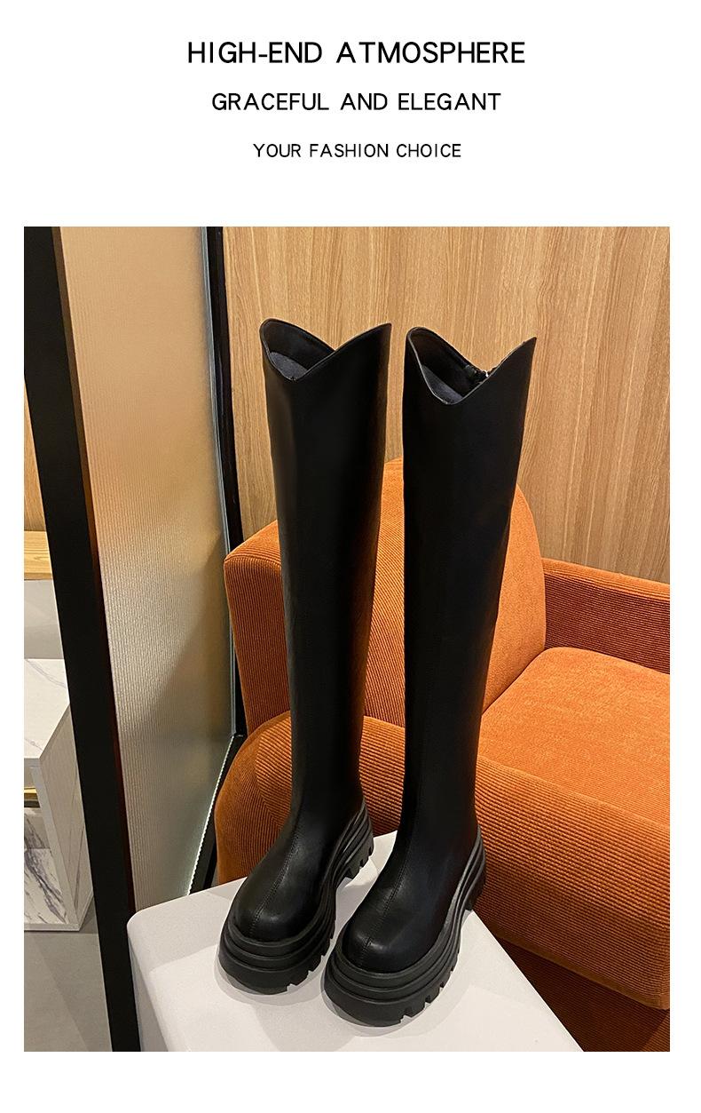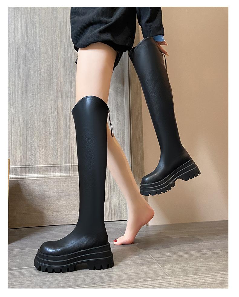 Botas Francesas de Suela Gruesa para Otoño/Invierno 2025 Botas de Moda Versátiles por Encima de la Rodilla para Mujer Estilo Coreano Cierre Trasero Botas Adelgazantes