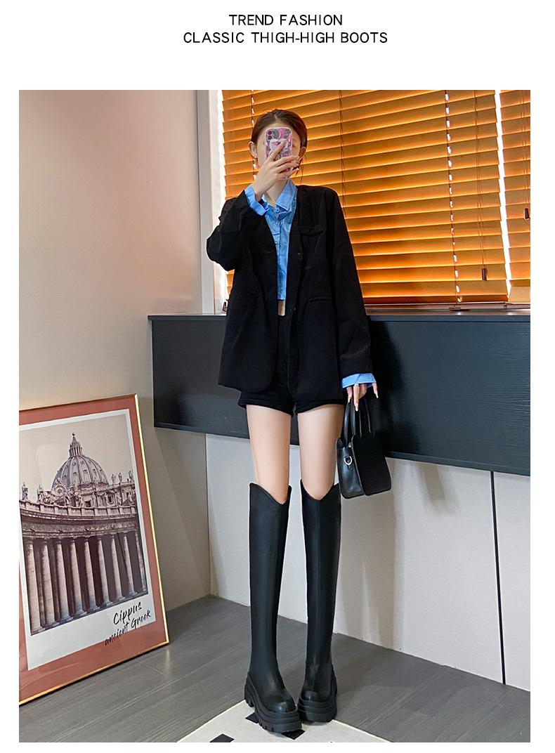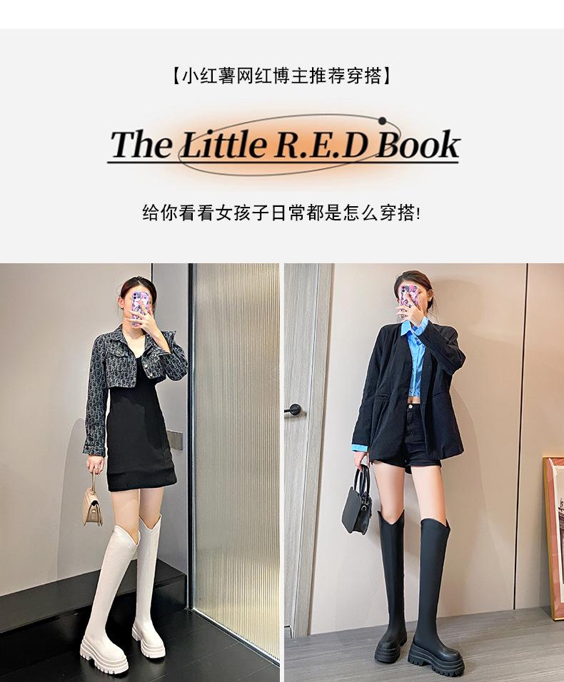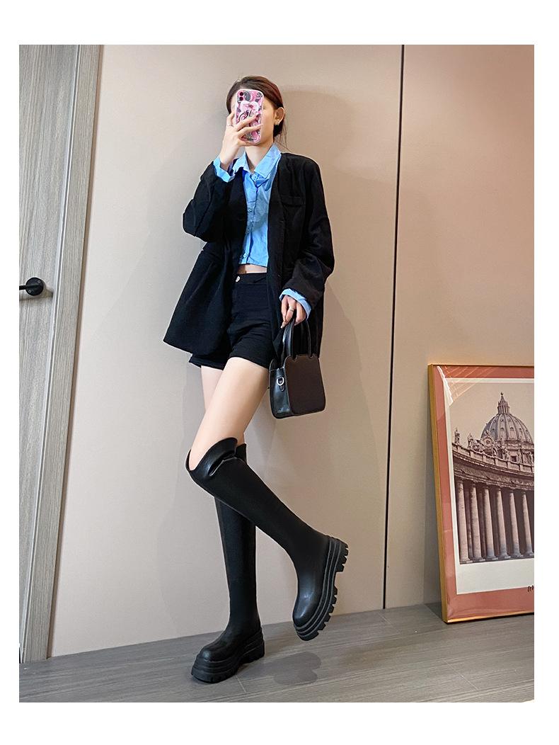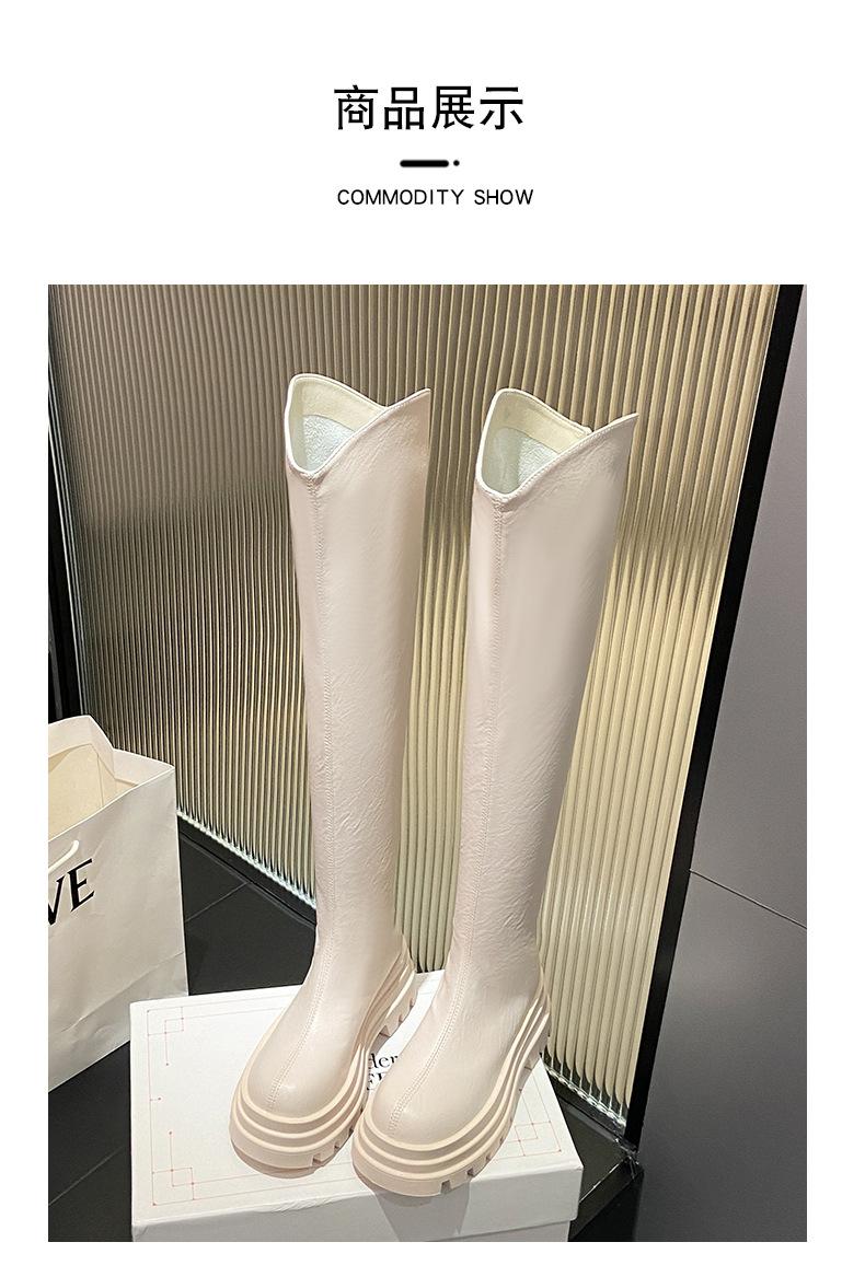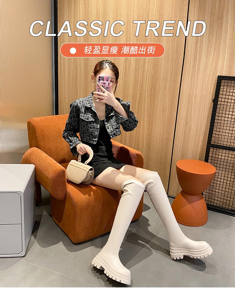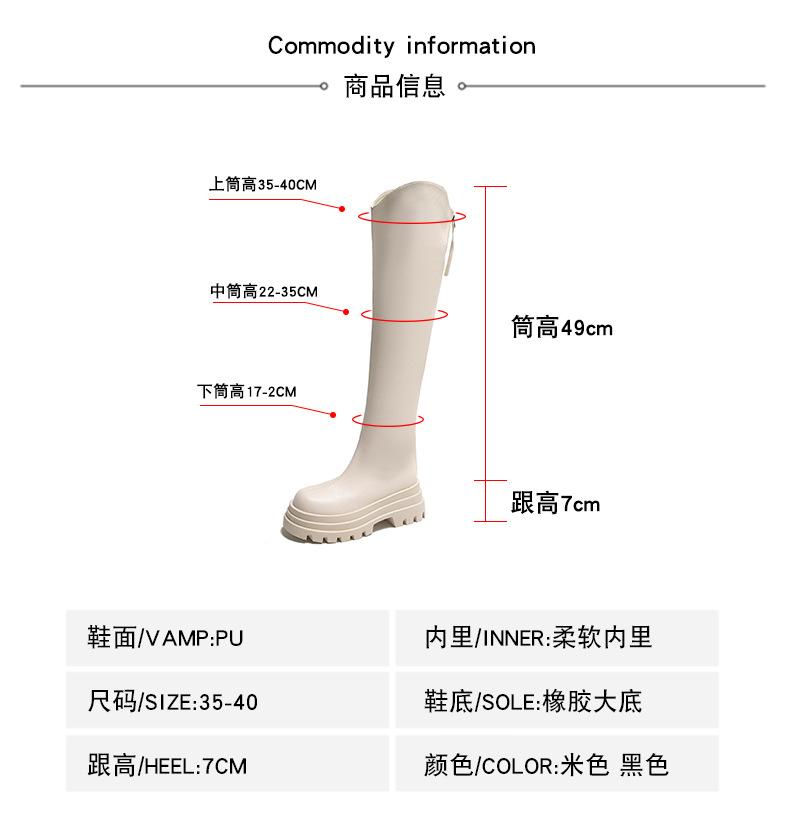 Botas Francesas de Suela Gruesa para Otoño/Invierno 2025 Botas de Moda Versátiles por Encima de la Rodilla para Mujer Estilo Coreano Cierre Trasero Botas Adelgazantes