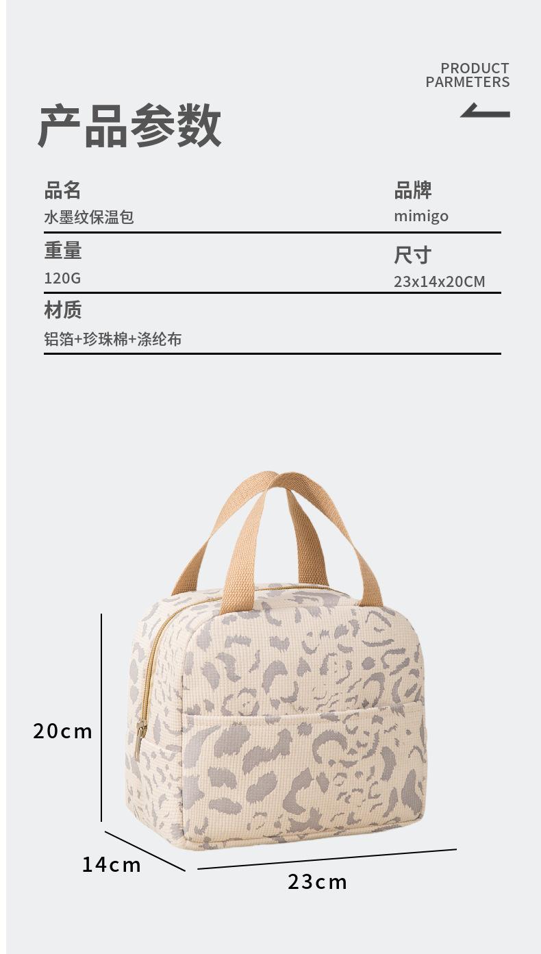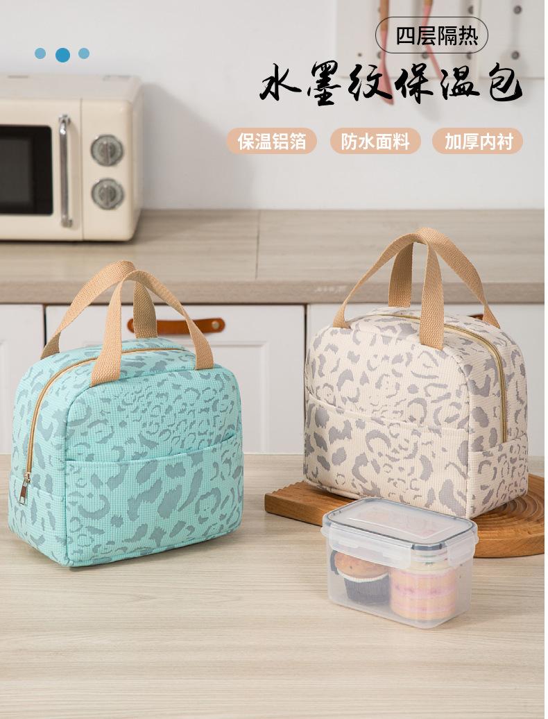 2024 nueva bolsa aislante con patrón de tinta, bolsa de almuerzo portátil impermeable engrosada para el trabajo y la escuela, bolsa para fiambrera