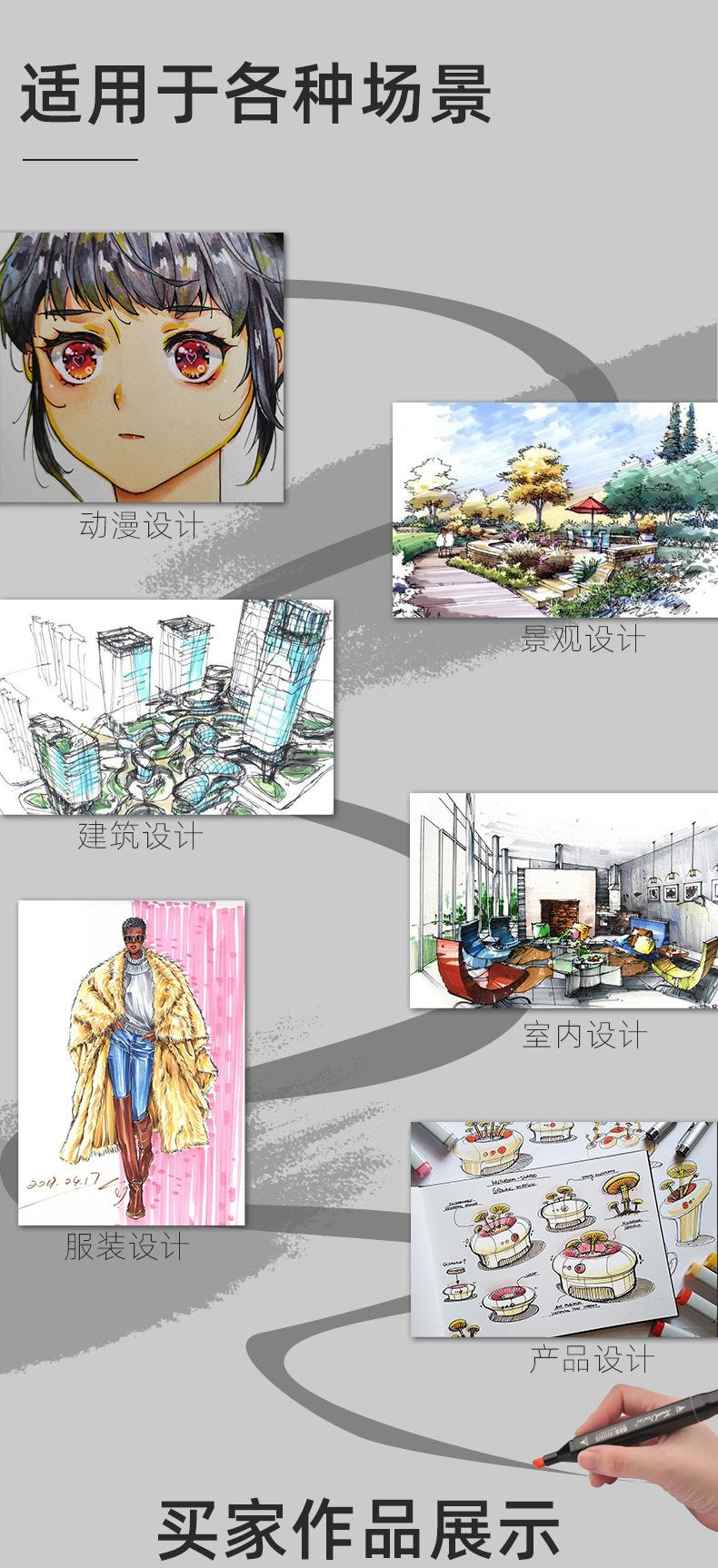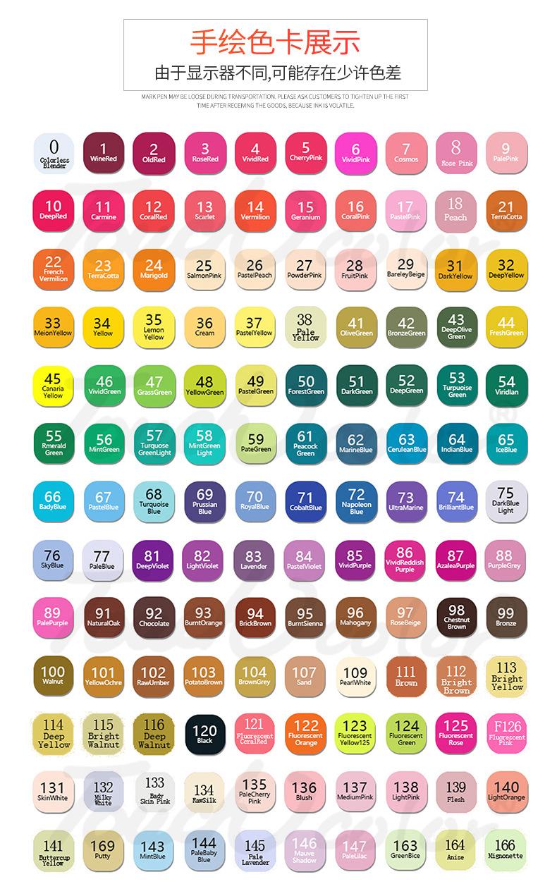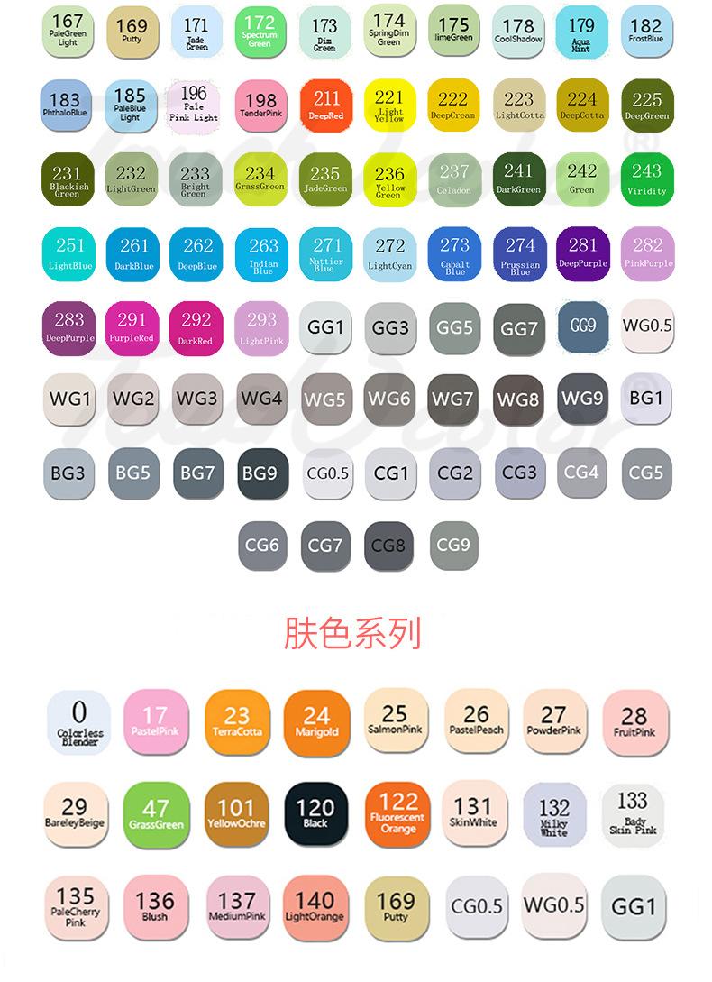 Marcador táctil único opcional de 204 colores, marcador de alcohol aceitoso de cabeza dura, tinta pintada a mano de animación, venta al por mayor