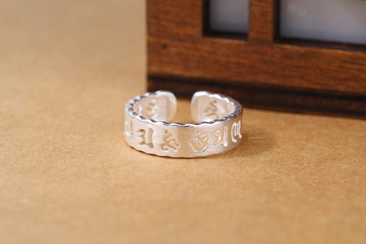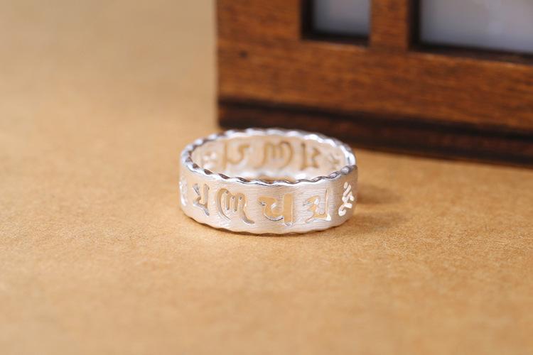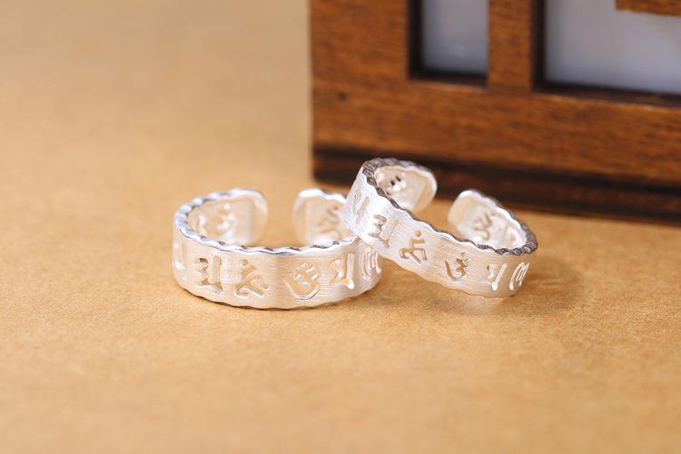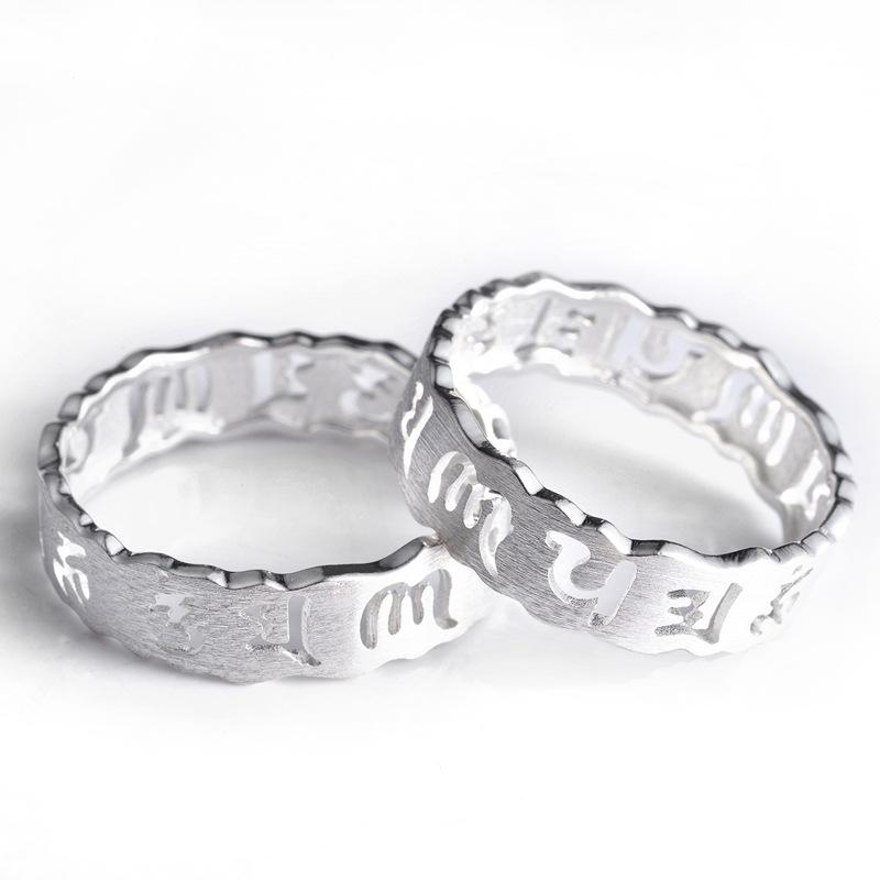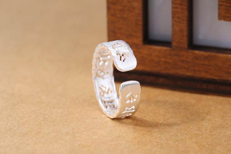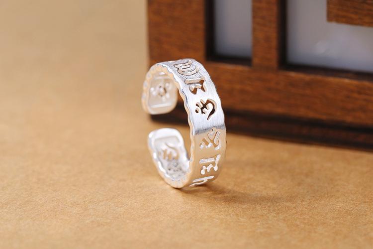 Anillo de pareja con patrón de texto hueco creativo, temperamento étnico, personalidad, anillo de plata, joyería, suministro al por mayor