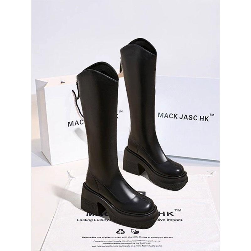 Botas altas de caña alta que aumentan la altura 2025 otoño/invierno nuevo estilo petite plataforma tacón grueso tacón superalto color sólido sobre la rodilla botas largas